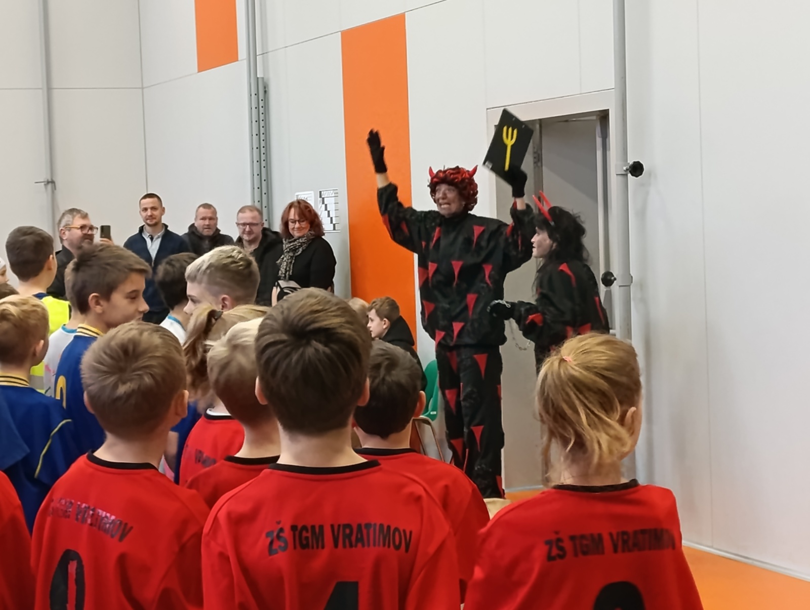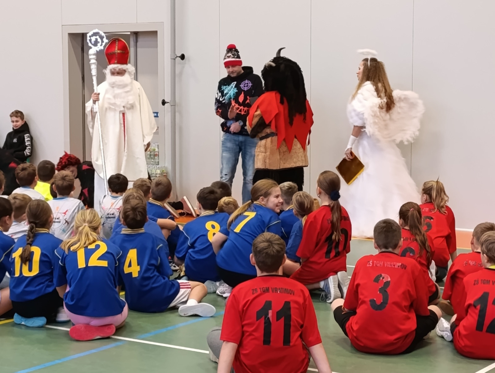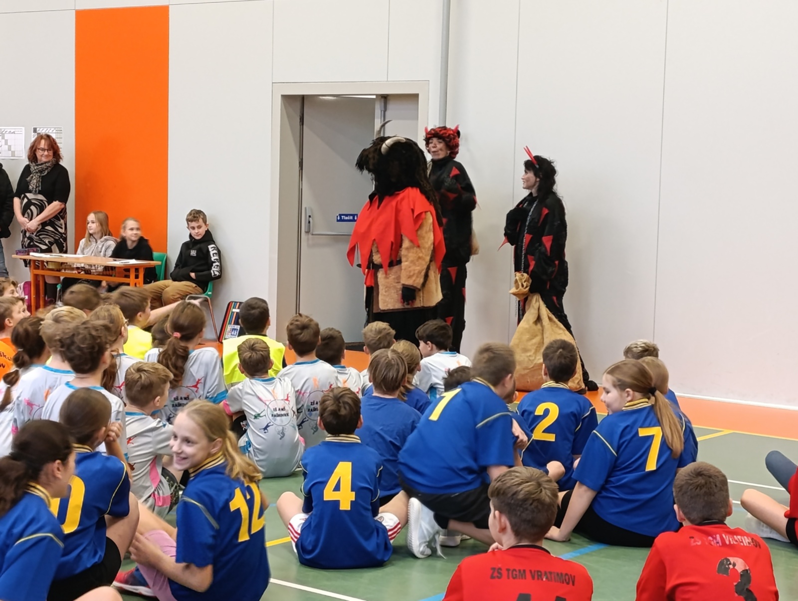Tradičně nás při zahájení turnaje Regionu Slezská brána navštívil Mikuláš, anděl a čerti. Letošního ročníku se zúčastnilo 9 družstev, která se spolu utkala ve dvou skupinách. Vítězové skupin pak bojovali o medailové pozice. Líté boje skončily až po 13. hodině. Zvítězilo družstvo ZŠ Vratimov Datyňská, na druhém místě se umístilo naše družstvo ZŠ Václavovice a třetí místo obsadilo družstvo ZŠ Sedliště. Nejdůležitější ale je, že zápasy proběhly v duchu fair play a všichni si dopoledne pořádně užili.