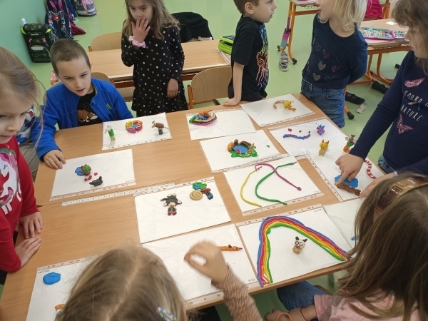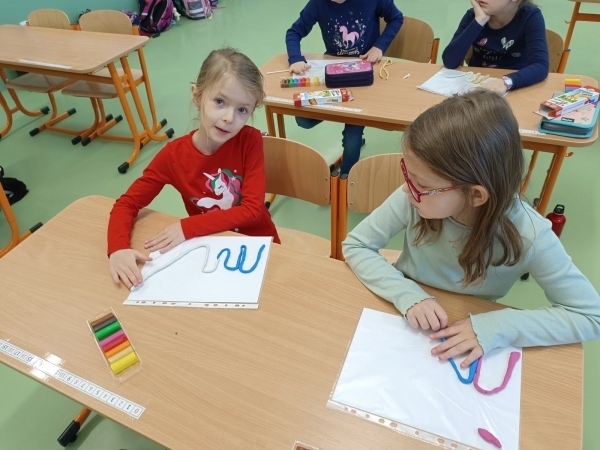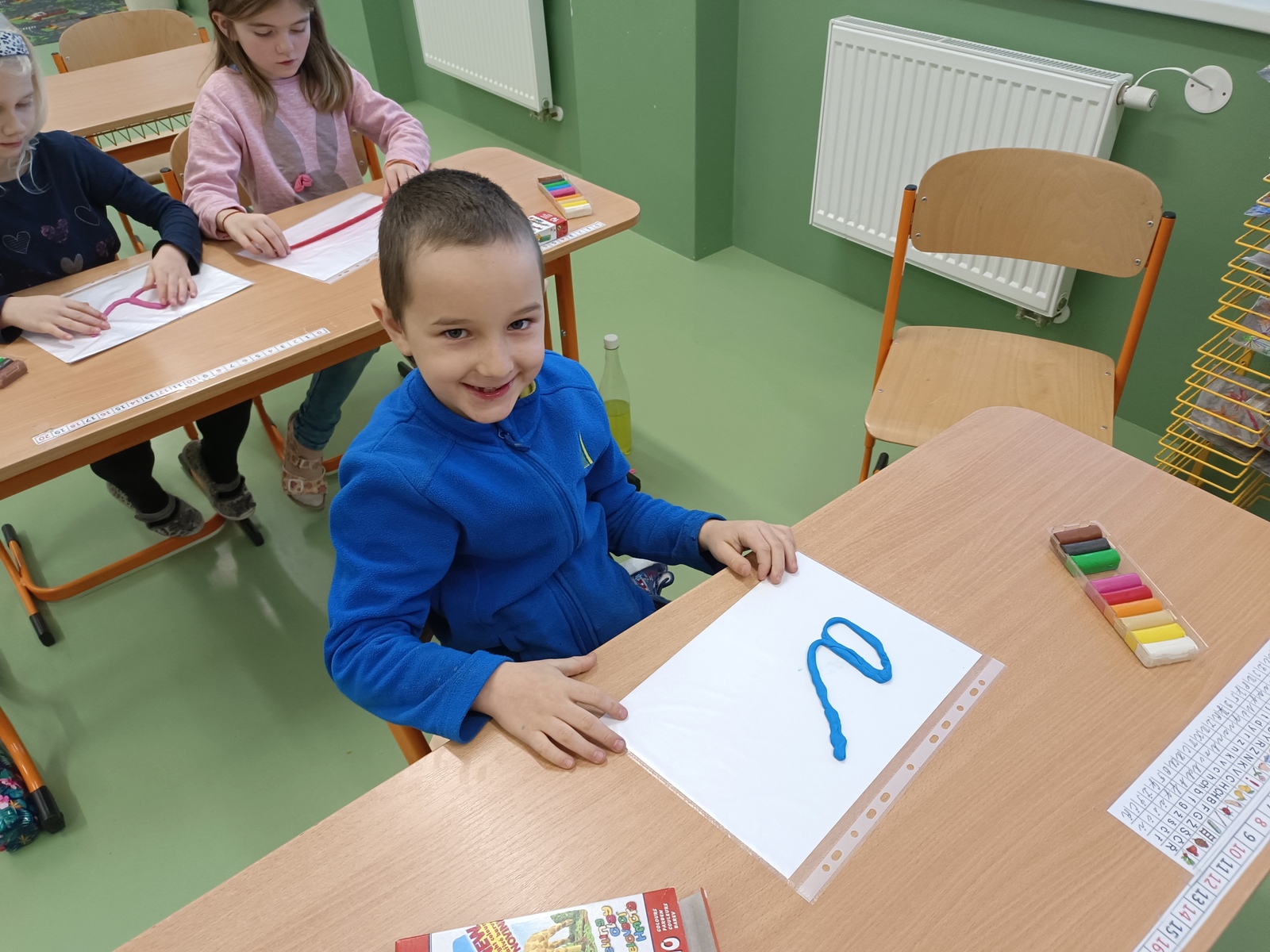 Dnes jsme si žáky procvičovali psací písmo. Opakovali jsme si tvary jednotlivých písmen nejen psaním, ale i modelováním z plastelíny. Moc se nám to dařilo a moc nás to bavilo. Pro velký úspěch jsme s modelováním pokračovali i v pracovnách činnostech, kde jsme tvořili příslušníky zvířecí říše. Výsledek posuďte sami.