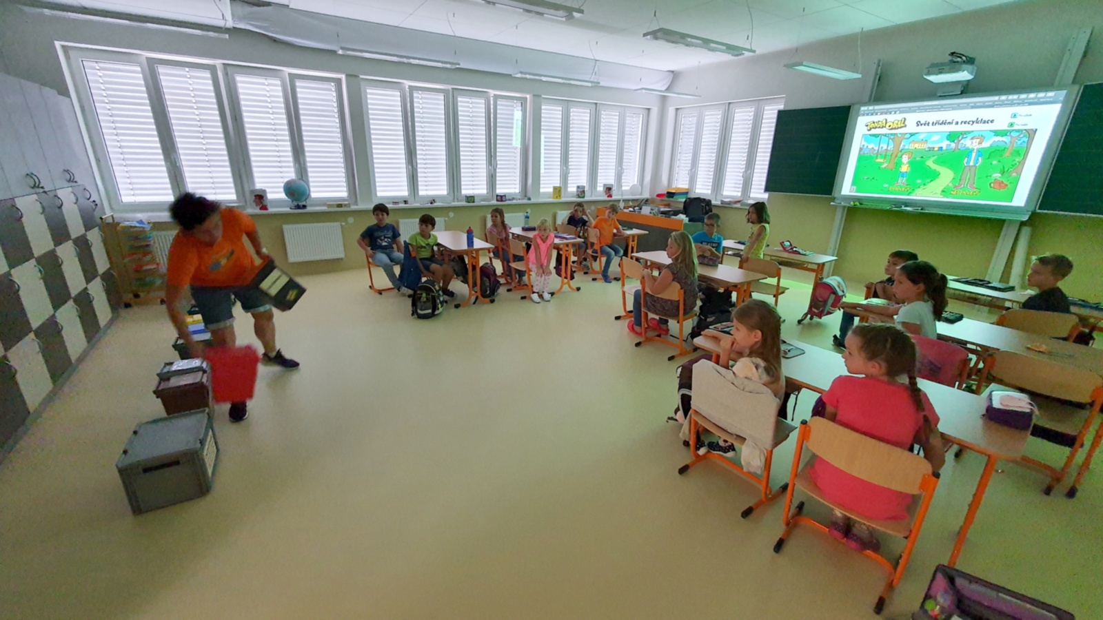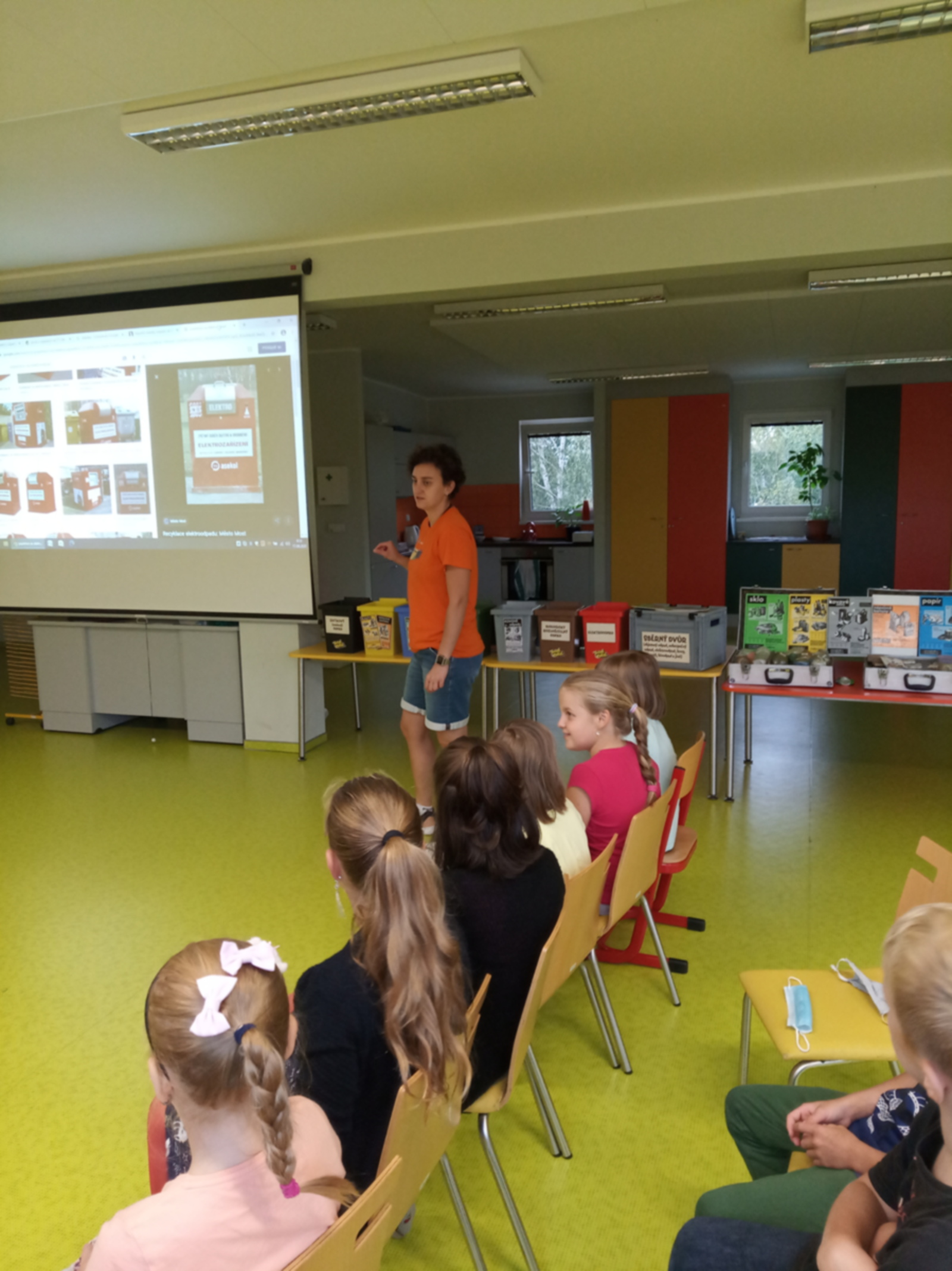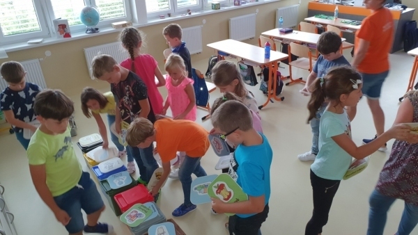 Dnes jsme si všichni vyzkoušeli třídění odpadu, viděli jsme video o zpracování některých druhů odpadu, vysvětlili jsme si pojem recyklace a nechyběla ani malá odměna. Při besedě jsme využili i naše zkušenosti a znalosti z předchozí výuky. Nejdůležitější ale je vytvářet odpadu co nejméně a k tomu zveme na pomoc i vás.