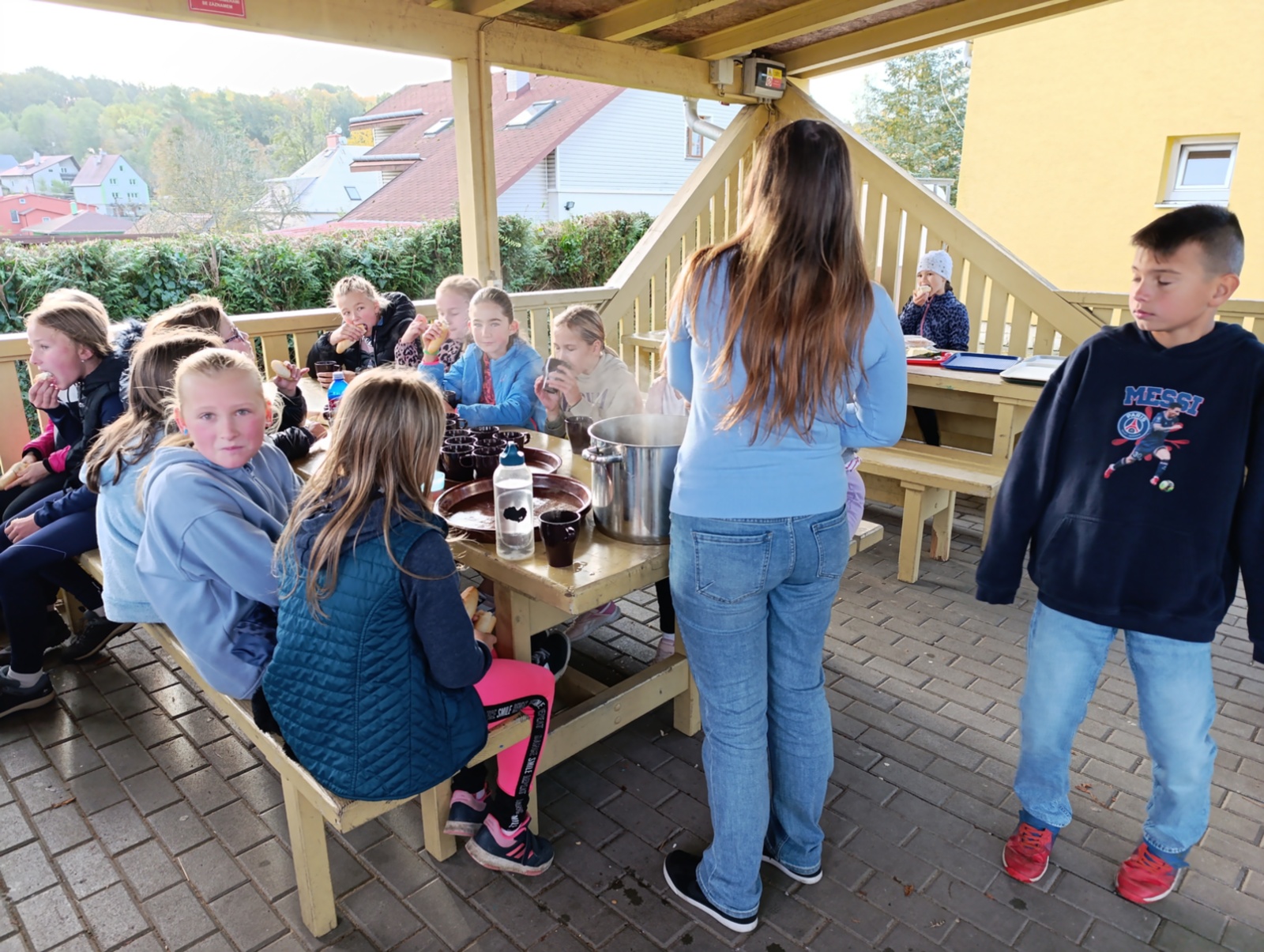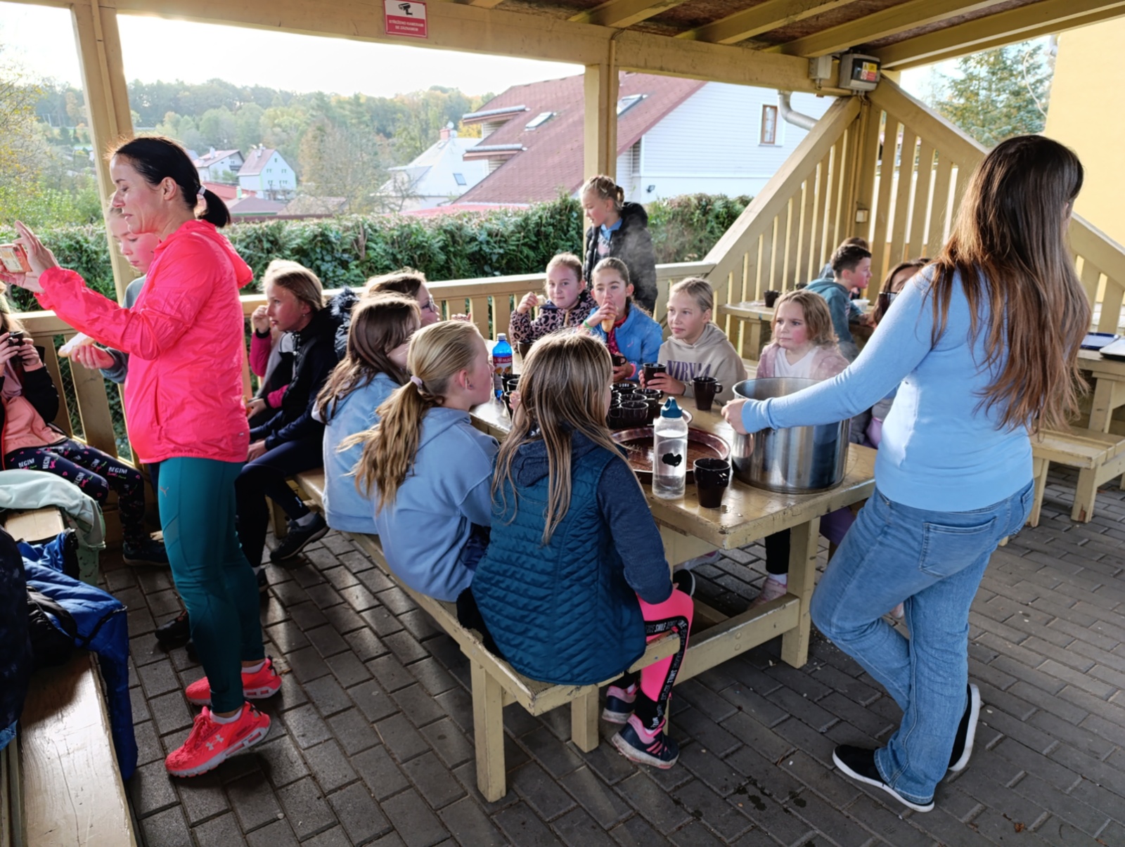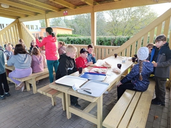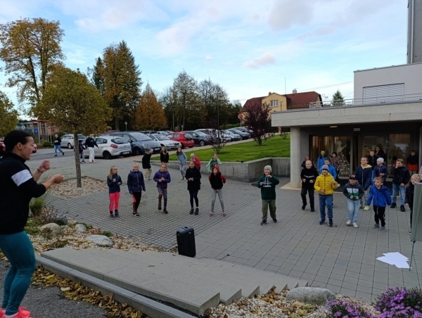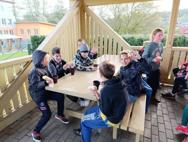 Krásné podzimní počasí jsme využili k cestě do školy pěšky, na kole nebo koloběžce. Ráno jsme se zahřáli rozcvičkou před školou a zapsali jsme si vzdálenost, kterou jsme ušli cestou do školy. Spočítali jsme, kolik máme koupit rohlíků ke snídani a hurá na cestu! Ti zdatnější si dali s paní učitelkou běžeckou trasu. Ti, kteří si tolik nevěřili (i když určitě zbytečně), se vydali pěším okruhem do obchodu pro snídani. Sešli jsme se na hřišti u školní družiny. Po vydané energii nám přišly vhod vlastoručně namazané rohlíky a teplý čaj, který nám připravila paní školnice. Ráno jsme si užili, vylepšili jsme svoji fyzickou kondici a ještě šetřili životní prostředí.