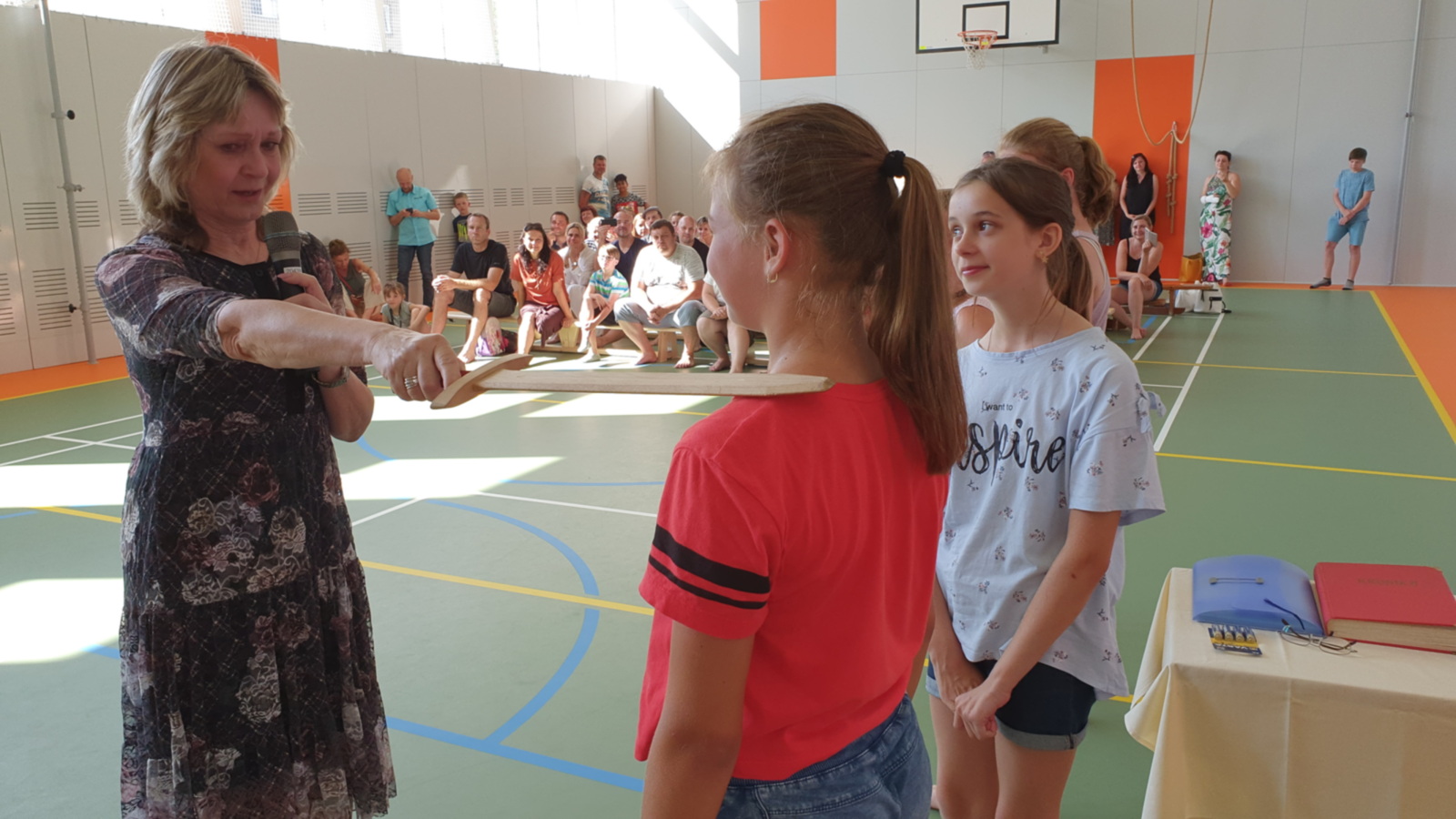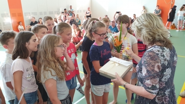 Ve středu 26. 6. 2019 jsme se loučili s žáky V. třídy, kteří po prázdninách nastupují na 2. stupeň ZŠ nebo na víceletá gymnázia. V prostorách tělocvičny se sešli rodiče a příbuzní dětí, pan ředitel, paní starostka s panem místostarostou, pedagogové a zástupci SRPŠ, aby žákům popřáli hodně štěstí na nových školách a předali jim krásné dárky. Žáci si společně s paní třídní učitelkou Mgr. Danielou Neuwirtovou přichystali velice hezký program, ve kterém nastínili, kterým směrem by se jejich cesty mohly ubírat.