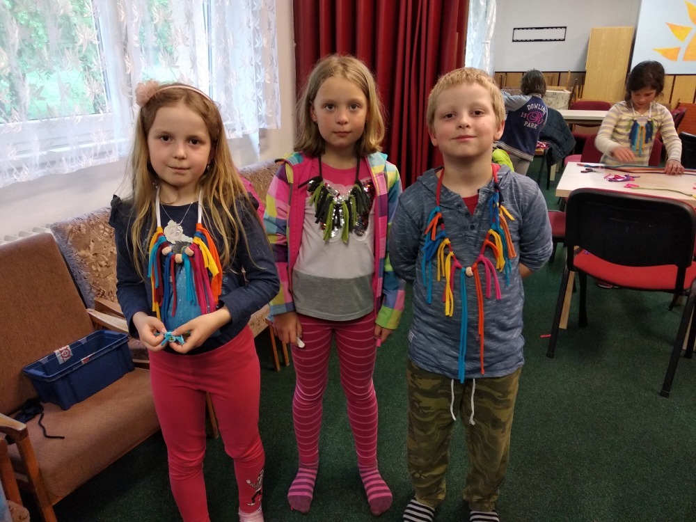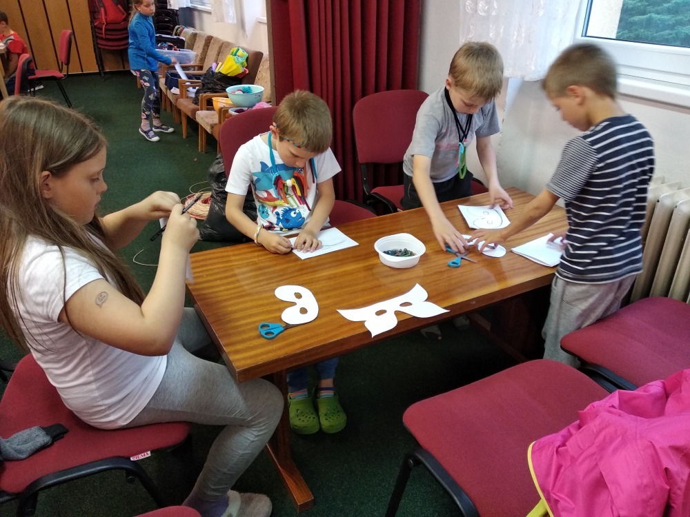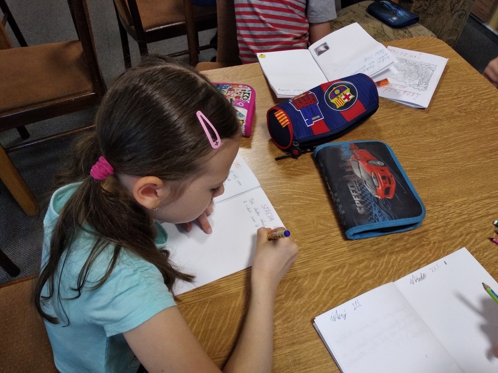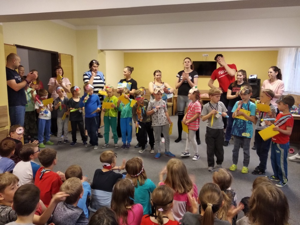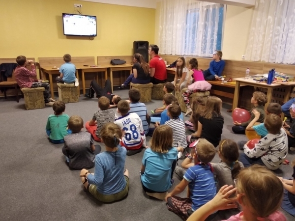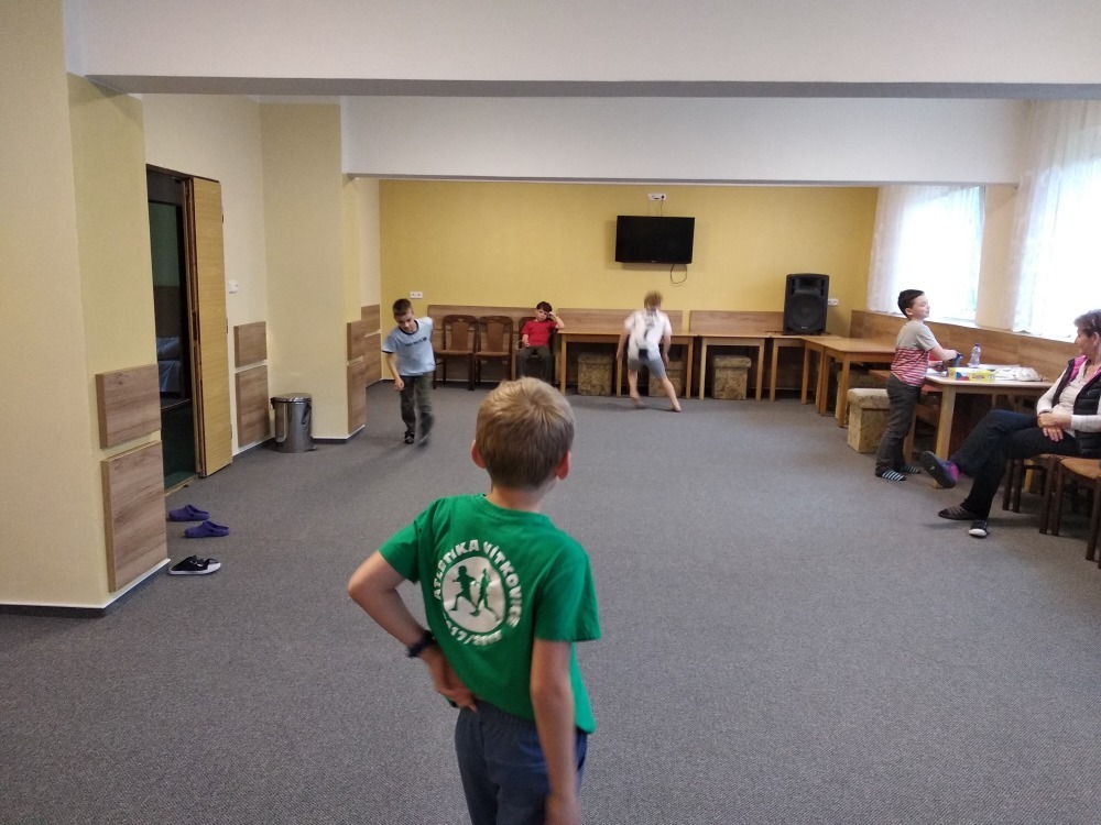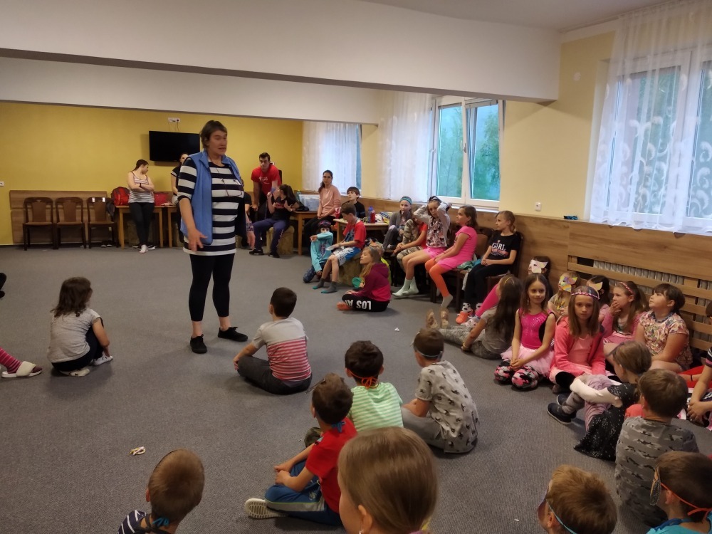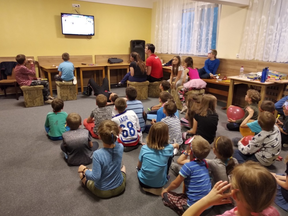 Dnes počasí opět nepřálo, ale co máme zprávy, neleje tady jako u vás. Proto jsme dopoledne oprašovali vědomosti a hráli různé hry, dopisovali deníky a kreslily obrázky. Odpoledne se děti připravovaly na rozlučkový večer, jelikož naše škola v přírodě se pomalu blíží ke konci a animátoři se dnes s dětmi rozloučí. Vyráběly si masky, luštily kvízy a plnily sportovní disciplíny. A samozřejmě jsme večer fandili a povzbuzovali náš hokejový tým i za cenu toho, že se do postele šlo o dost později. A vyplatilo se!