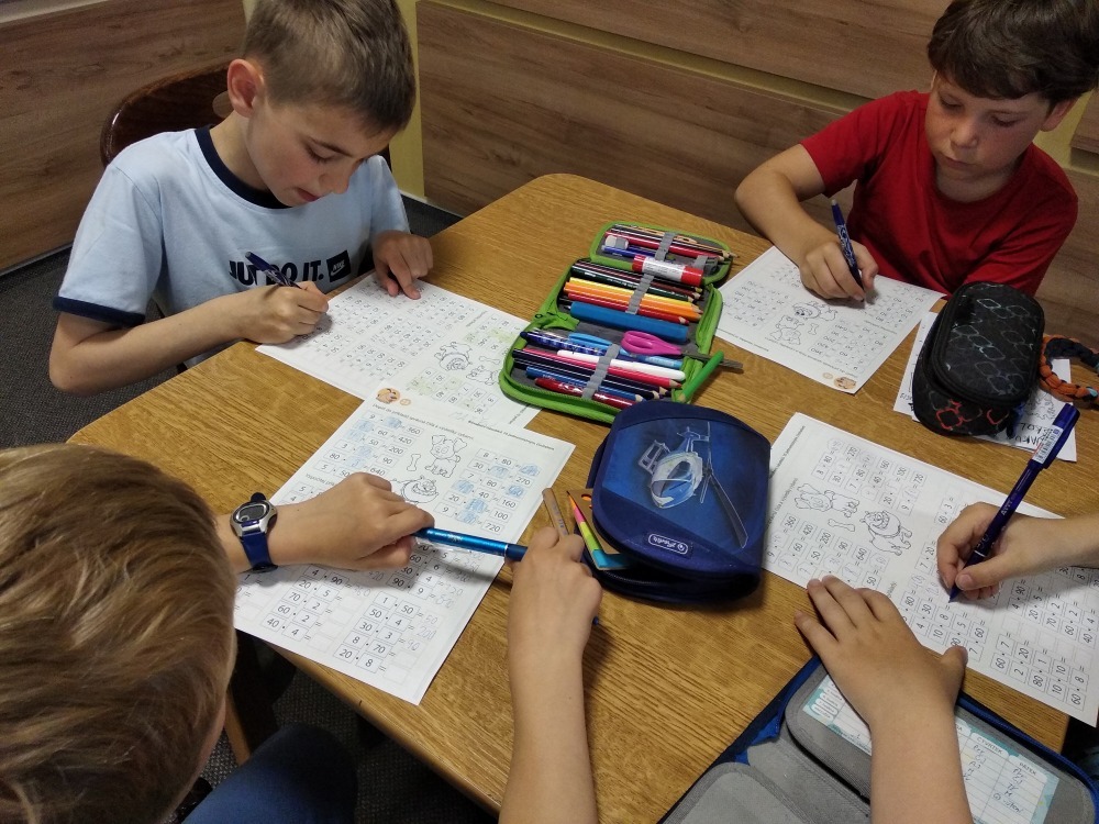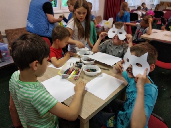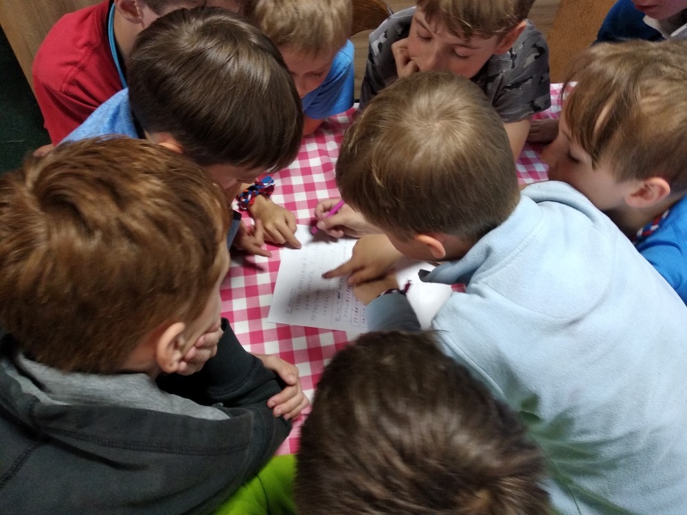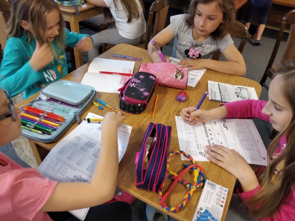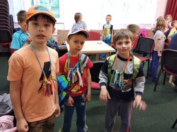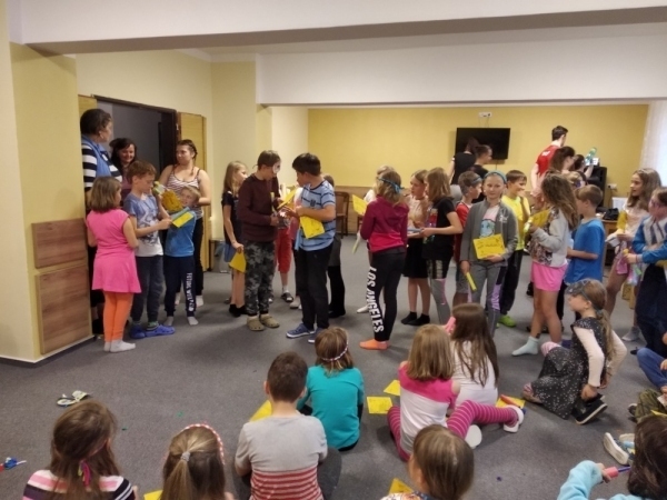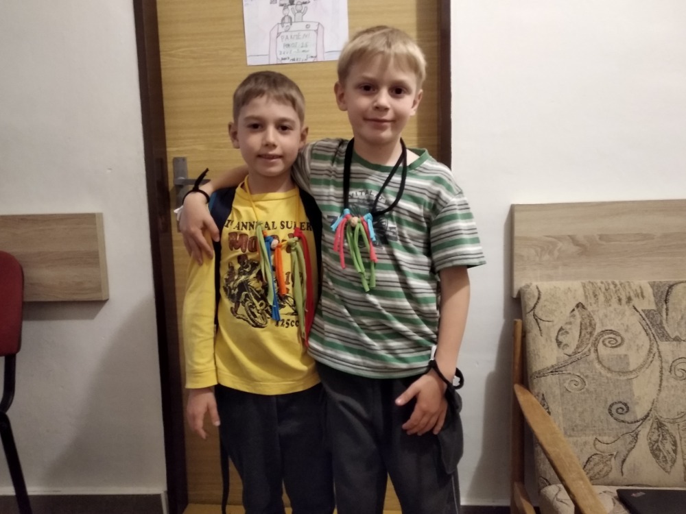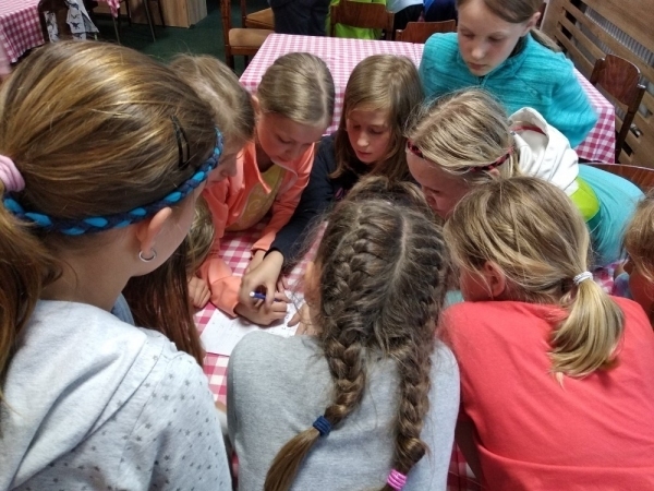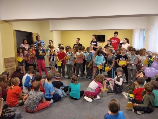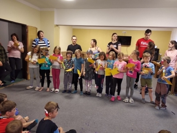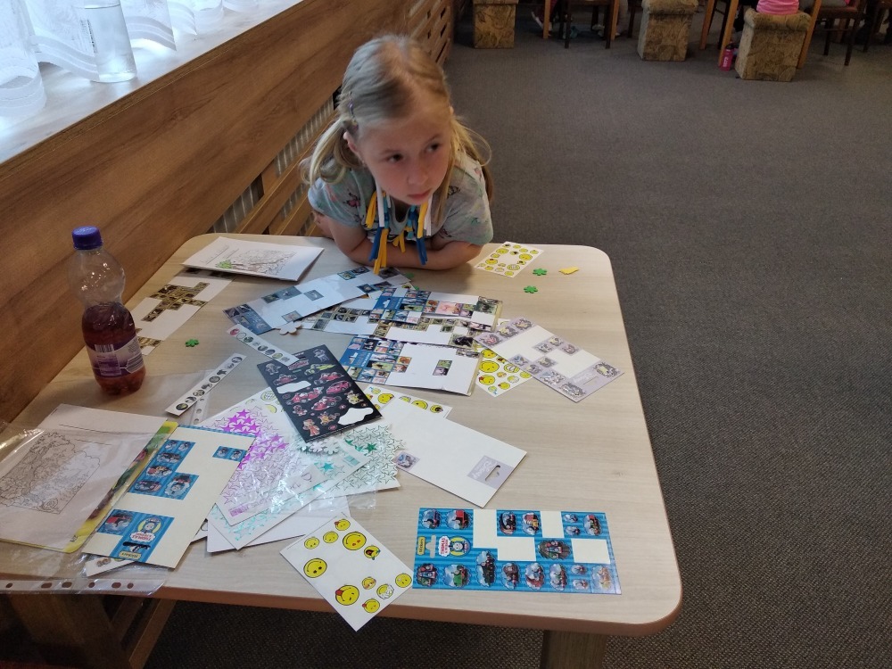 Dnes počasí opět nepřálo, ale co máme zprávy, neleje tady jako u vás. Proto jsme dopoledne oprašovali vědomosti a hráli různé hry, dopisovali deníky a kreslily obrázky. Odpoledne se děti připravovaly na rozlučkový večer, jelikož naše škola v přírodě se pomalu blíží ke konci a animátoři se dnes s dětmi rozloučí. Vyráběly si masky, luštily kvízy a plnily sportovní disciplíny. A samozřejmě jsme večer fandili a povzbuzovali náš hokejový tým i za cenu toho, že se do postele šlo o dost později. A vyplatilo se!