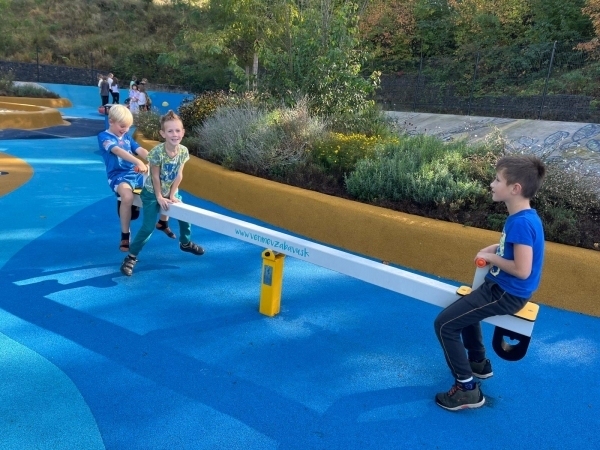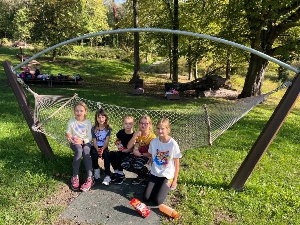 Sluníčko svítí a teplé počasí úplně volá po podzimním výletu. Třeťáci vyrazili na hřiště, protáhli svá těla, vylezli na každou prolézačku a sjeli nejednu skluzavku, zkoušeli stát na obrovských skákacích koulích i hledali rovnováhu na točícím se kruhu. Není divu, že na konci dne byli všichni dost unavení.