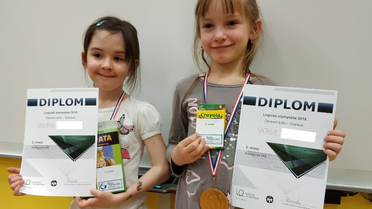 V pondělí 12. 11. 2018 se Natálka M. a Kačka C. zúčastnily okresního kola Logické olympiády v kategorii MŠ. Byly zde vybrány na základě výsledků z prvního kola, a protože Ostrava patří k pilotní městům, kde se konalo i okresní kolo, navštívili jsme ZŠ Provaznickou v Ostravě. Zde bylo celkem 11 vybraných dětí, které pak samostatně ve třídách dostaly různé testy a úkoly. Oceněno bylo 5 nejlepších – Kačka C. se umístila na úžasném 2. místě a Natálka M. na 5. místě. Obě si odnesly domů diplomy, věcné ceny a dobroty. Gratulujeme!
