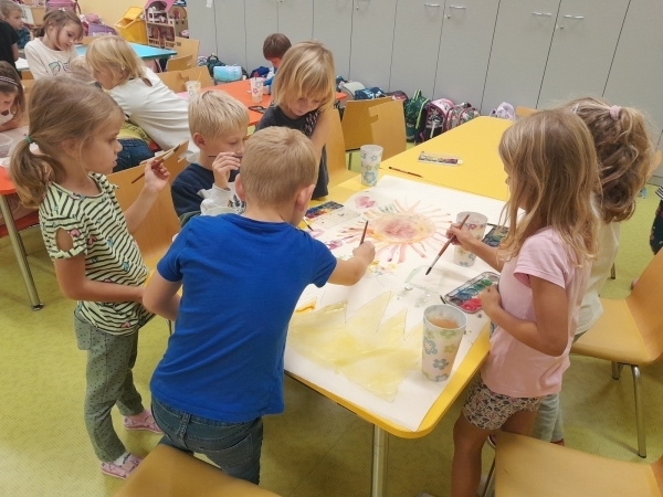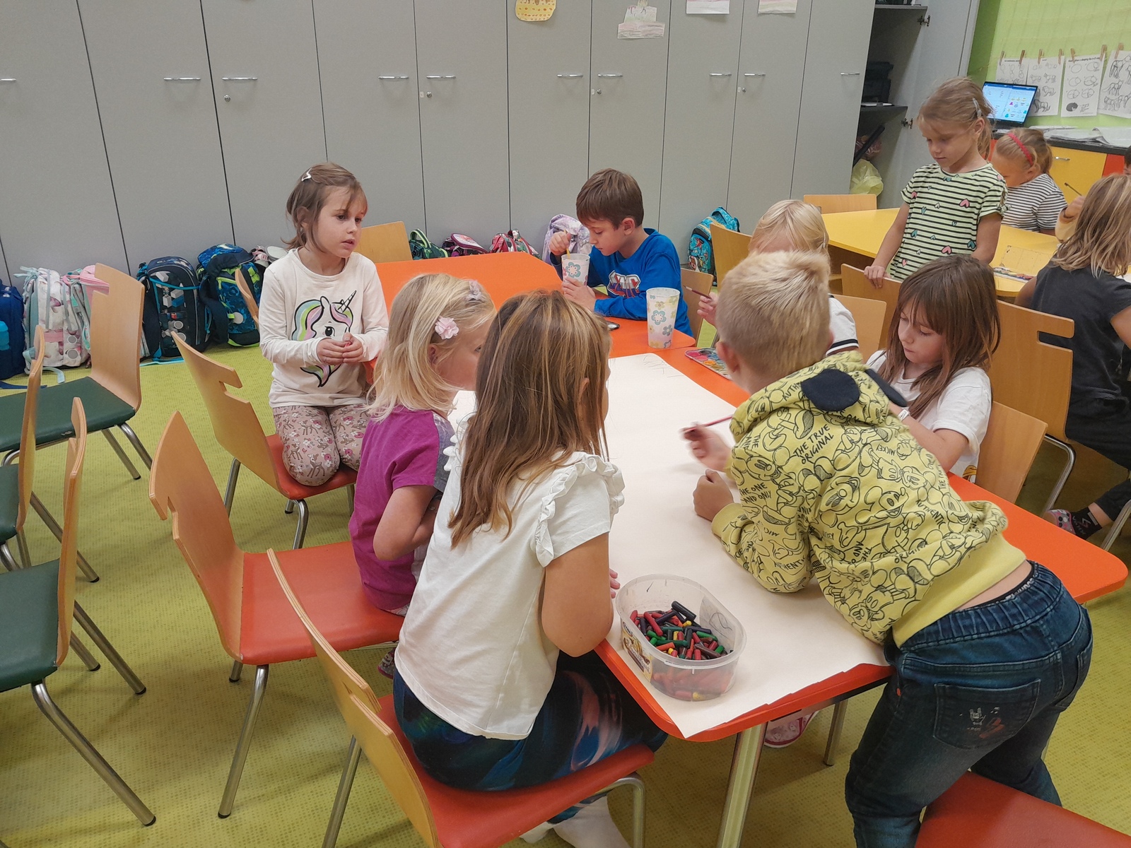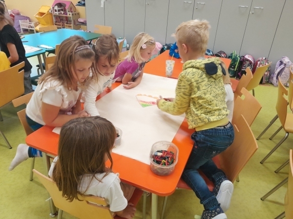 Rozdělili jsme se do tří družinek, vybrali si jejich jméno a symbol: ,,Králové" - mušli, ,,Rytíři" - meč a ,,Andělé - korunu".