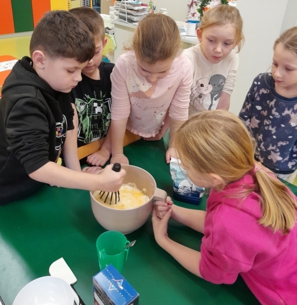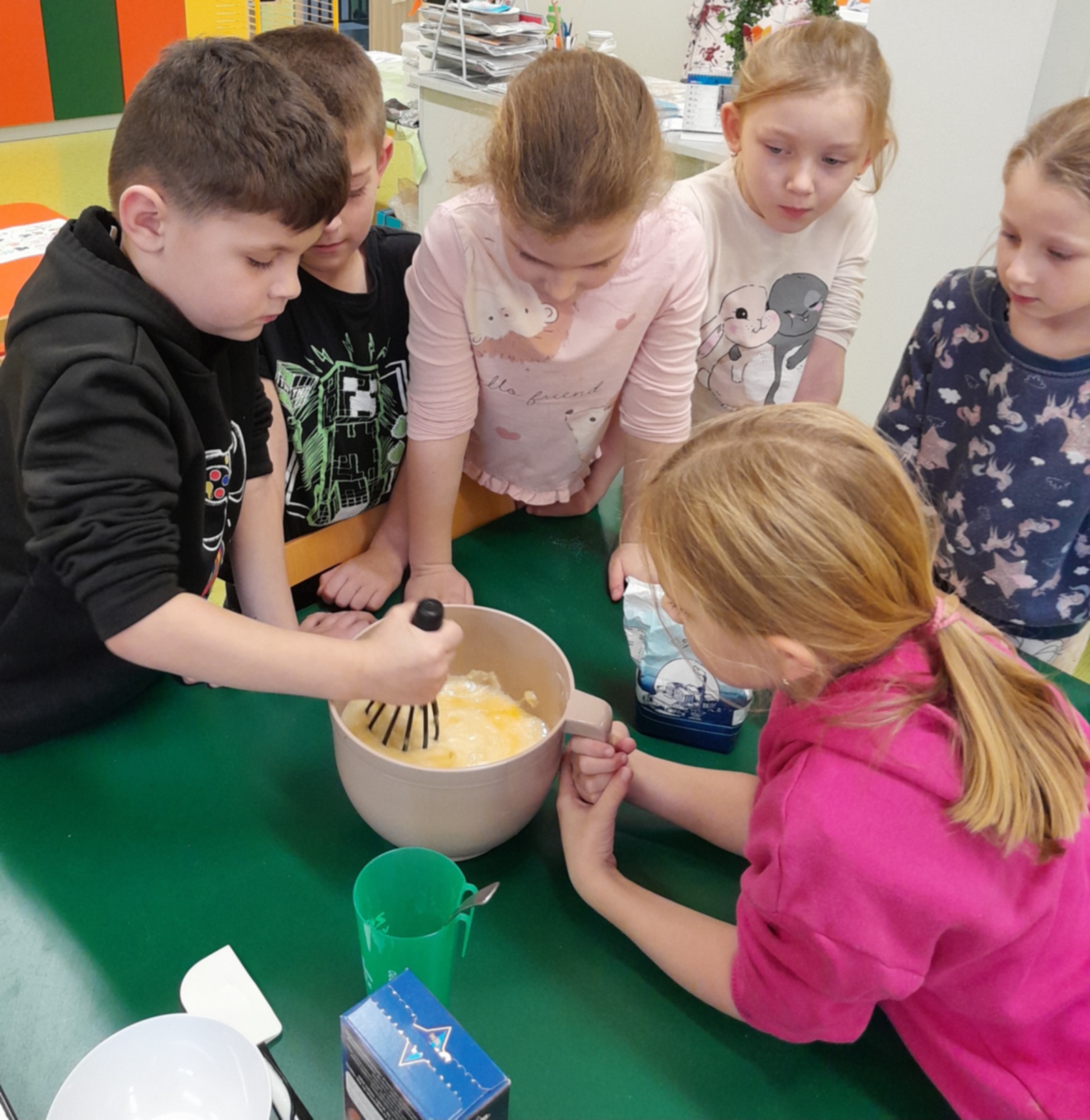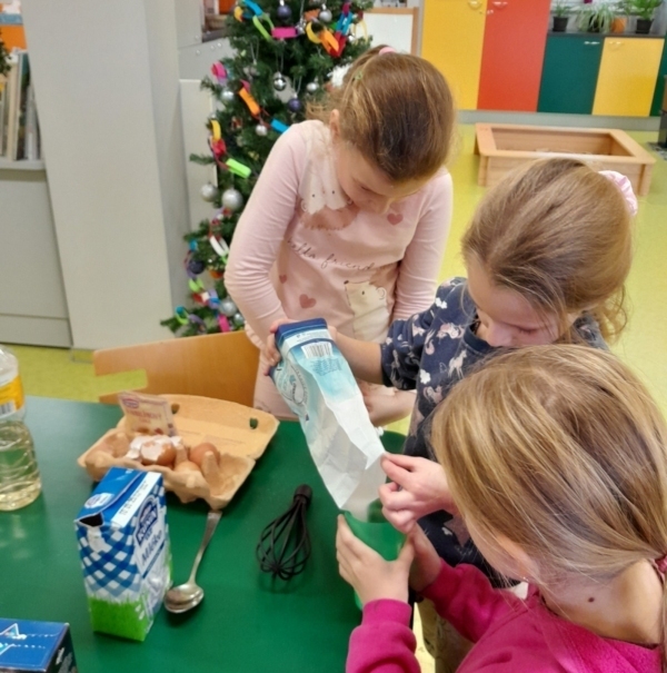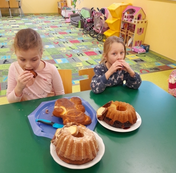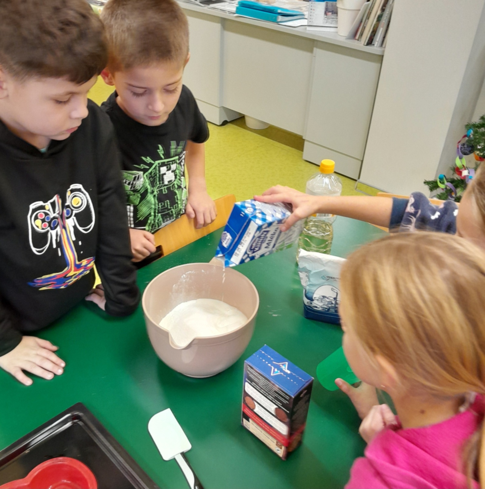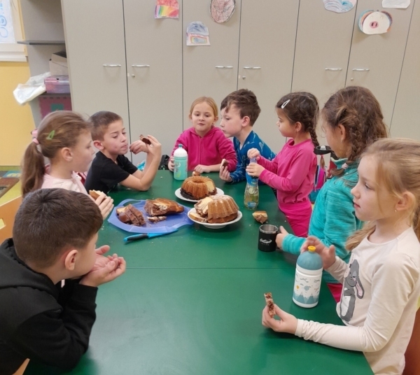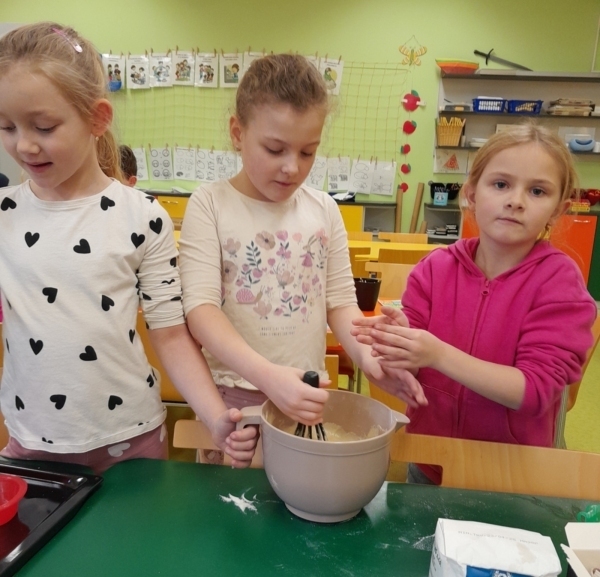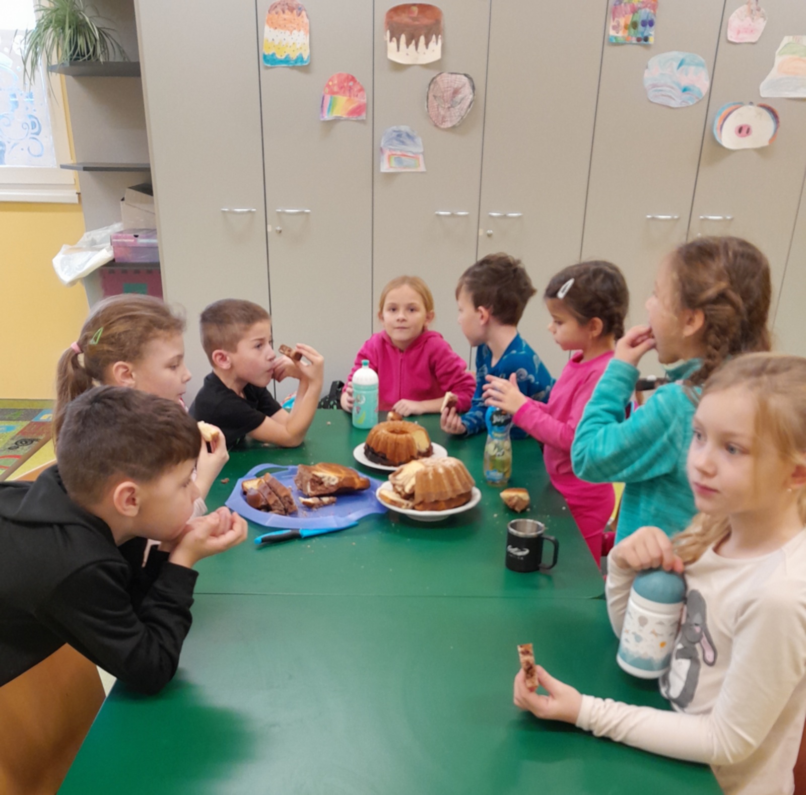 Připravili jsme si suroviny a pečlivě je odměřovali a dávkovali do mísy. Po vymísení jsme těsto přežily do připravené formy a šup s ní do trouby. Krasná vůně nás po čase upozornila, že máme upečeno!