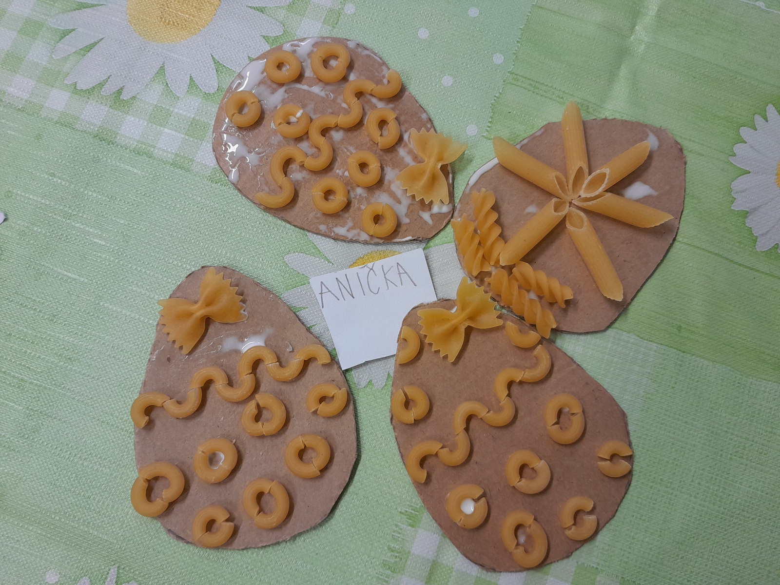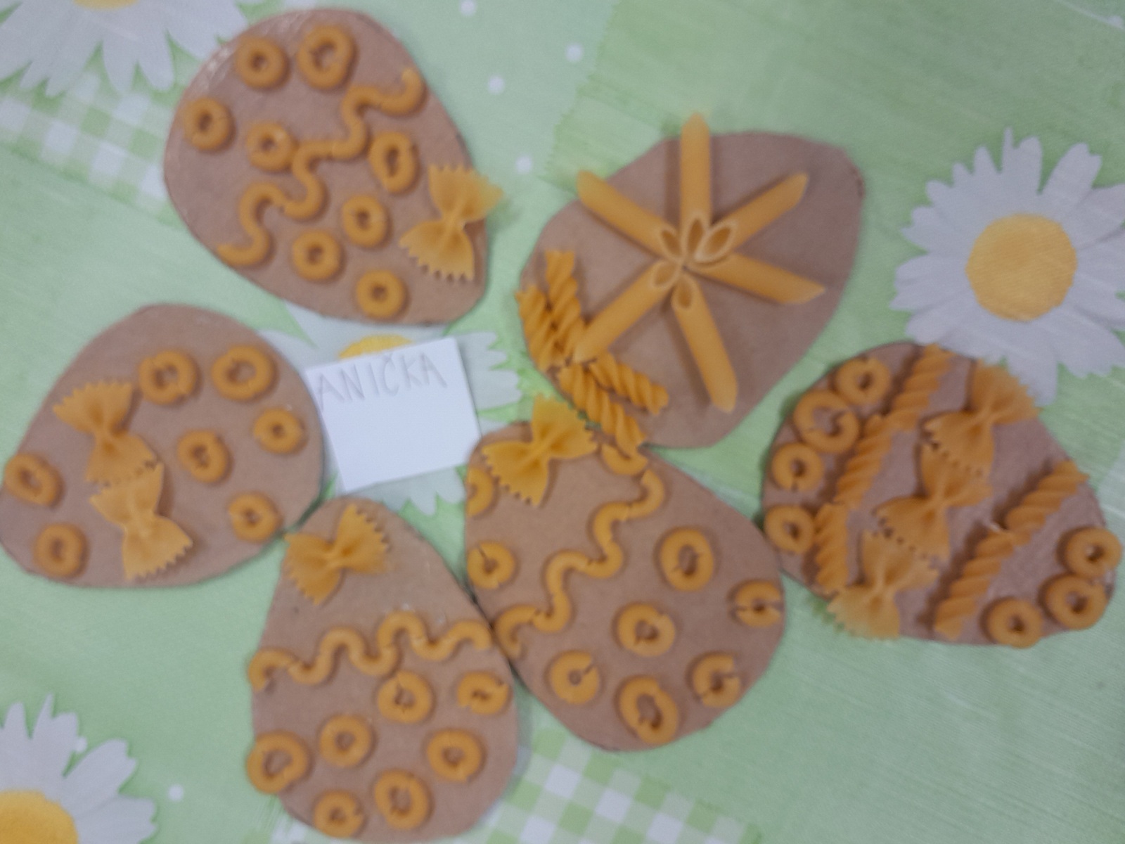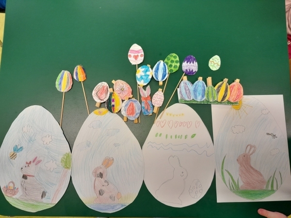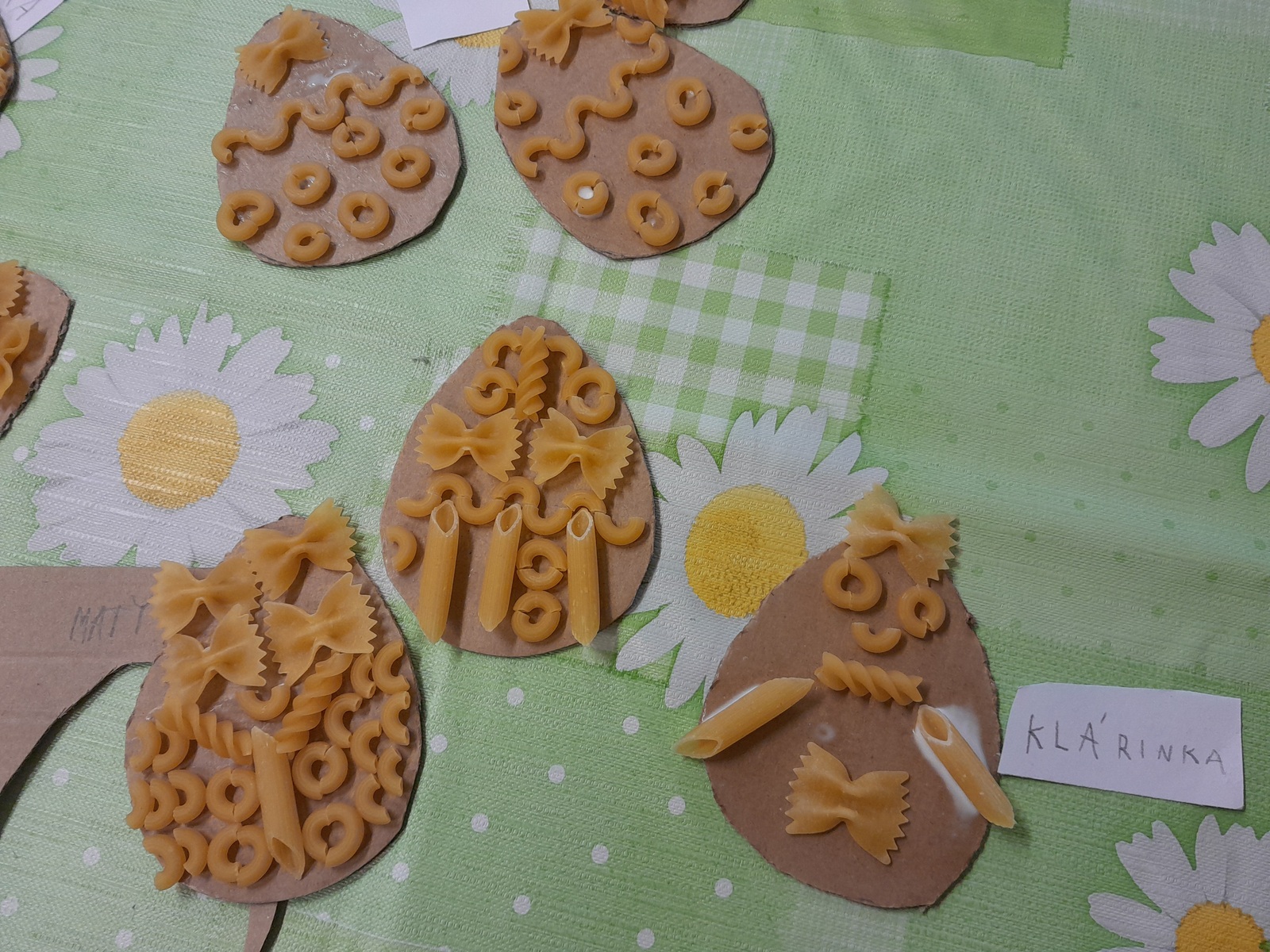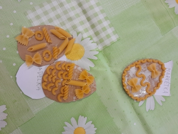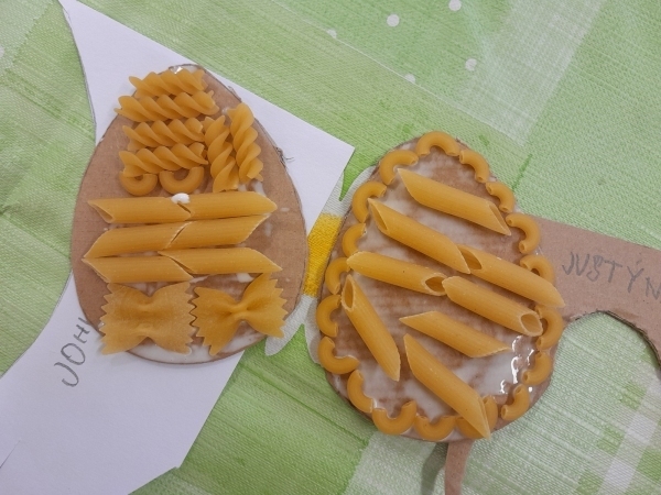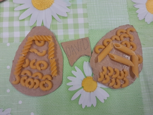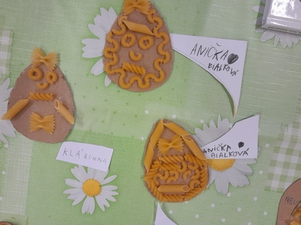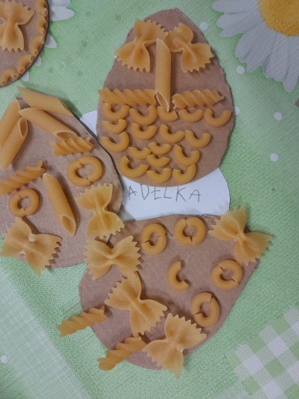 Košíček na kraslice, zápichy do květináče, vajíčko z kartonu zdobené těstovinami, kraslice malovaná pomocí pěny na holení. To vše jsme tvořili během pašijového týdne.