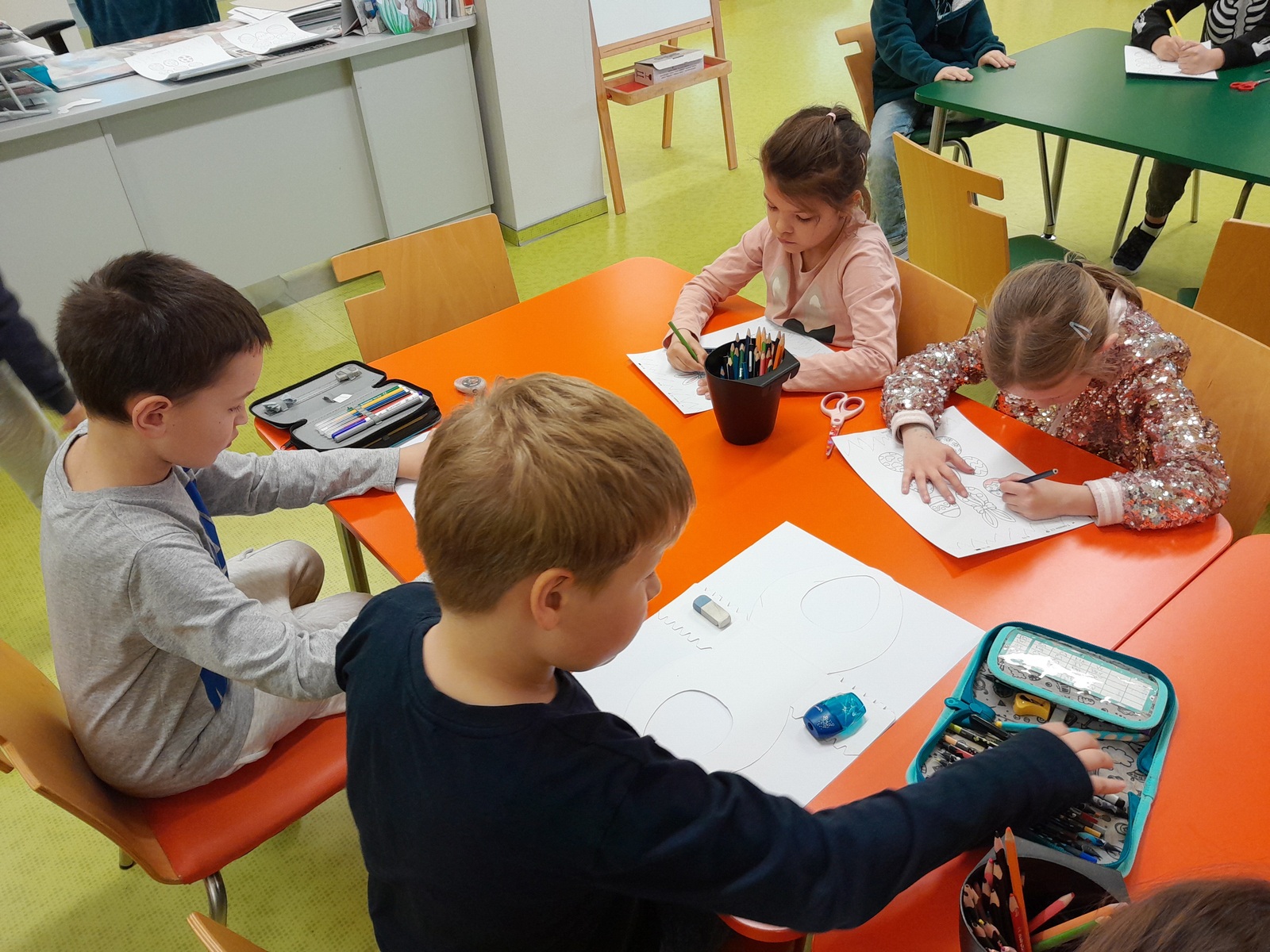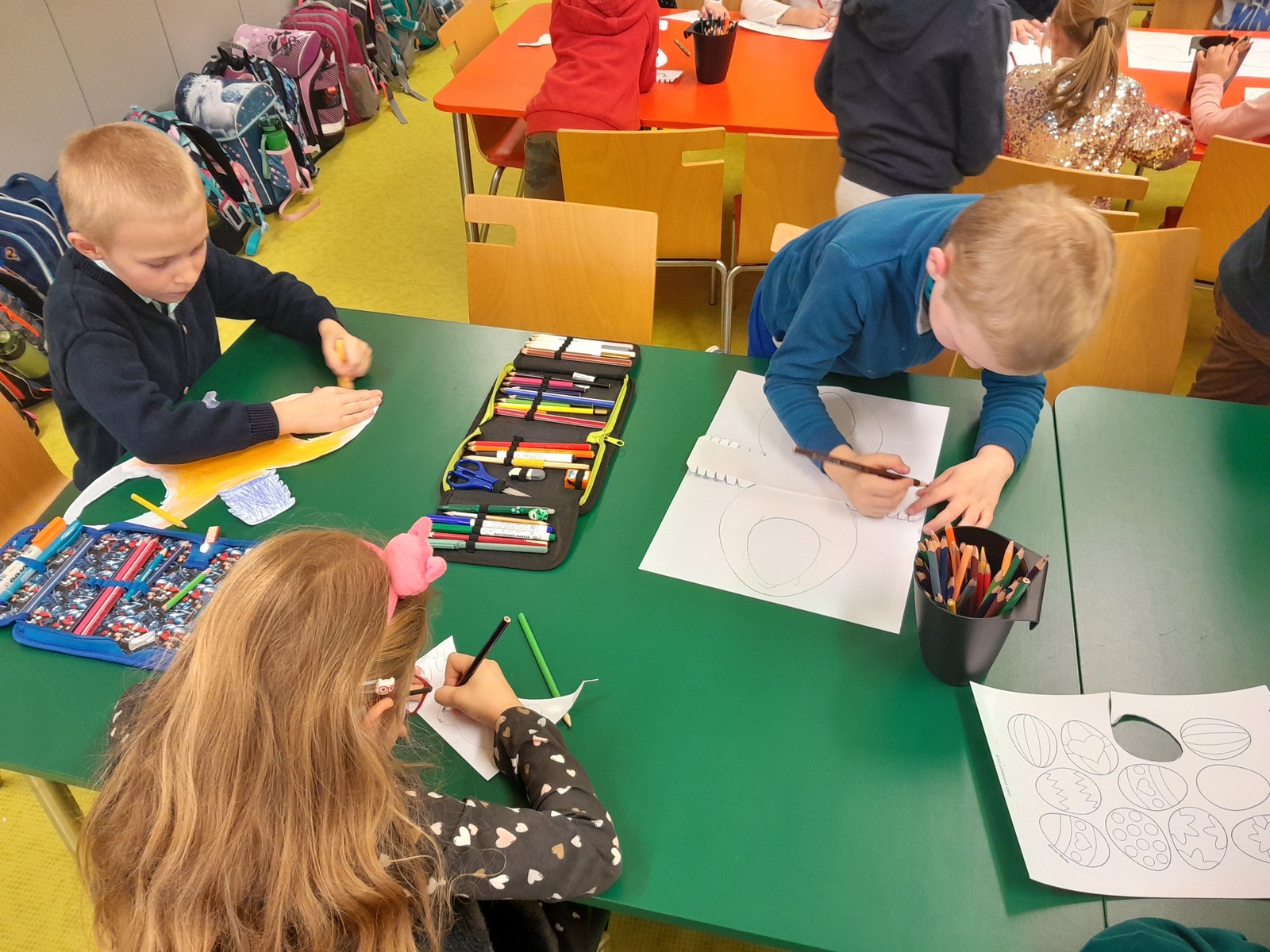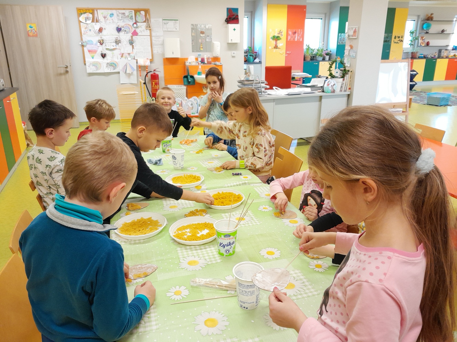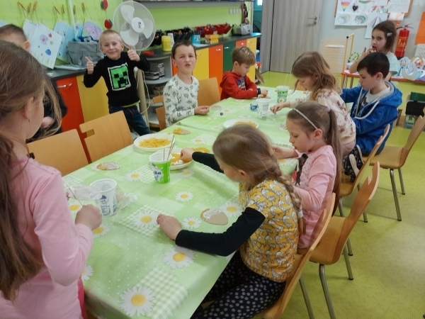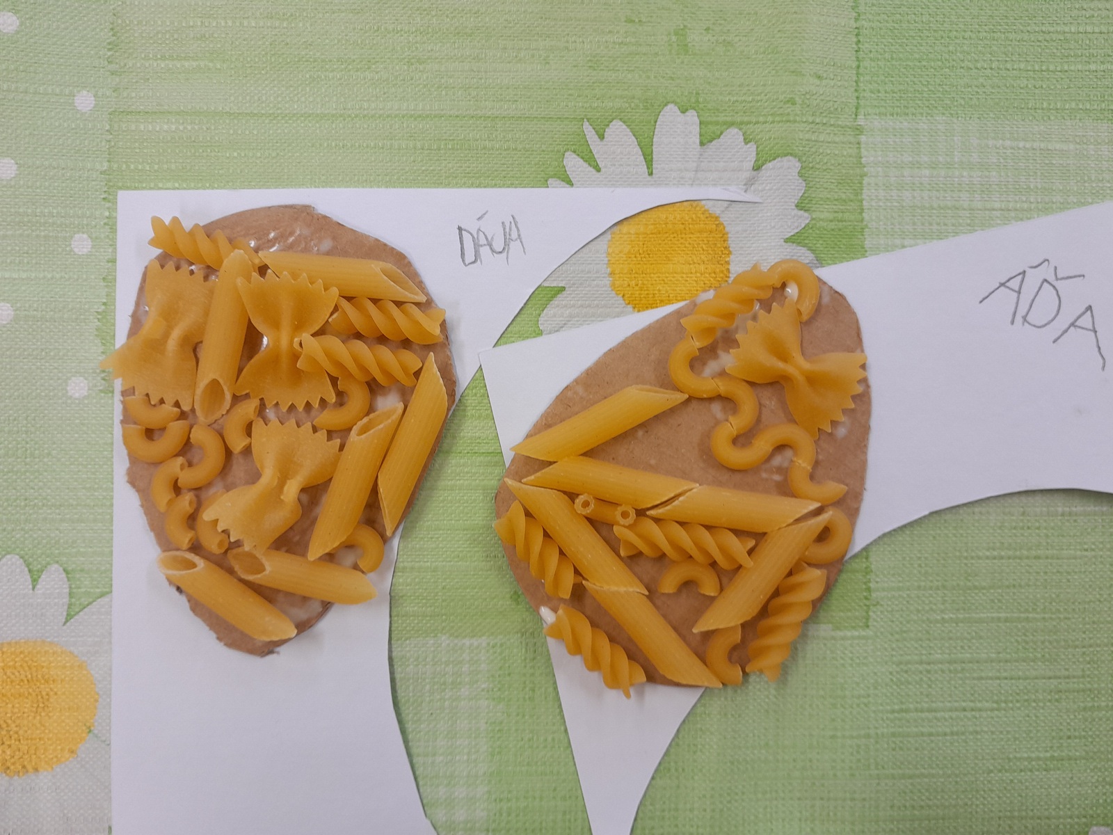 Košíček na kraslice, zápichy do květináče, vajíčko z kartonu zdobené těstovinami, kraslice malovaná pomocí pěny na holení. To vše jsme tvořili během pašijového týdne.