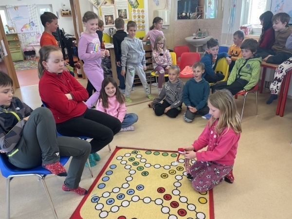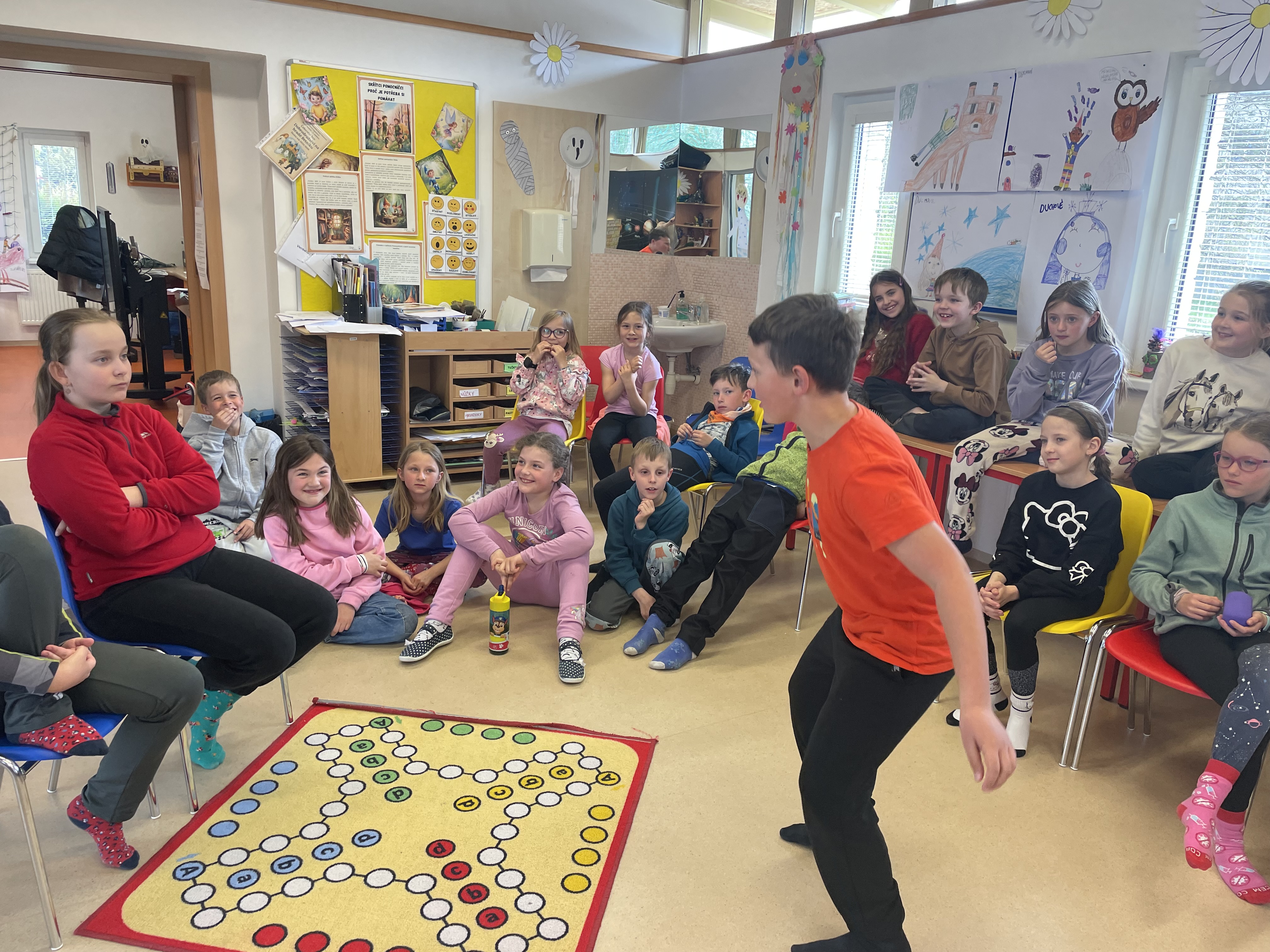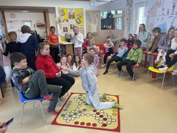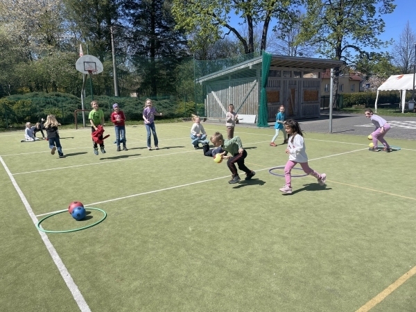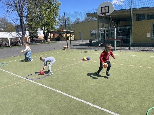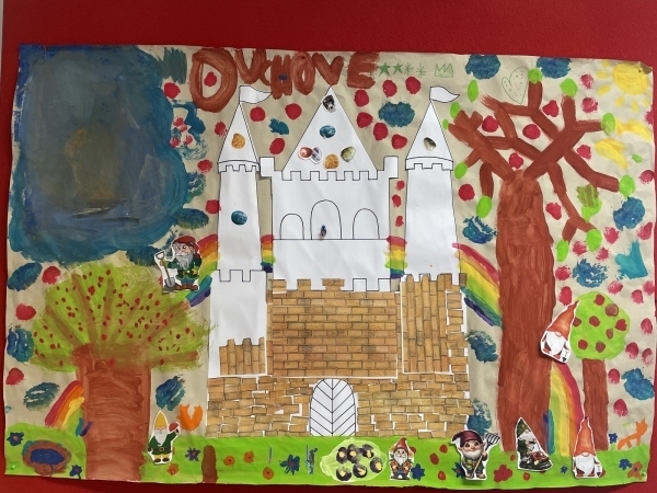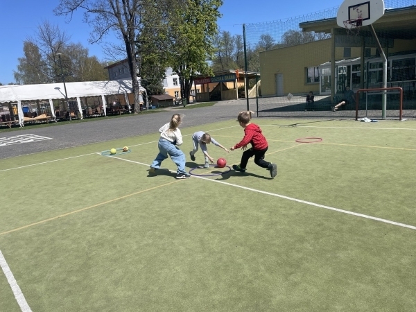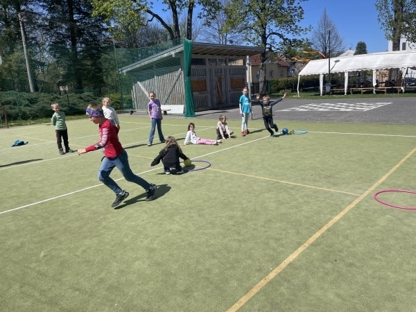 Ve volných chvílích nám vyšel čas na hraní her, tvoření, sportování a speciální soutěž o "Dvorního šaška", kdy děti měly za úkol svým vtipným vystoupením rozesmát její veličenstvo krále a královnu. Soutěž vyhrál Honzík Kusák.