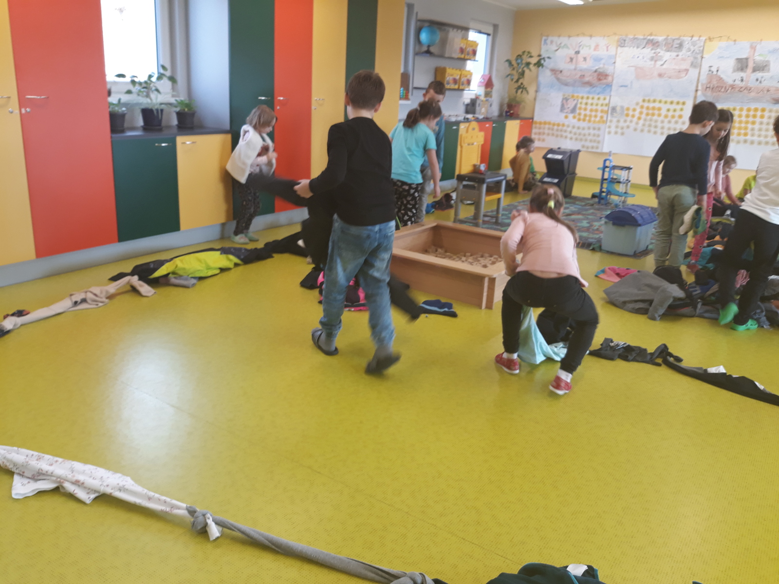 Úkol zněl jasně. Vytvořit co nejdelší lano z vlastního oblečení. Pirátská loď se bez lan neobejde.