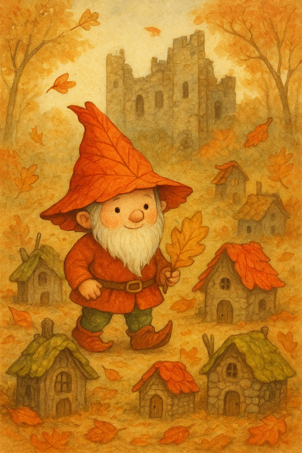 Pak ale přišla starost: kde budou všichni žít? Dubánek si sedl na pařez a přemýšlel. A hned měl plán. Zavolal vítr, aby mu nafoukal listy, poprosil datly, aby vyťukali dřevo, a veverky, aby nanosily oříškové skořápky. Den po dni, noc po noci společně stavěli malé domečky. Některé měly střechy z mechu, jiné z barevných listů, a ty největší z pevných větví a kamenů. Když bylo hotovo, obyvatelé hradu žasli. Nikdo už se nemusel bát padajících zdí – každý měl svůj nový, útulný domeček. Skřítkové i zvířata děkovali Dubánkovi a on se jen skromně usmál a schoval se zpátky do lesa, aby pomohl zase někde jinde. Od té doby si všichni říkali, že když podzim přinese vítr a chlad, vždy s sebou přinese i kouzlo – a že někde mezi spadanými listy možná právě pobíhá malý skřítek, co chrání ty, kteří to nejvíce potřebují.