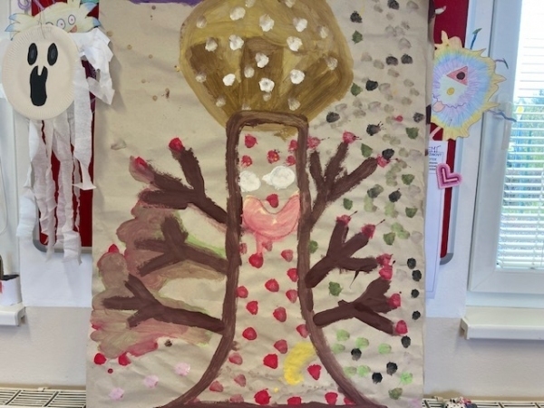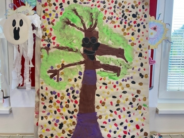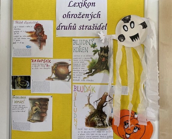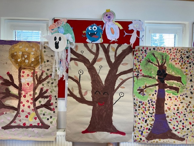 A protože je podzim, kdy se koruny stromů nádherně zbarvují, i my jsme si družinu vyzdobili do podzimních barev a vymysleli si svoje lesní stromové strašidýlka.