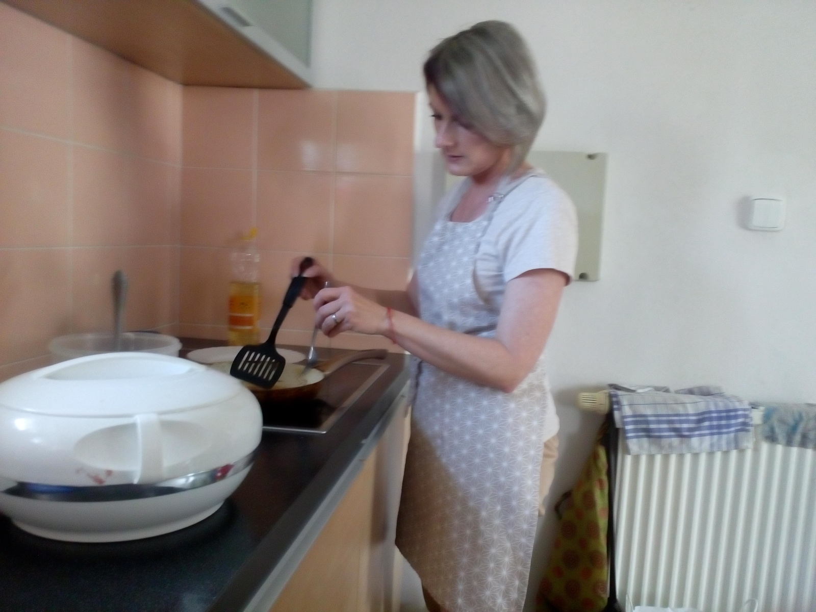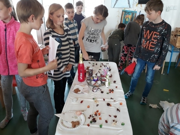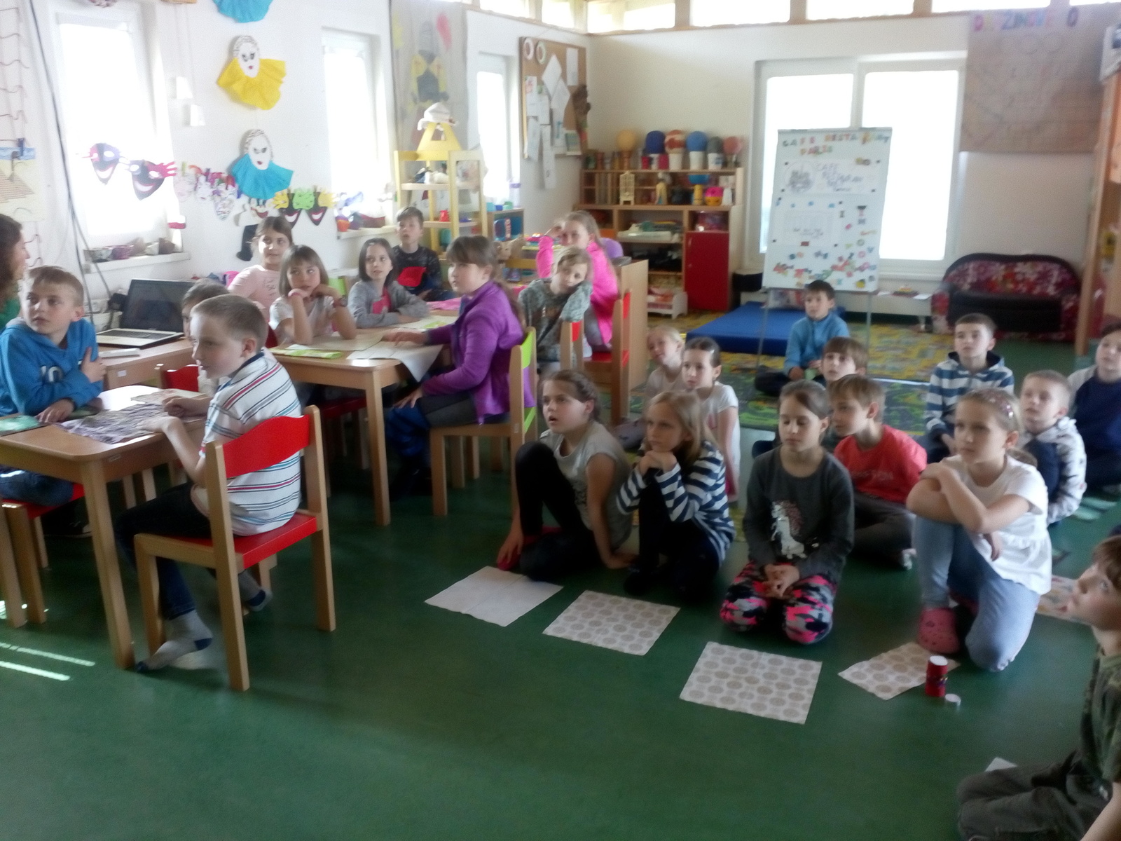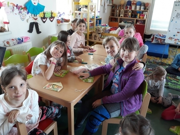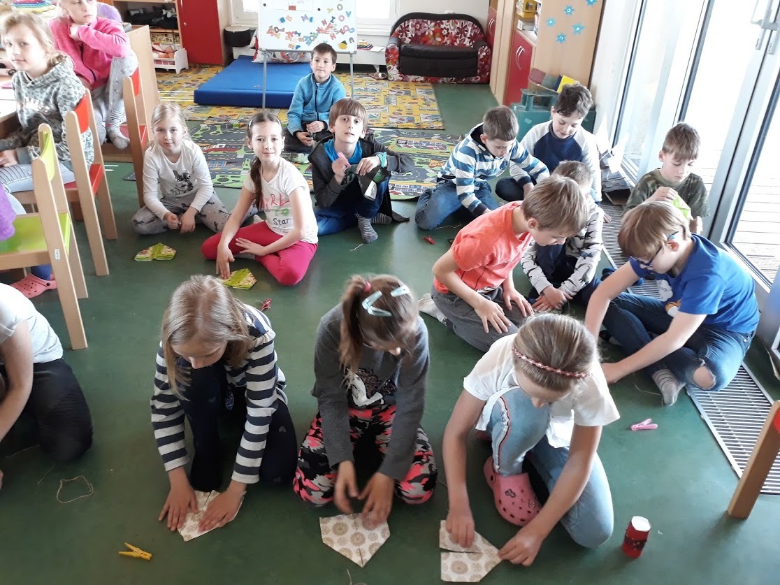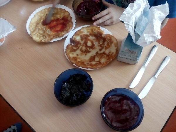 ...konkrétně v pařížské restauraci. Každý tým měl za úkol si předem promyslet a nazdobit slavnostní tabuli. Na návštěvu k nám přišla paní učitelka Lucie Chrastinová, která dětem předvedla způsob skládání ubrousků. Za snahu byly děti odměněny palačinkami. Z jídelního lístku měli na výběr palačinky s nutelou, domácí rybízovou marmeládou nebo povidly. To byla dobrota!