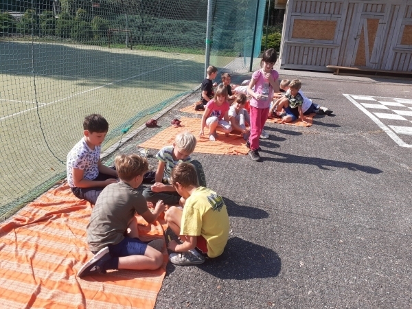 Naše cesta pravěkem začala výrobou herního plánu – pravěké jeskyně. Do té si děti budou za získané body postupně nalepovat papírové kameny a příděl obživy pro jejich tlupu. Na konci školního roku zjistíme, která tlupa postavila svoji jeskyni celou a přečkala pravěké putování. Své síly již pravěké tlupy změřily v prvních bojích – tentokrát v boji o vodu a kořist.