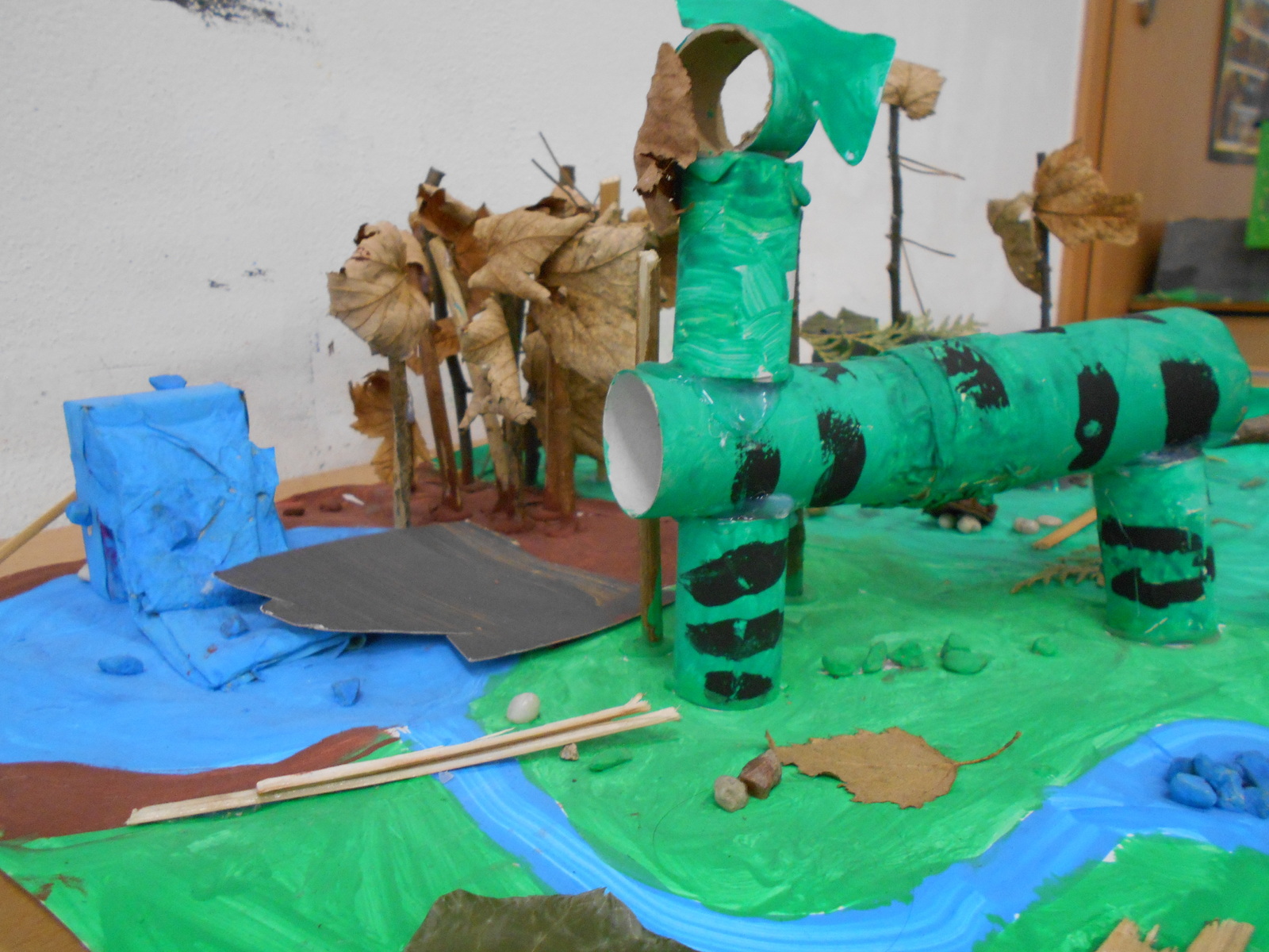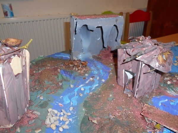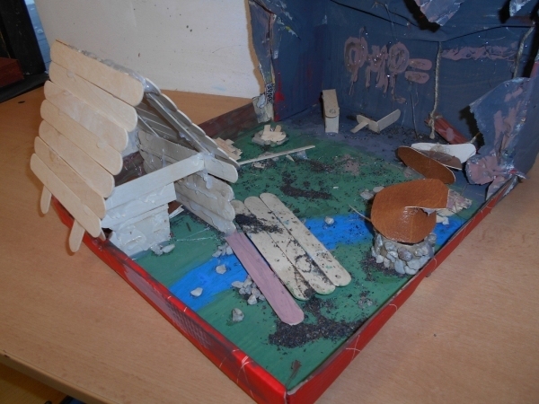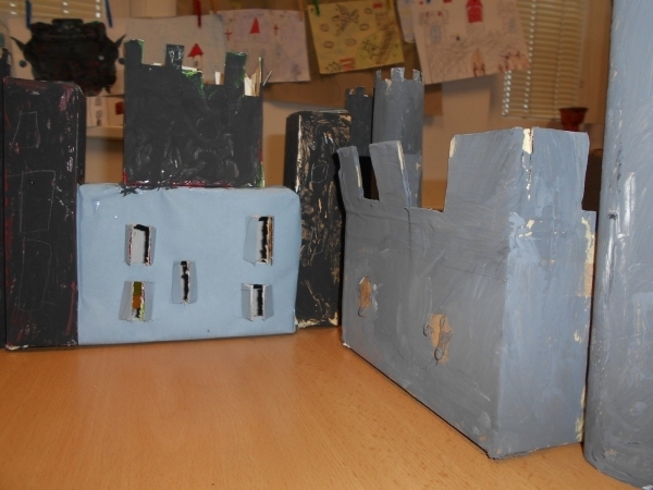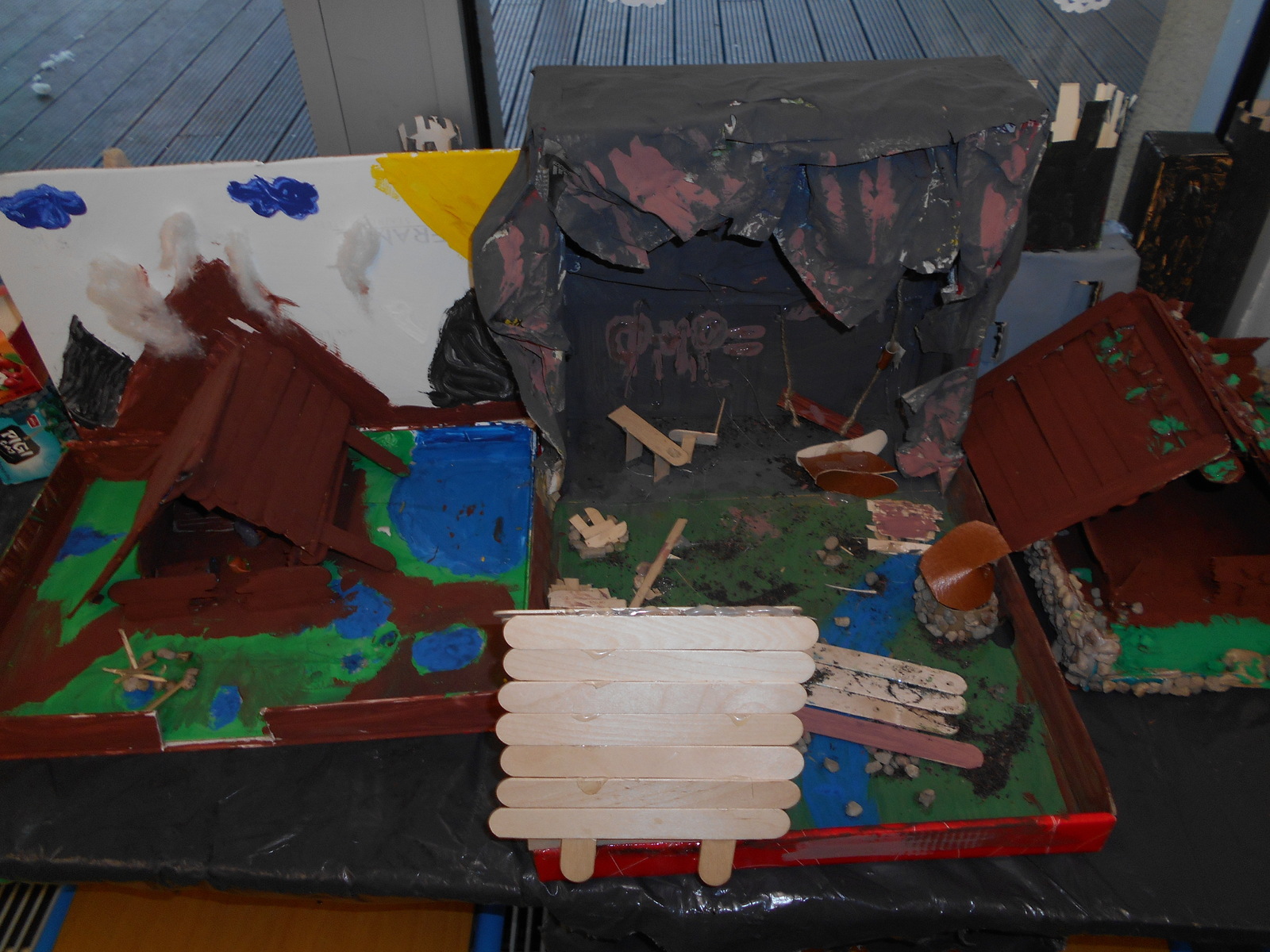 V těchto etapách jsme se s žáky zaměřili na pracovní a výtvarnou činnost - tvoření plastických modelů pravěké jeskyně, středověké vesnice a hradů technikou kašírování s využitím dostupných přírodnin. Žáci se v těchto etapách postupně seznamovali se životem v daném období.