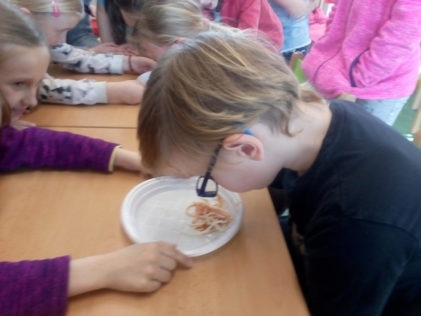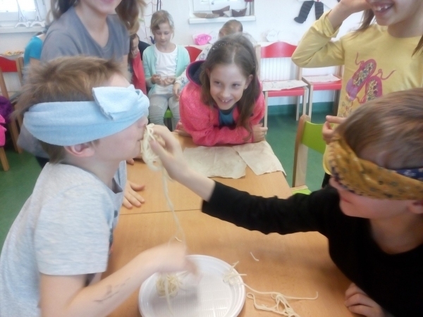 ... špagety. Etapu o Itálii, jsme zakončili soutěžemi s vařenými špagetami. Je pravda, že některé děti měly špagety víc na hlavě, než v puse, ale za pobavení to stálo!