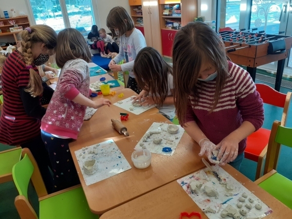 V družině jsme na výrobu ozdob použili modelovací hmotu, recyklovaný papír a kamínky.