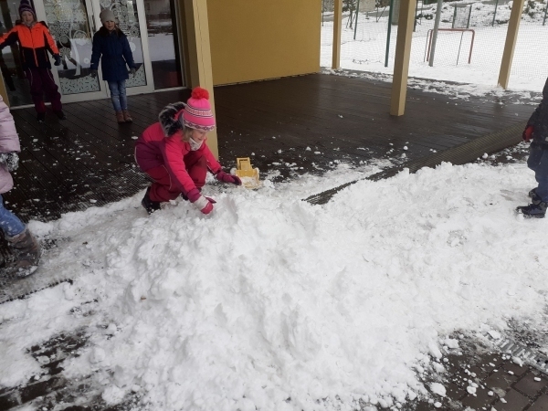 I dnes jsme si sněhovou nadílku opravdu užili. Skákání do sněhu a modelování postavy nás moc bavilo!