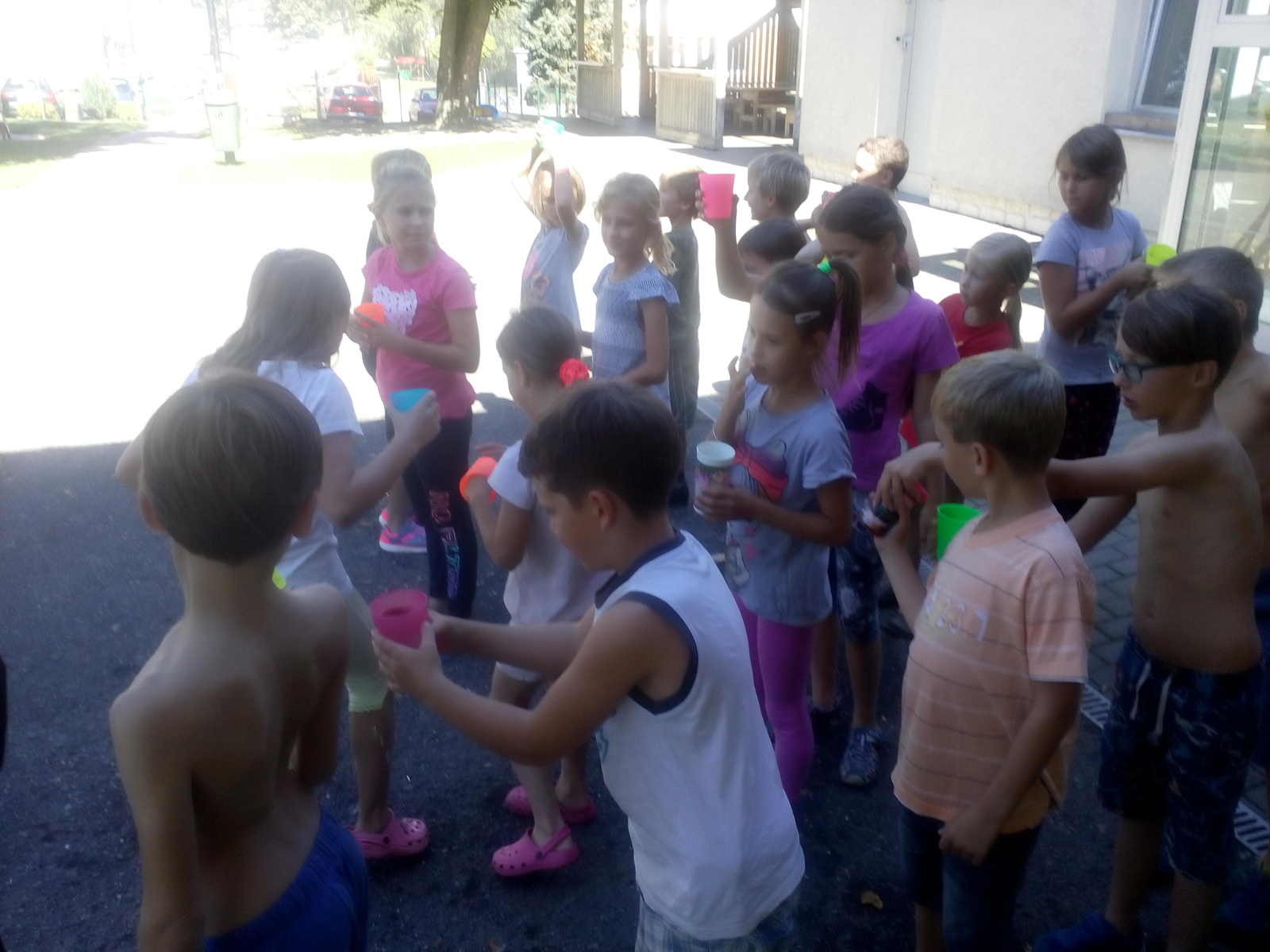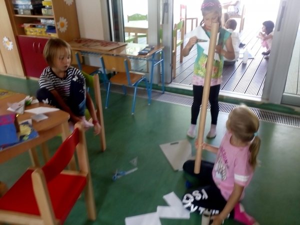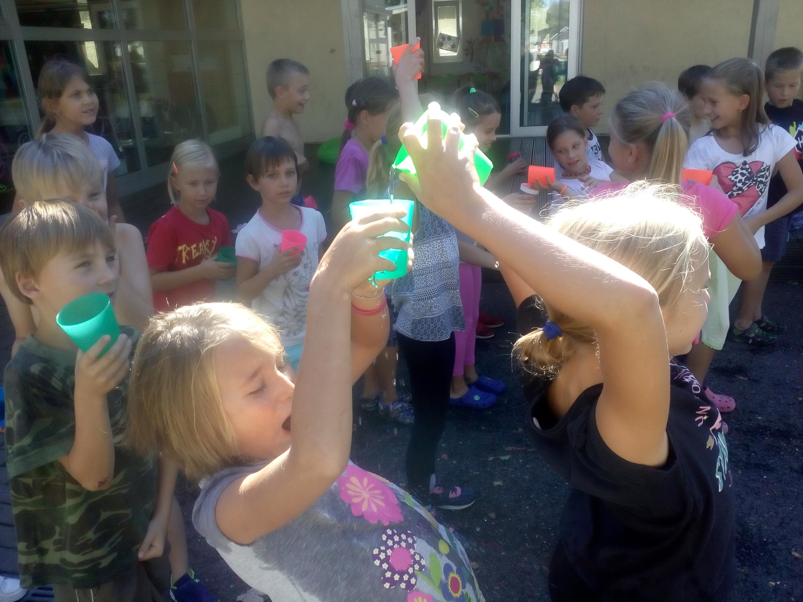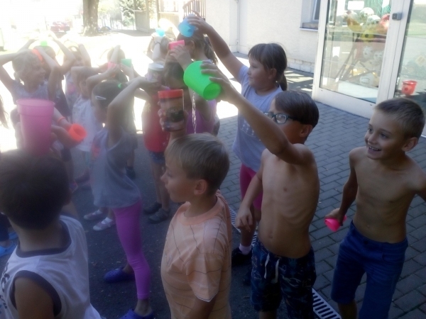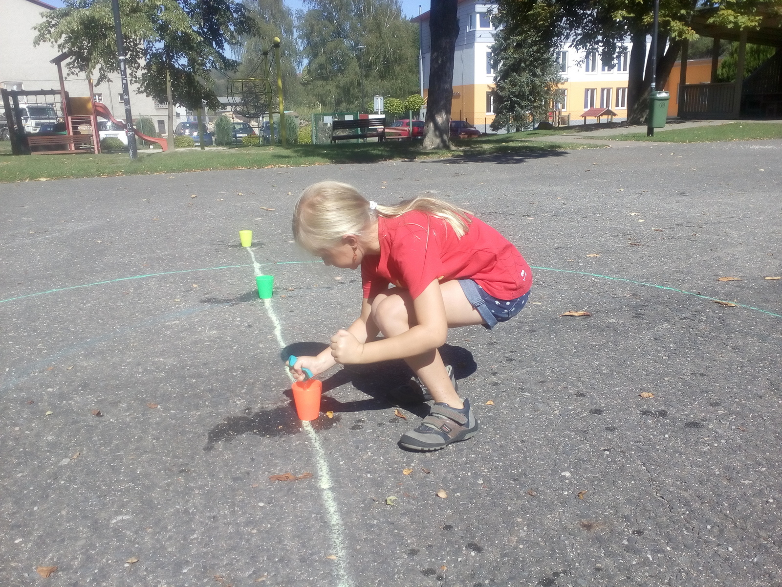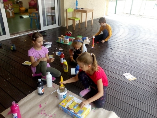 Děti se již plně zapojují do her, soutěží a vyrábění. Hodně nám k tomu přispívá i krásné počasí, kdy veškeré činnosti můžeme provádět v přírodě, jako dětmi tolik oblíbené soutěže s vodou.