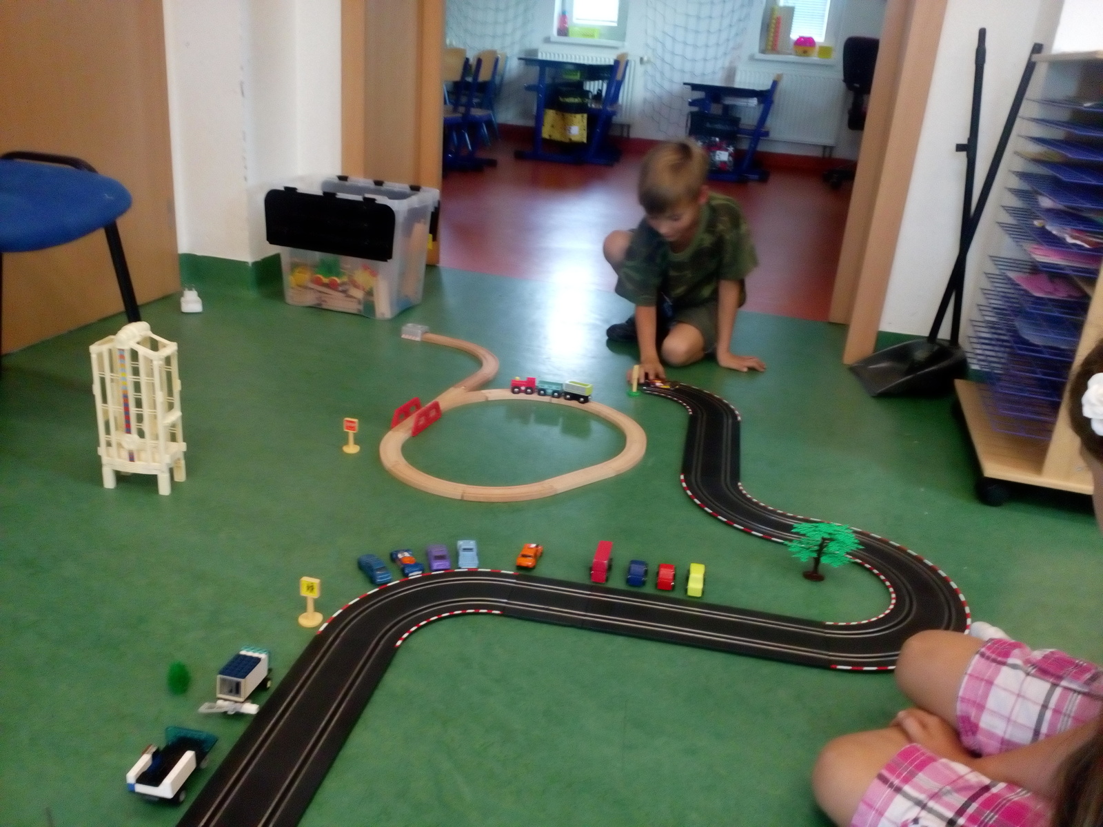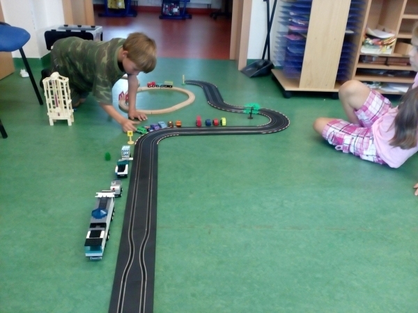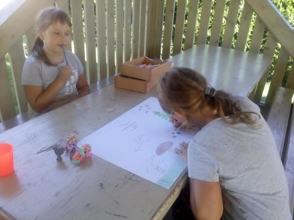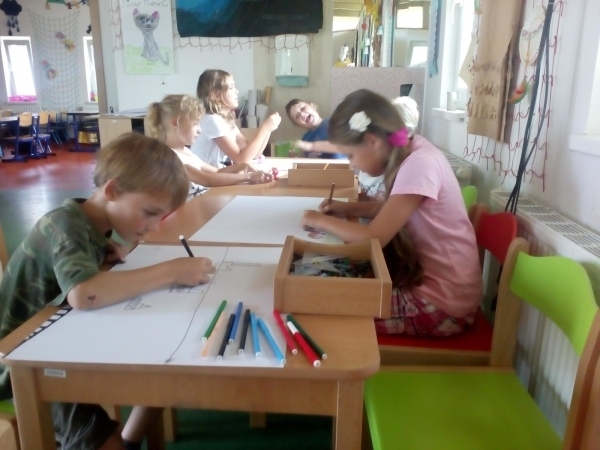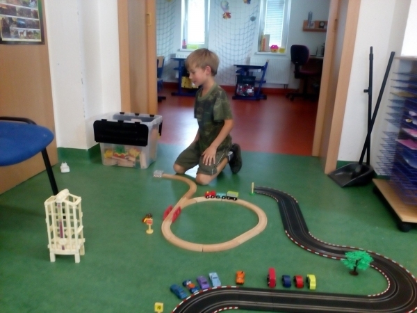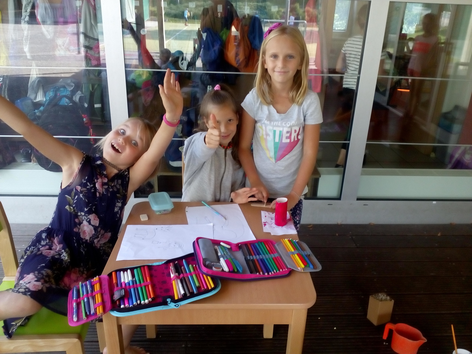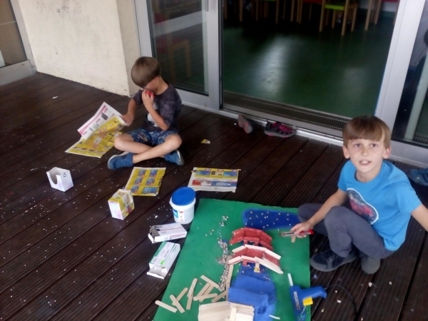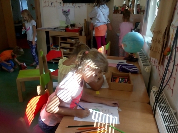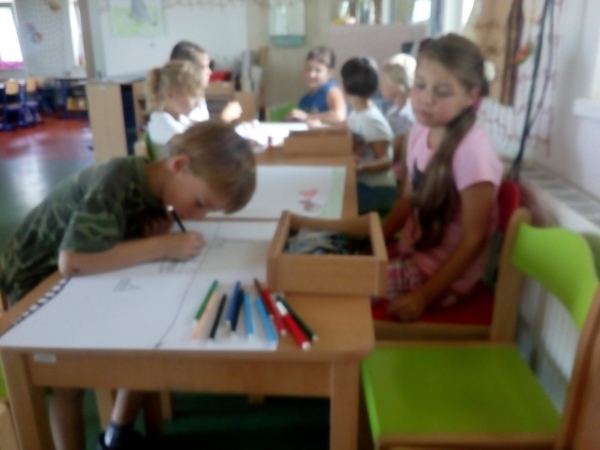 Děti se již plně zapojují do her, soutěží a vyrábění. Hodně nám k tomu přispívá i krásné počasí, kdy veškeré činnosti můžeme provádět v přírodě, jako dětmi tolik oblíbené soutěže s vodou.