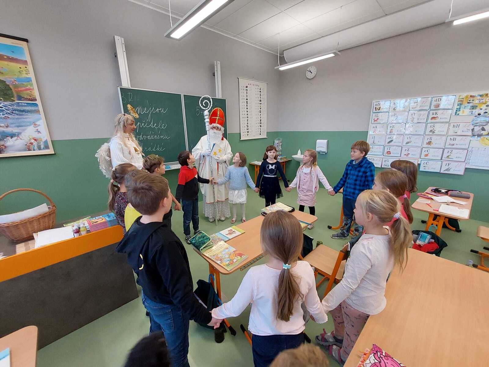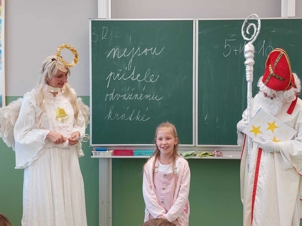 Mik, Miku, Mik, Miku, Mikuláš... tyto a jiné básničky se v pátek nesly napříč všemi třídami. Mikuláš, doprovázen čertem i andělem, zavítal i do naší mateřské i základní školy a rozdával radost a dárečky. Některé děti sice musely slíbit, že se polepší, ale i tak neměl čert téměř žádnou práci. Tak snad děti zůstanou i nadále tak hodné a šikovné.