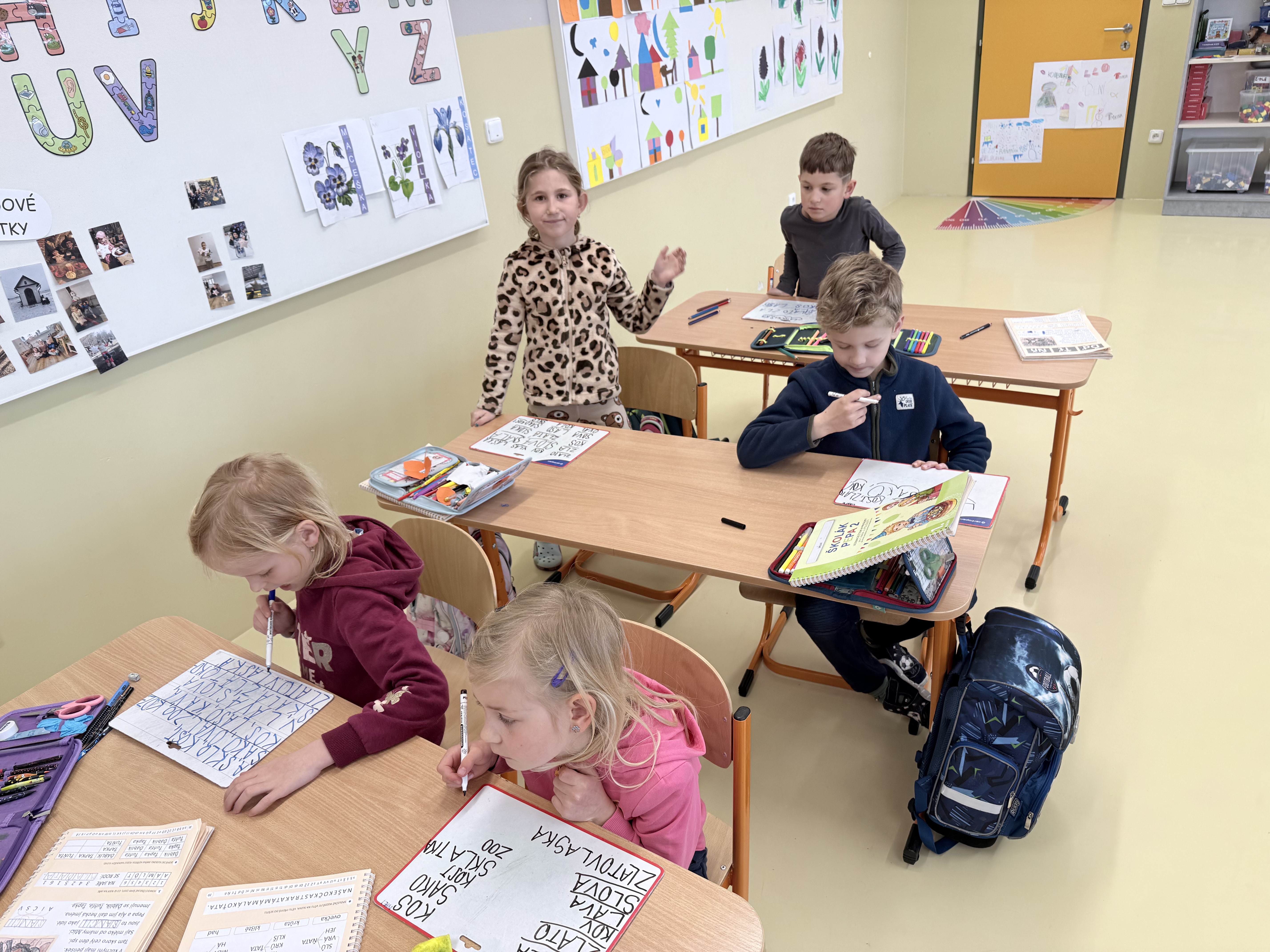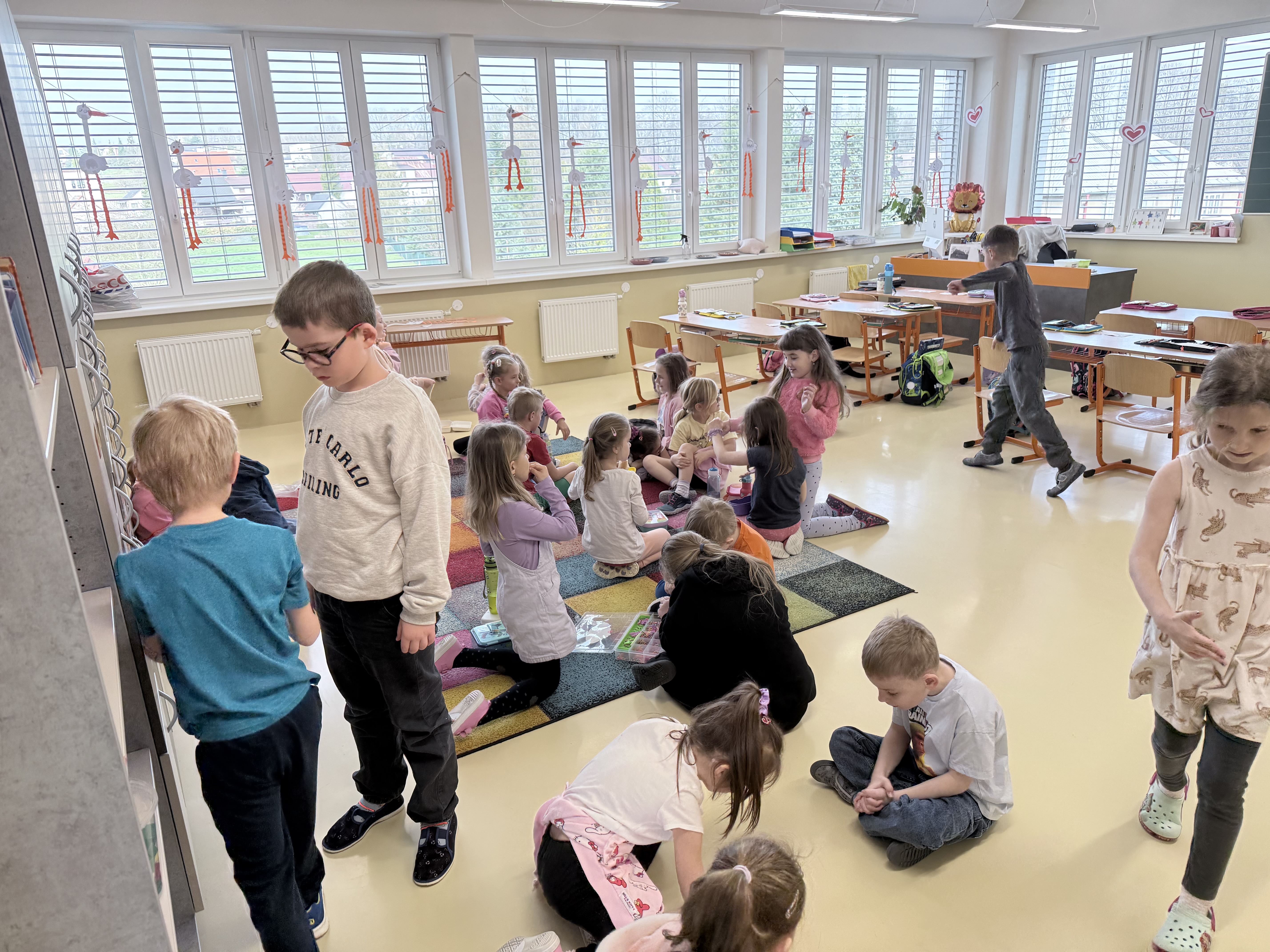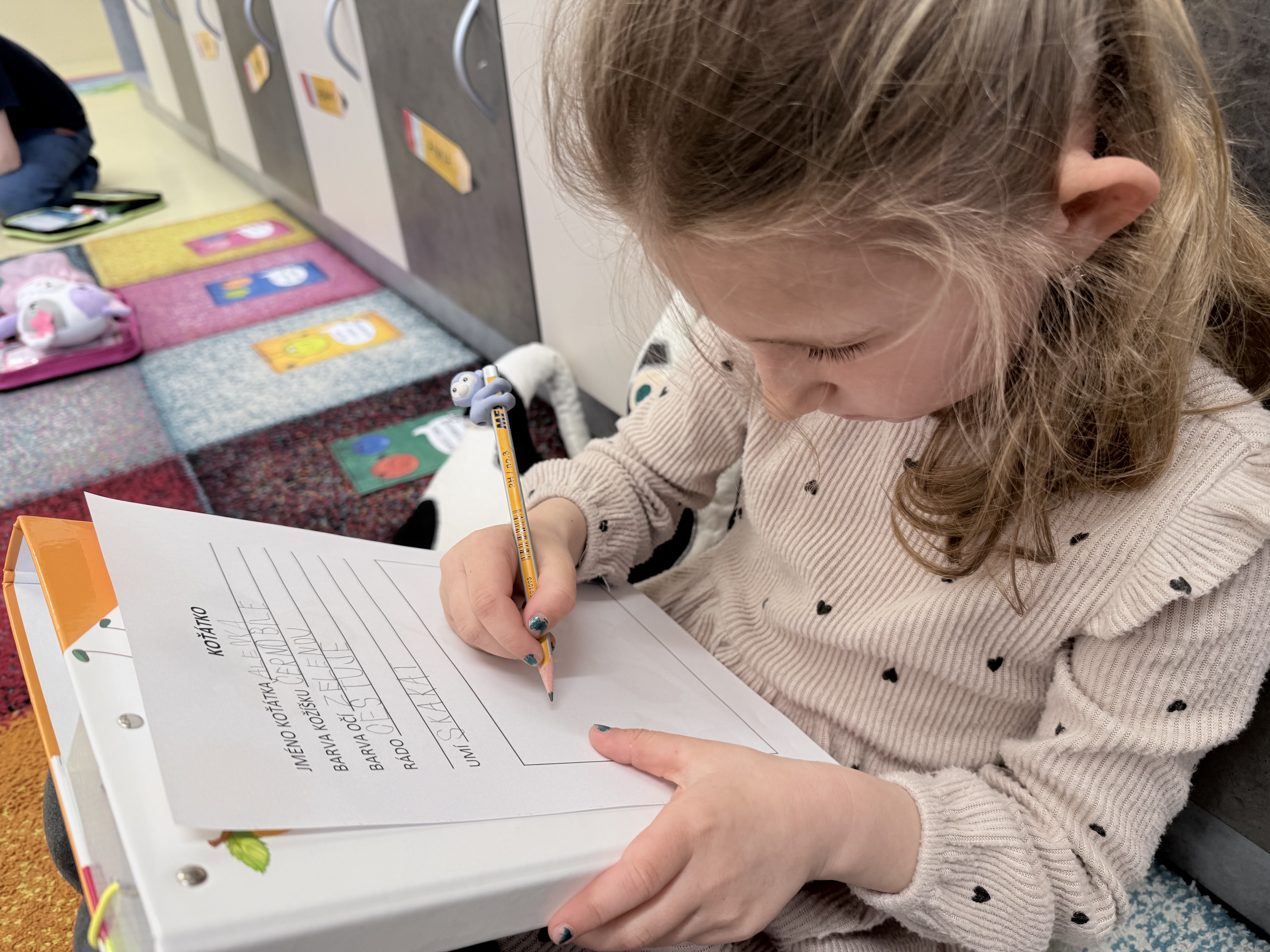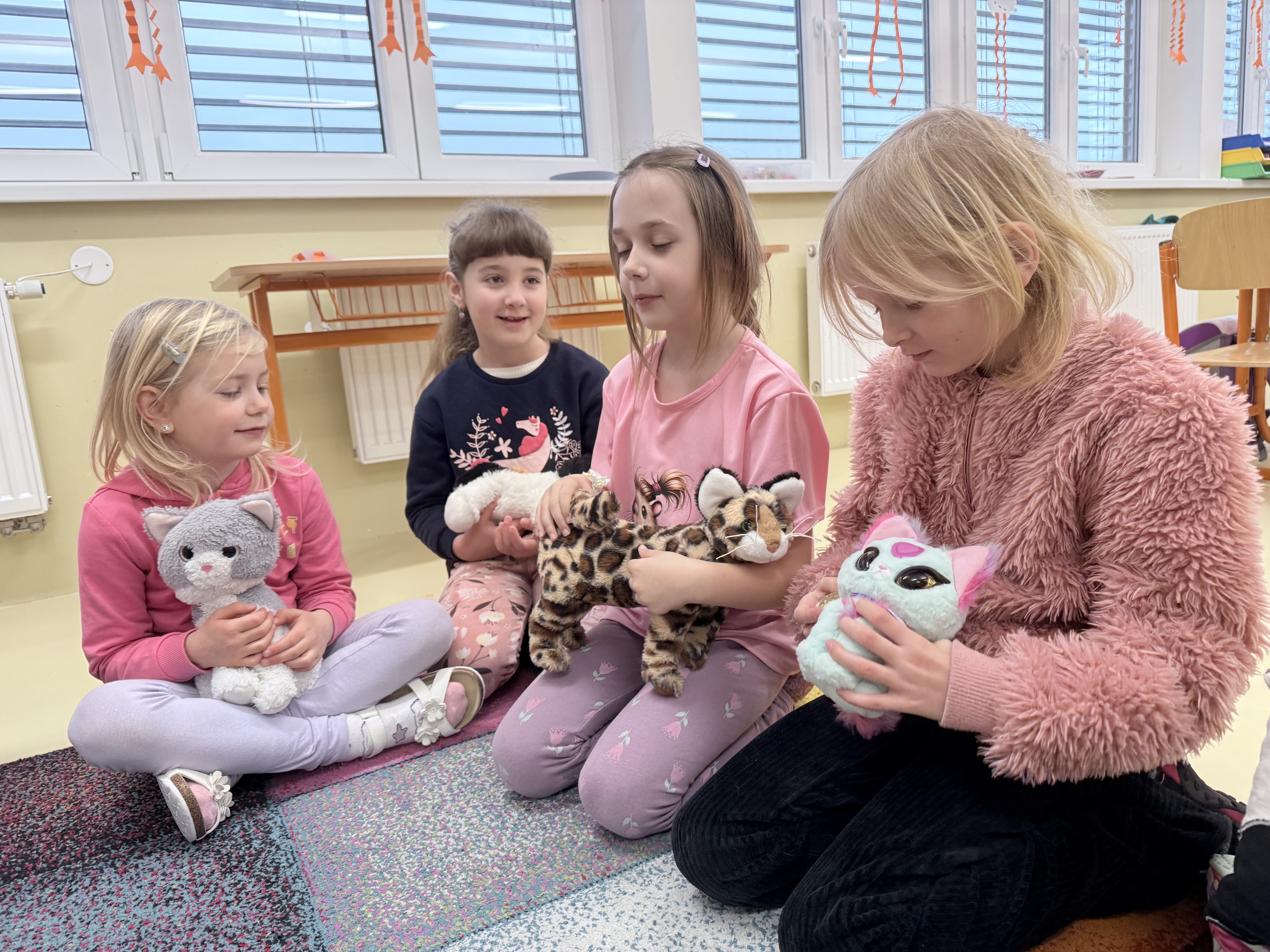 Přestože měl tento školní týden jen tři dny, stihli jsme toho opravdu hodně. Z písmen ze slova Zlatovláska jsme vymýšleli nová slova. Dle zadání jsme stavěli krychlové stavby. Vyzkoušeli jsme si také ve dvojicích postavit věž z krychlí, a to pomocí gumičky. V úterý jsme si udělali Kočičí den. Kočičky jsme si vzájemně představili, seznámili jsme je s velikonočními tradicemi a vytvořili jim vizitky. S kočičkami jsme si i zacvičili.
