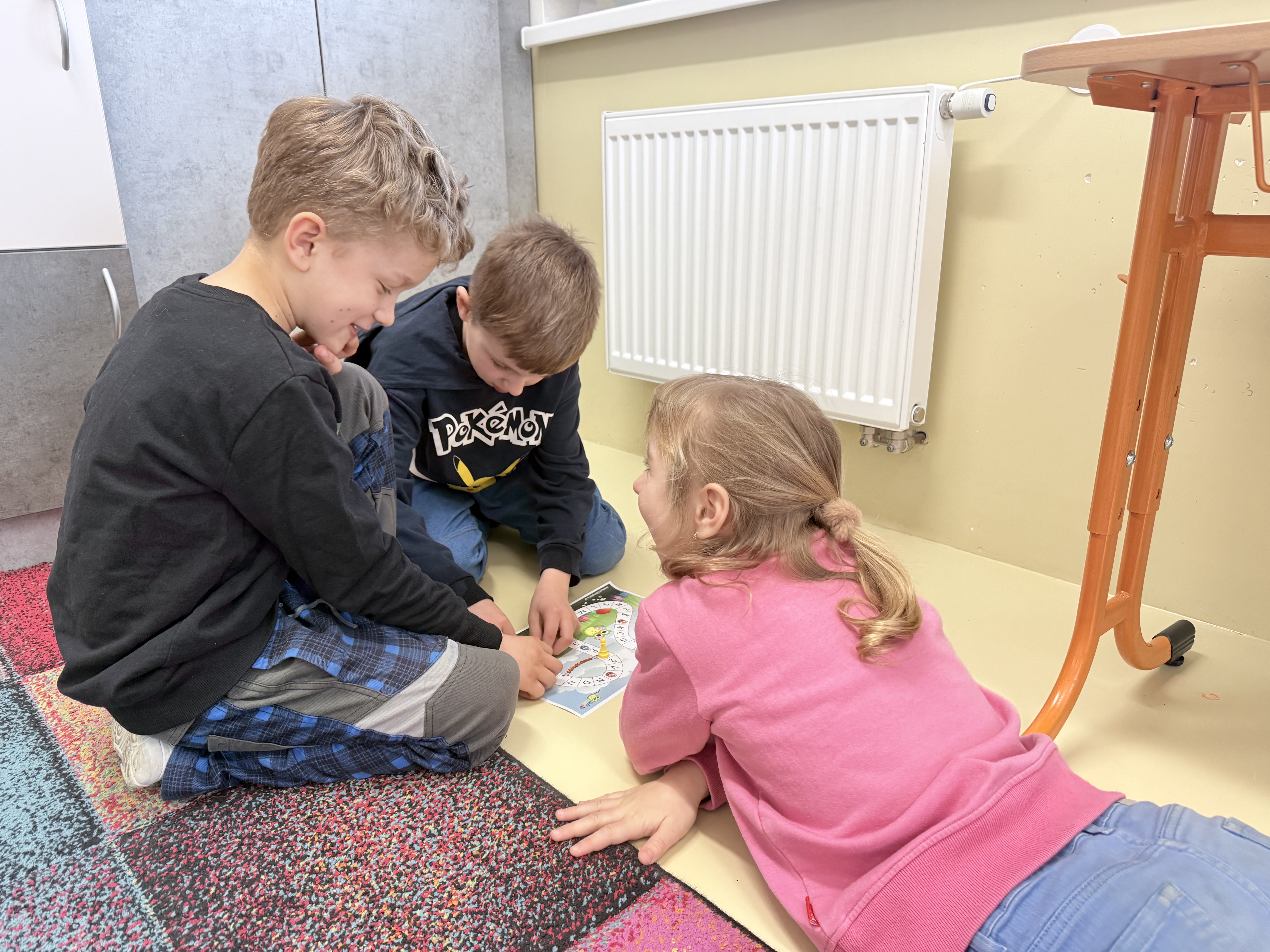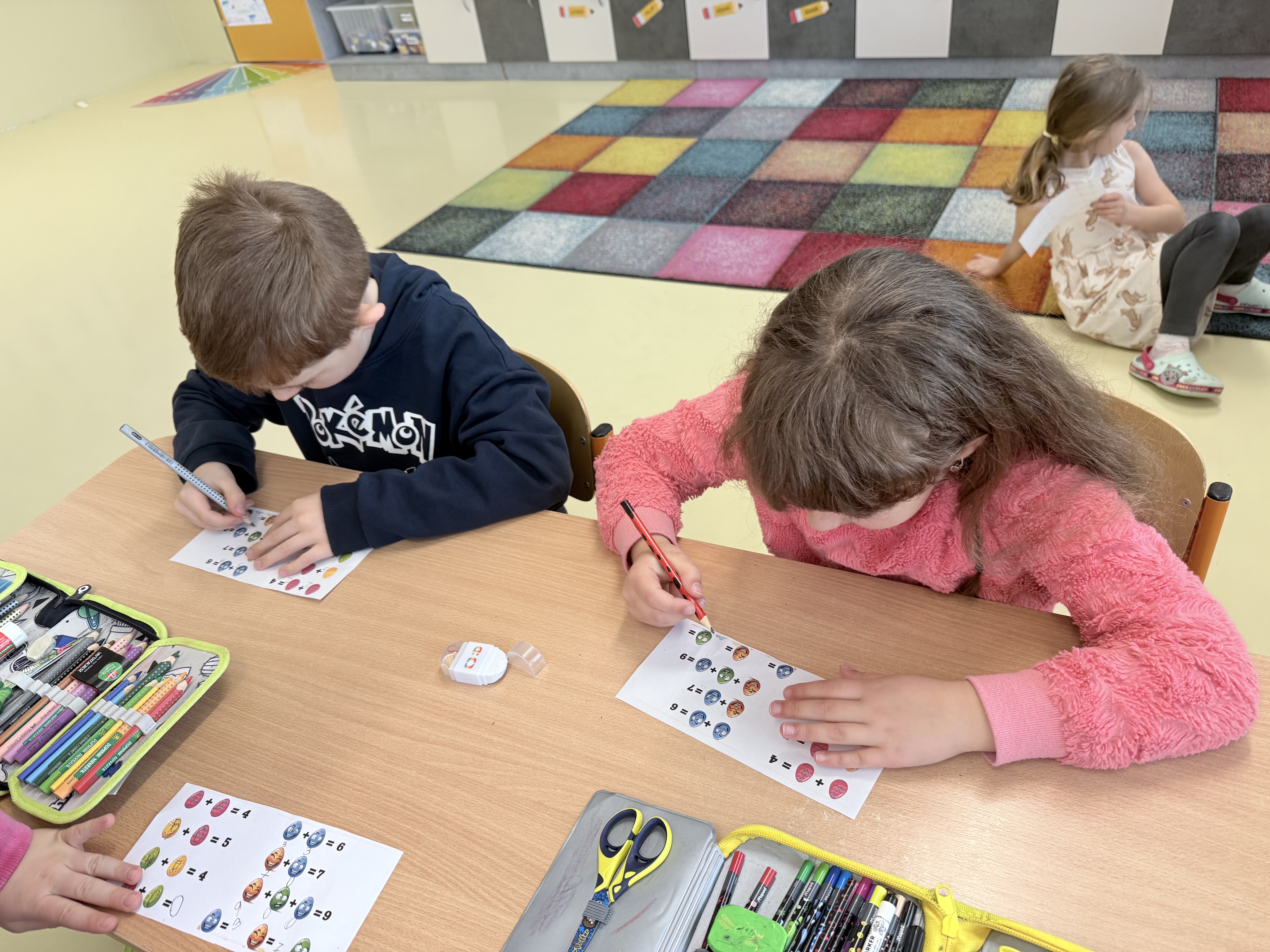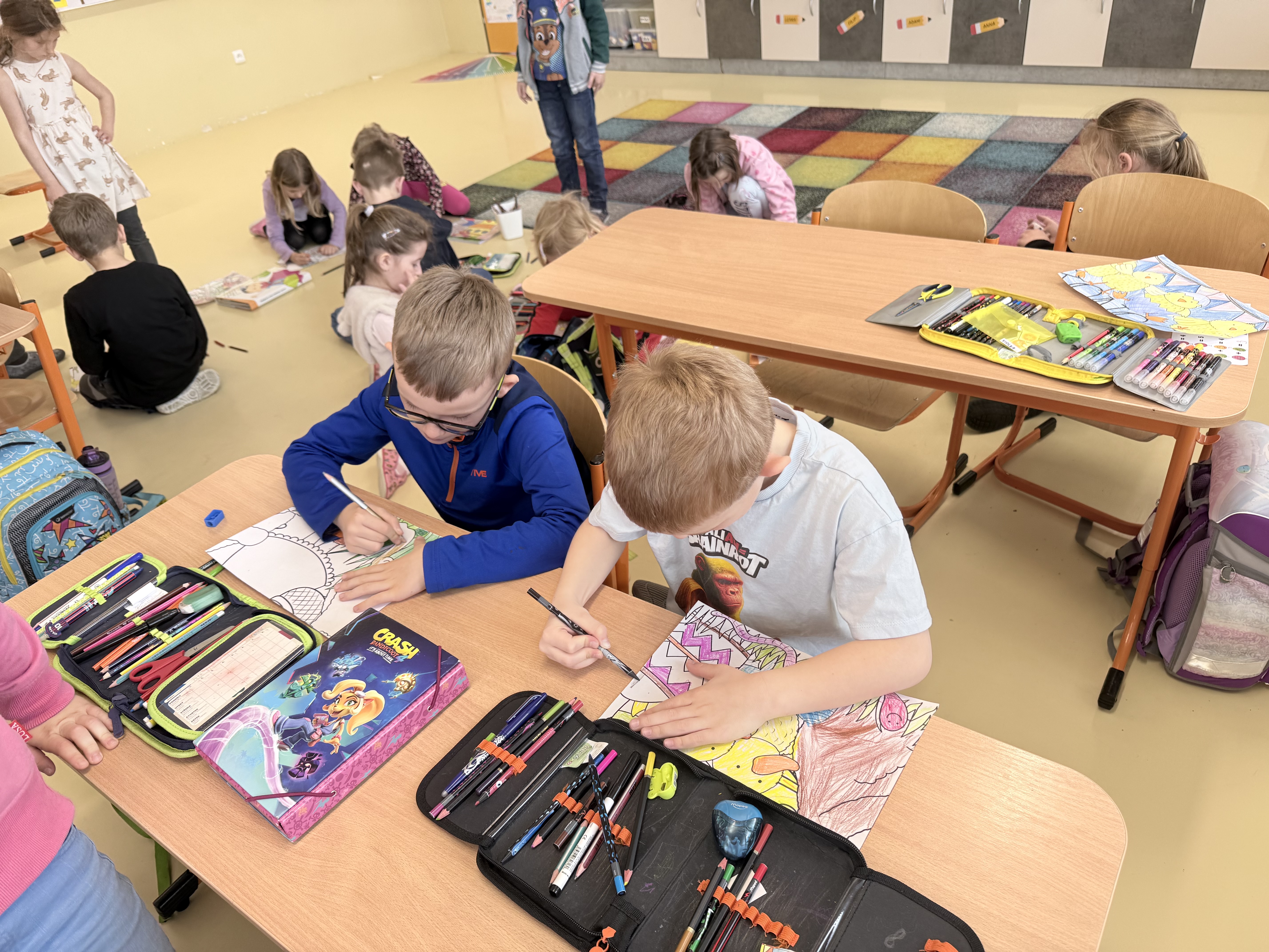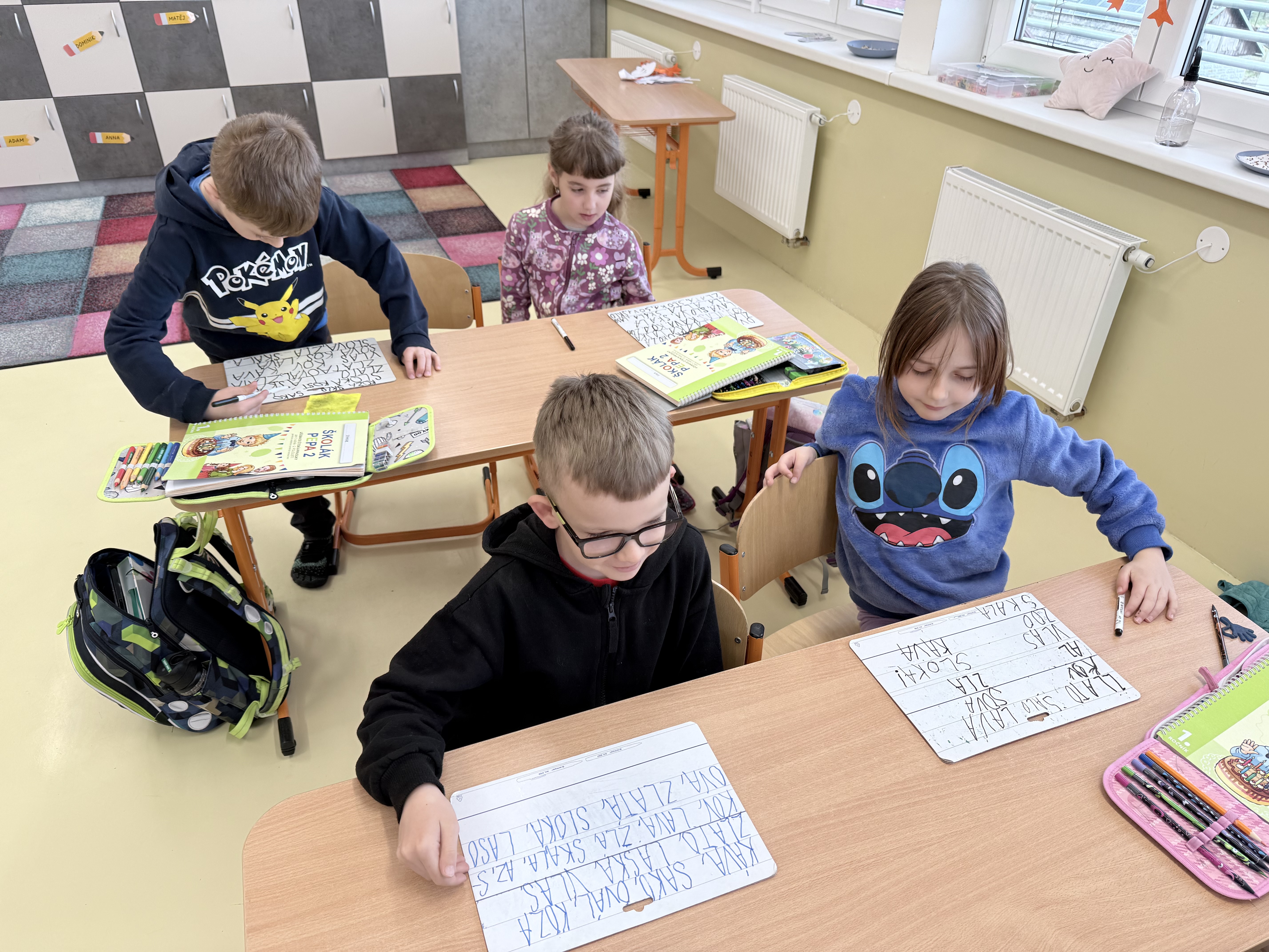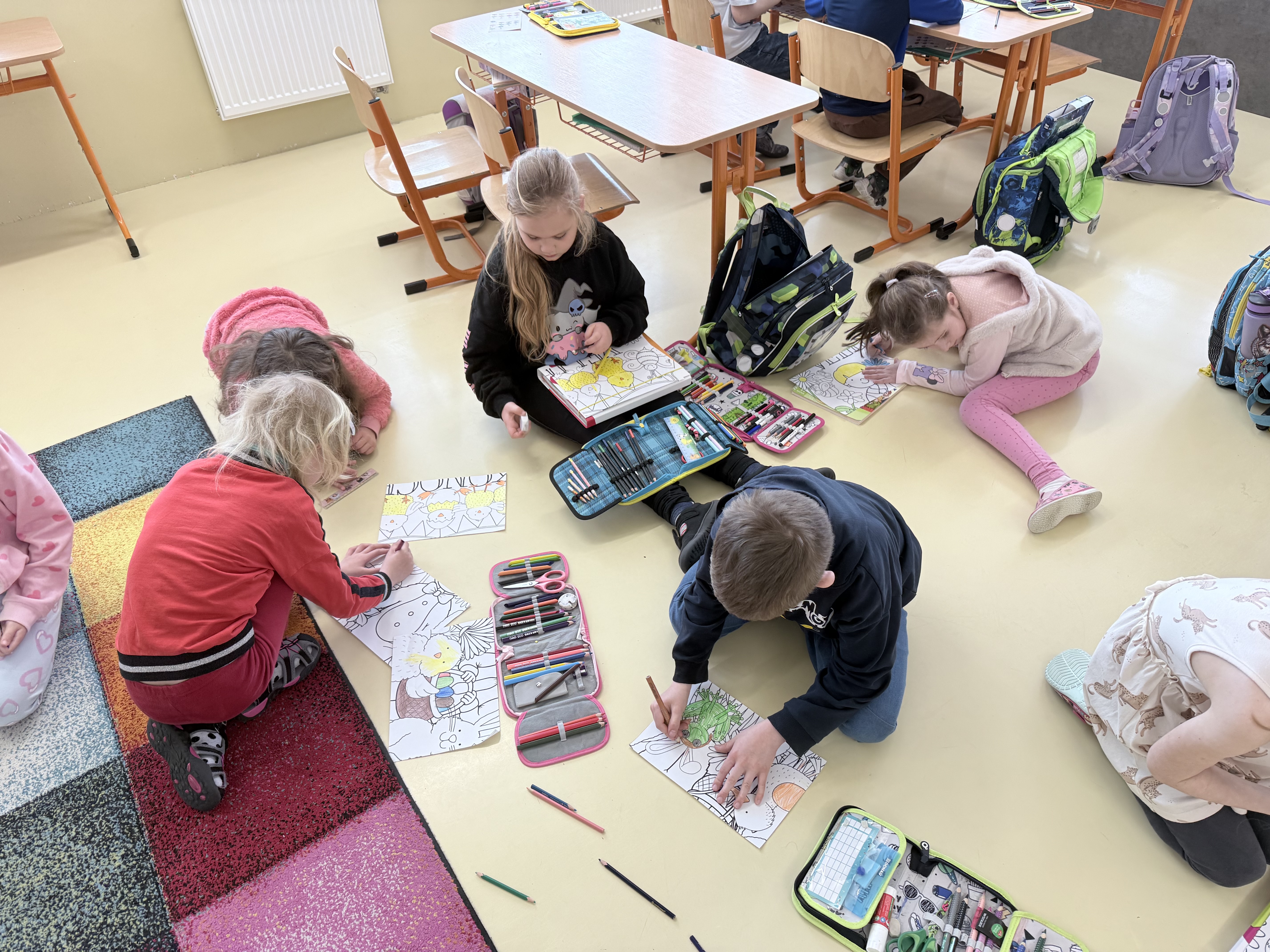 Poslední den před velikonočními prázdninami jsme si zahráli velikonoční hry - Slovní hady, počítali jsme začarovaná vajíčka. Navštívili nás také kamarádi z 1. A. Novinkou byl pro nás kooperativní obraz. Nejprve bylo potřeba obraz poskládat, abychom zjistili, co z jednotlivých listů vznikne. Poté přišla nejtěžší část - společně se domluvit na barvách tak, aby obraz působil jednotně. Bylo to velmi náročné, ale vše jsme to zvládli! Jsme totiž jeden tým!