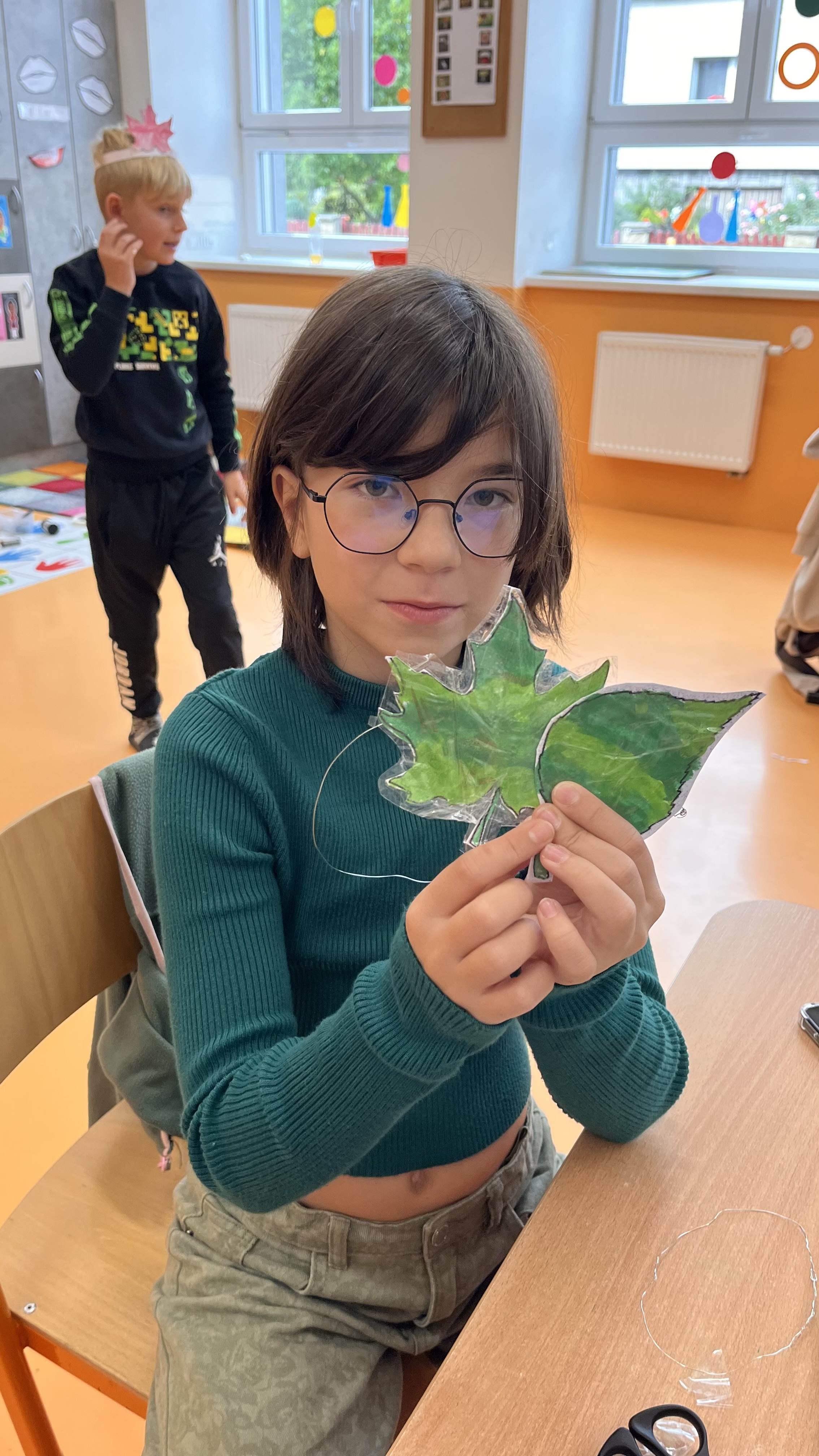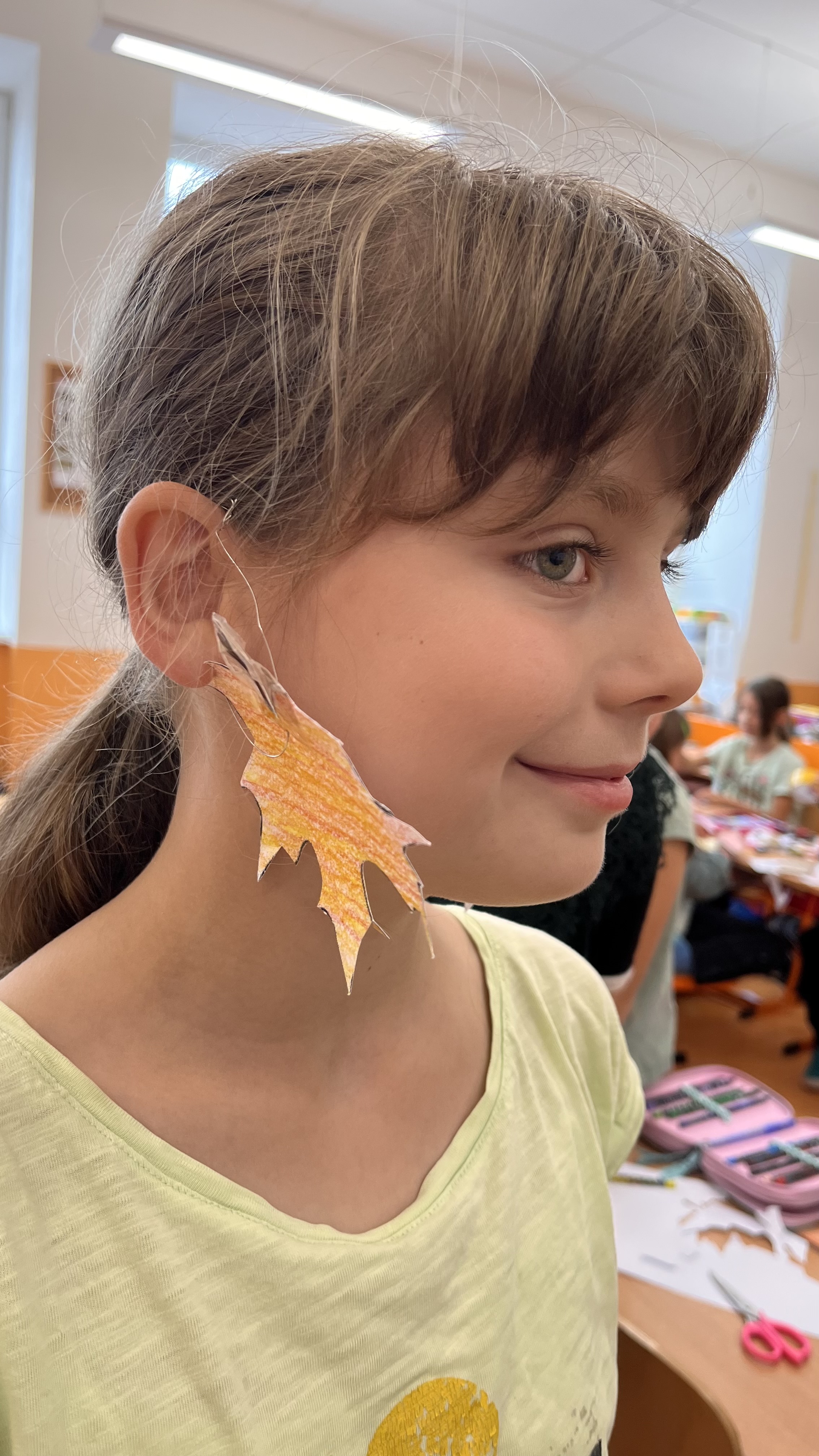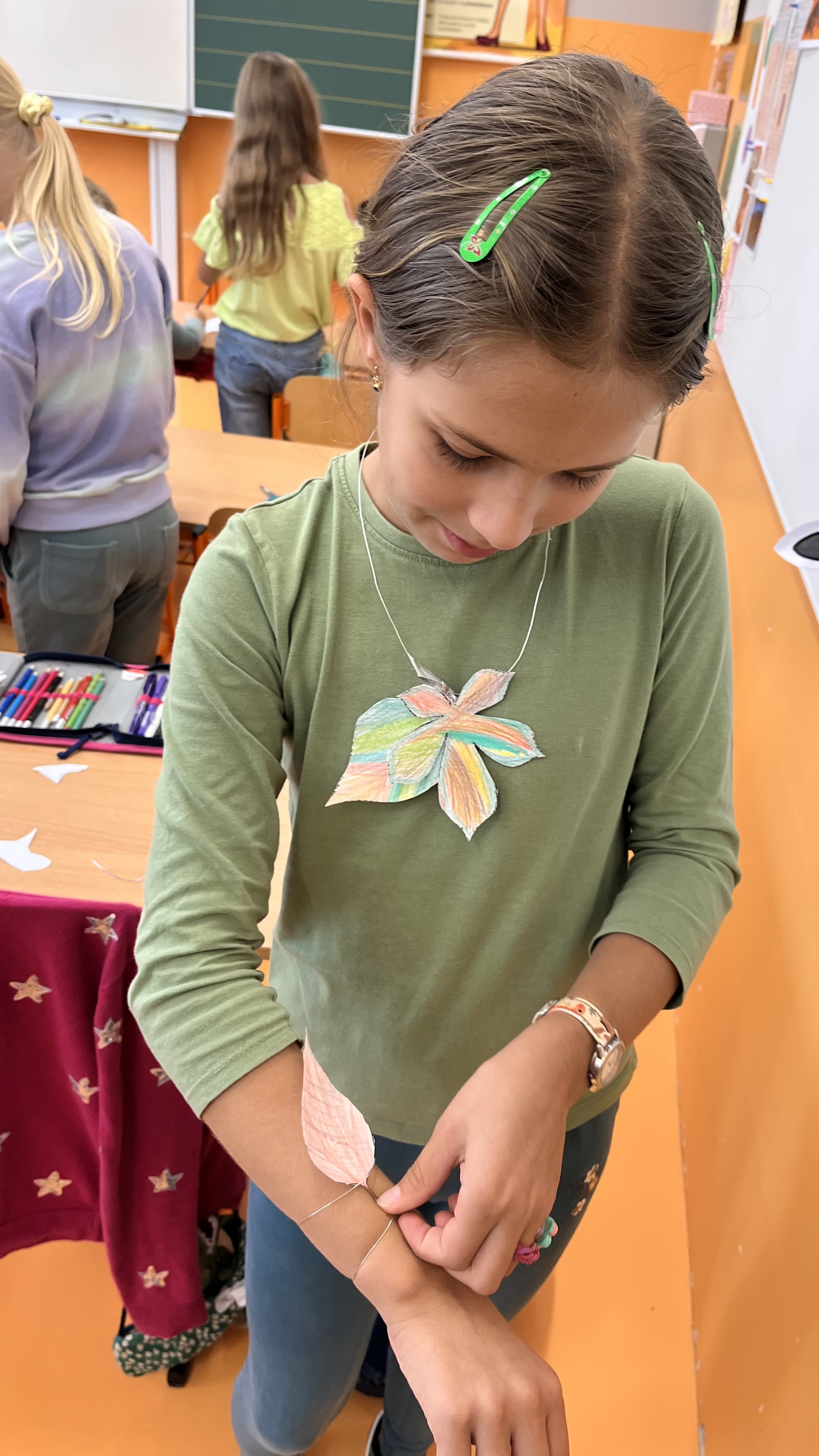 V pondělí jsme si užili den plný barev. Žáci každé třídy přišli oblečeni do všech odstínů barev podzimu. Společným úkolem byla výroba módního doplňku z listí či jiných přírodnin. Děti se ozdobily množstvím rozmanitých čelenek, náhrdelníků, náramků i přívěsků a při společném závěrečném focení jim to moc slušelo.