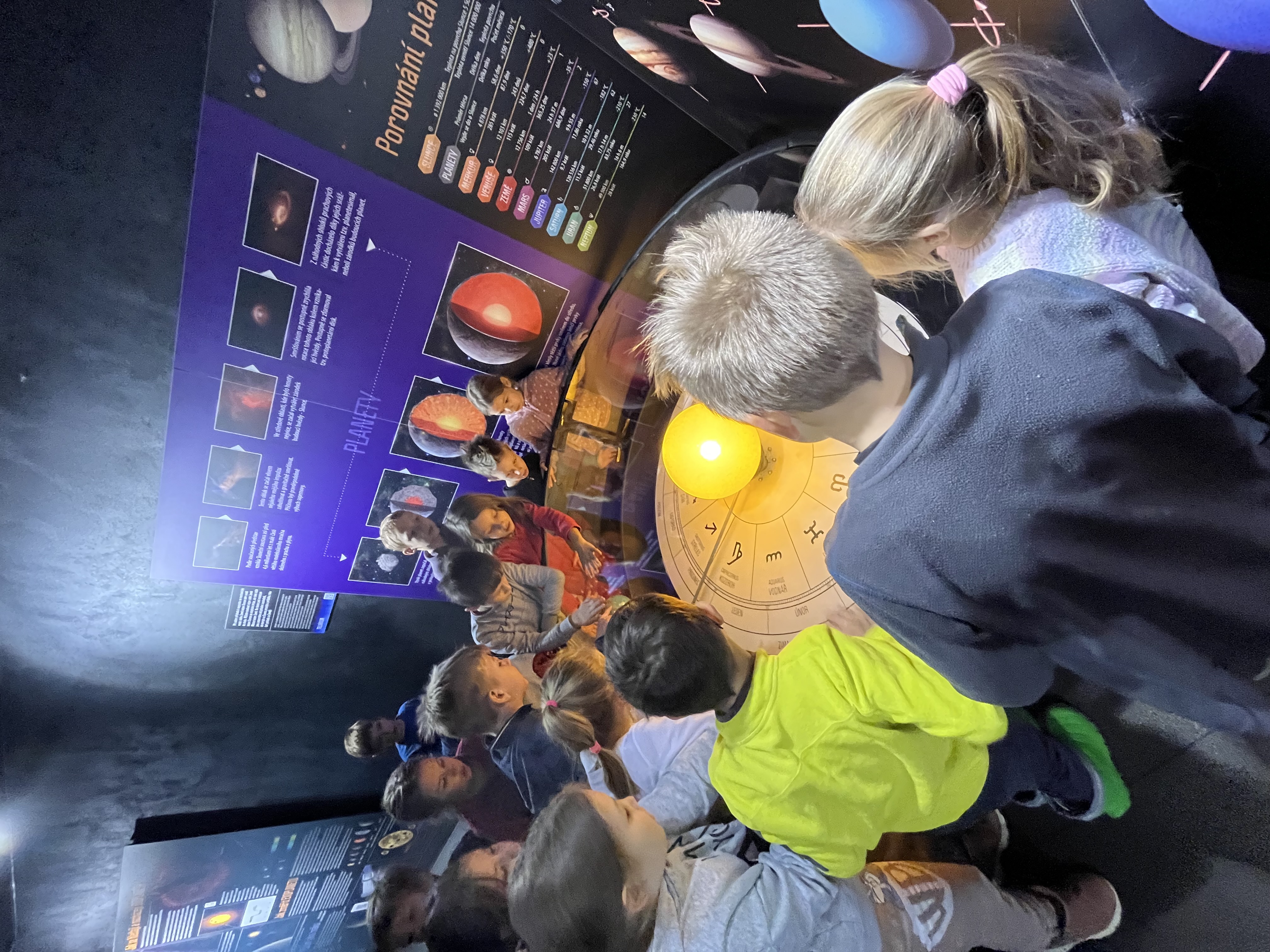 Dnešní dopoledne děti z první a druhé třídy strávily v Planetáriu. Po úvodní prohlídce všech zajímavosti se děti usadily v sále a s napětím sledovaly překrásný vesmír. Vše bylo jako živé a díky pohádce si děti prohlédly planety zblízka. Bylo to krásné a poutavé. Tak uvidíme, kolik si toho děti pamatují. Zkuste se jich zeptat. Určitě vám své zážitky povypráví.