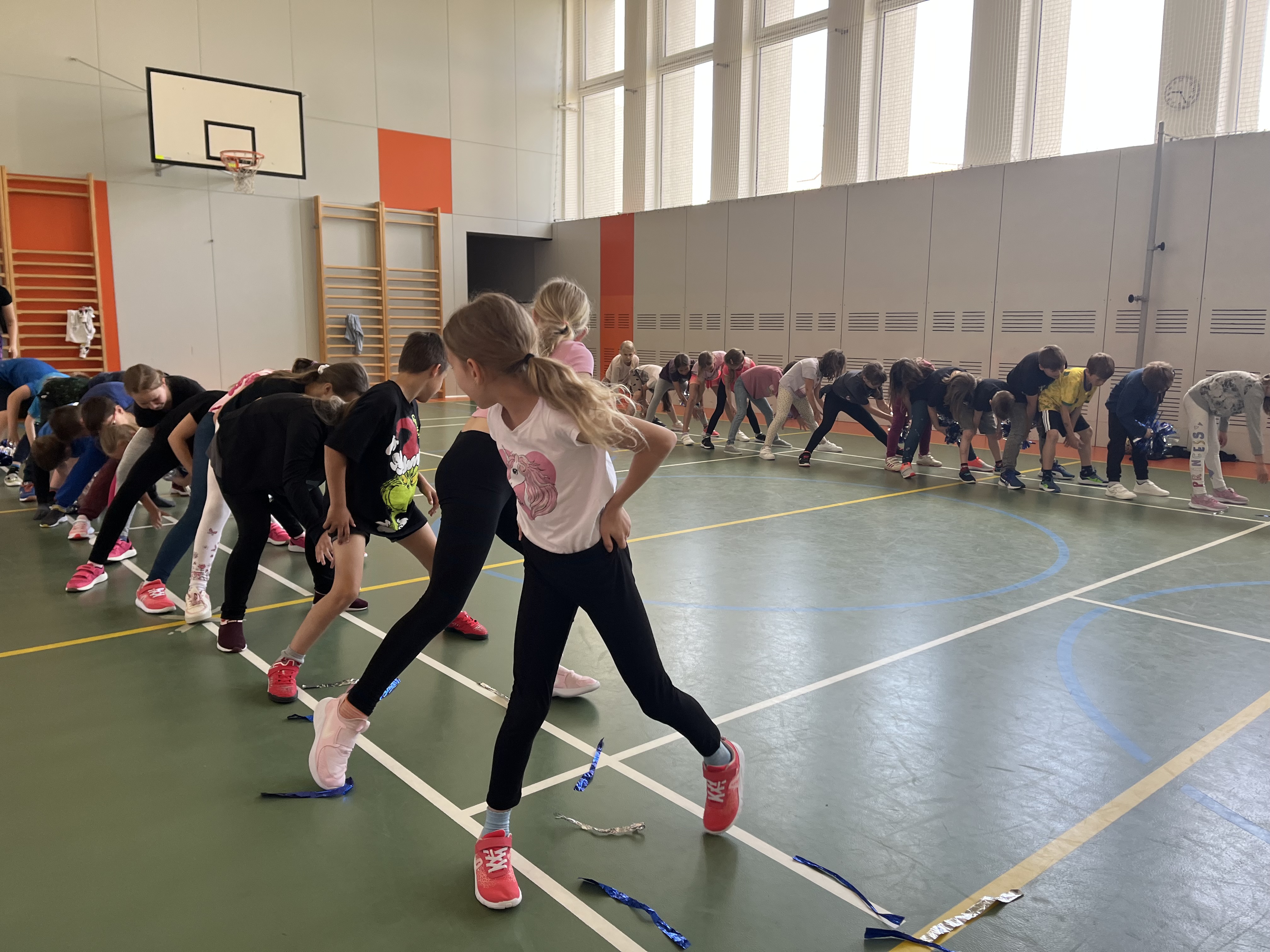 Tento název platí pro dnešní den beze zbytku. Všichni žáci se vystřídali na hodině pohybových aktivit, kde společně soutěžili v obratnosti, proběhli se a vyzkoušeli si při tanci různé choreografie pod vedením milé lektorky Roztančené školy. Zábavná pohybová aktivita je našim dárkem dětem k jejich nedělnímu svátku. Podle ohlasů zúčastněných se nám dárek povedl. Dětem přejeme spoustu příjemných zážitků během celého roku.