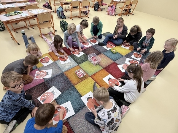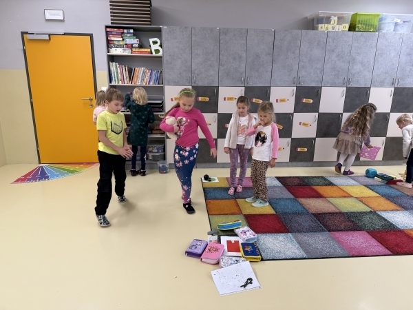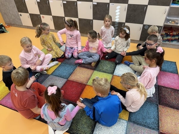 V pondělí k nám přilétly matematické berušky, které nám ukázaly nové učivo - rozklad. Seznámili jsme se s novými písmenky - M a E, které už i s předchozími písmeny čteme ve slovech a píšeme s nimi větičky. Pracovali jsme také s tablety, na nichž jsme určovali počáteční slabiky. V knihovně jsme si přečetli příběh o Tee, která popisovala, jak se cítila při její velké lži. Příběhem jsme se inspirovali ve výtvarné výchově, kde jsme malovali, jak bychom se při lhaní cítili my. V pátek jsme se vydali do 1. A, kde jsme společně paní vychovatelce popřáli k narozeninám a předali ji naše narozeninové přáníčko.