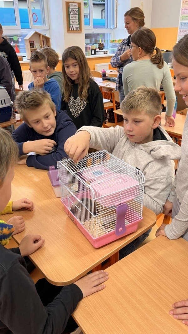 Ve čtvrté třídě probíhal den se zvířátky, a tak jsme se samozřejmě museli jít podívat na starší spolužáky a jejich roztomilé mazlíčky.