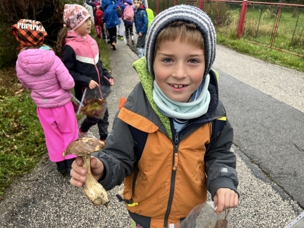 Zvládli jsme také dlouhou procházku, během které si každý z nás nasbíral spoustu krásných listů. Ty jsme si nechali vylisovat a určitě z nich brzy něco vyrobíme. Náš Miki dokonce mezi listím objevil i houbu!