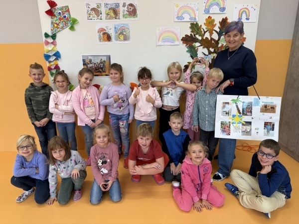 V matematice jsme hledali předměty, které nám připomínají základní geometrické útvary – čtverec, obdélník, trojúhelník a kruh. A že jsme jich ve třídě našli! Jeden ze spolužáků nám dokonce vysvětlil, jaký je rozdíl mezi čtvercem a krychlí – ta je prý 3D, můžeme ji vidět ze všech stran a někdy do ní něco i schovat! Také jsme se učili psát číslici 2 a začali jsme sčítat. V českém jazyce a prvouce jsme se věnovali zvířatům na podzim, jejich potravě a úkrytům. Rozeznáme jehličnaté stromy podle jejich jehličí a šišek, a začali jsme se učit o listnatých stromech a jejich plodech. Velkým překvapením pro nás byl název stromu, na kterém rostou kaštany… je to přece JÍ-RO-VEC. Ten některé z nás zaujal tak moc, že jsme si běželi pro papír a jeho název si zaznamenali. :-)