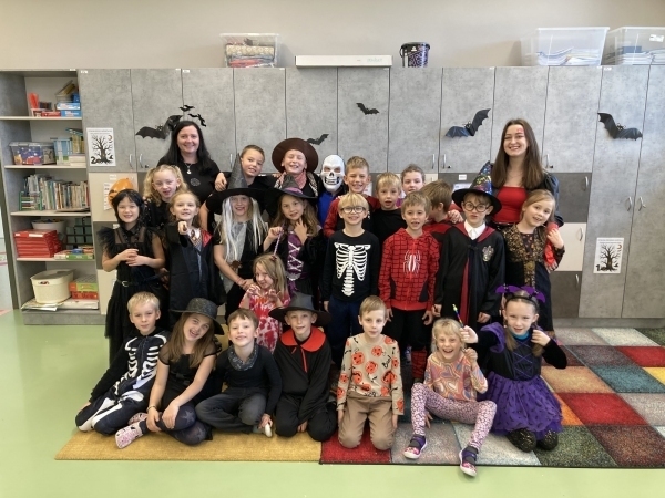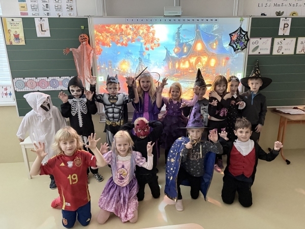 Takové krásné kostýmy se jen tak nevidí, paní učitelky jen žasly. A ta naše třída? Ráno byla k nepoznání – všude netopýři, svíčky, strašidla a spousta tematické výzdoby. Nechyběly ani dobroty, které jsme si sami přinesli a společně vytvořili to nejlepší halloweenské pohoštění.