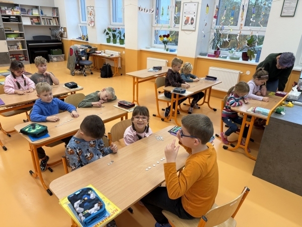 Třeba jako maňásci Olda a František. Navštívili nás, aby nám poradili, jak řešit různé konfliktní situace. Nejlépe, aby k nim vůbec nedocházelo. V matematice už řešíme první zapeklité příklady, dobrá rada se vždycky hodí při krokování i v učebnici. V psaní čarujeme a snažíme se rozhýbat ručičky a ještě se u toho pobavíme o živočiších a způsobech, jak se připravují na zimu.