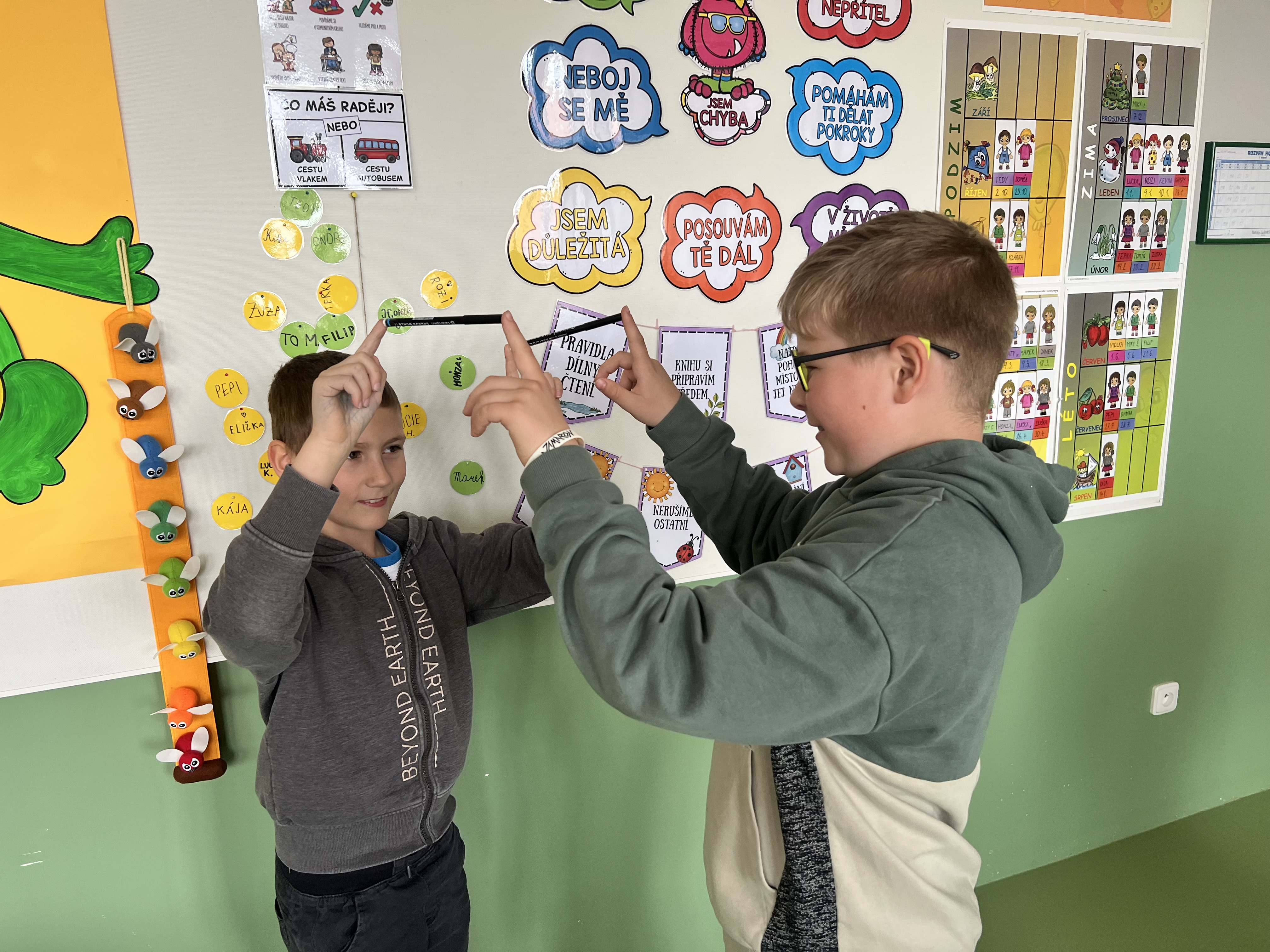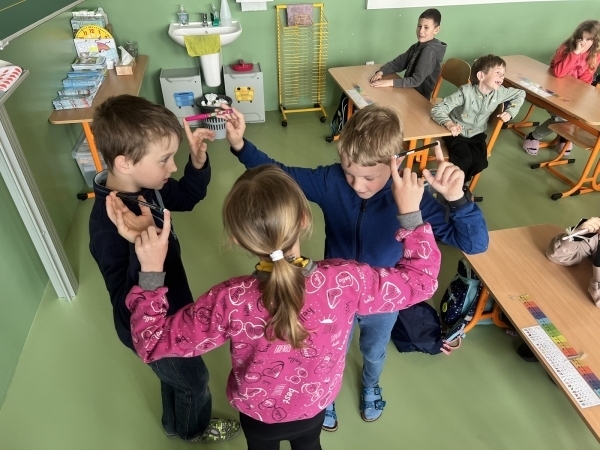 Na závěr jsme si dali malou výzvu – vydržet alespoň 30 vteřin bez spadnutí. A podařilo se to úplně všem! Nejenže jsme si užili spoustu legrace, ale zároveň jsme si vyzkoušeli, jak důležitá je komunikace – nejen slovní, ale i pohybová.