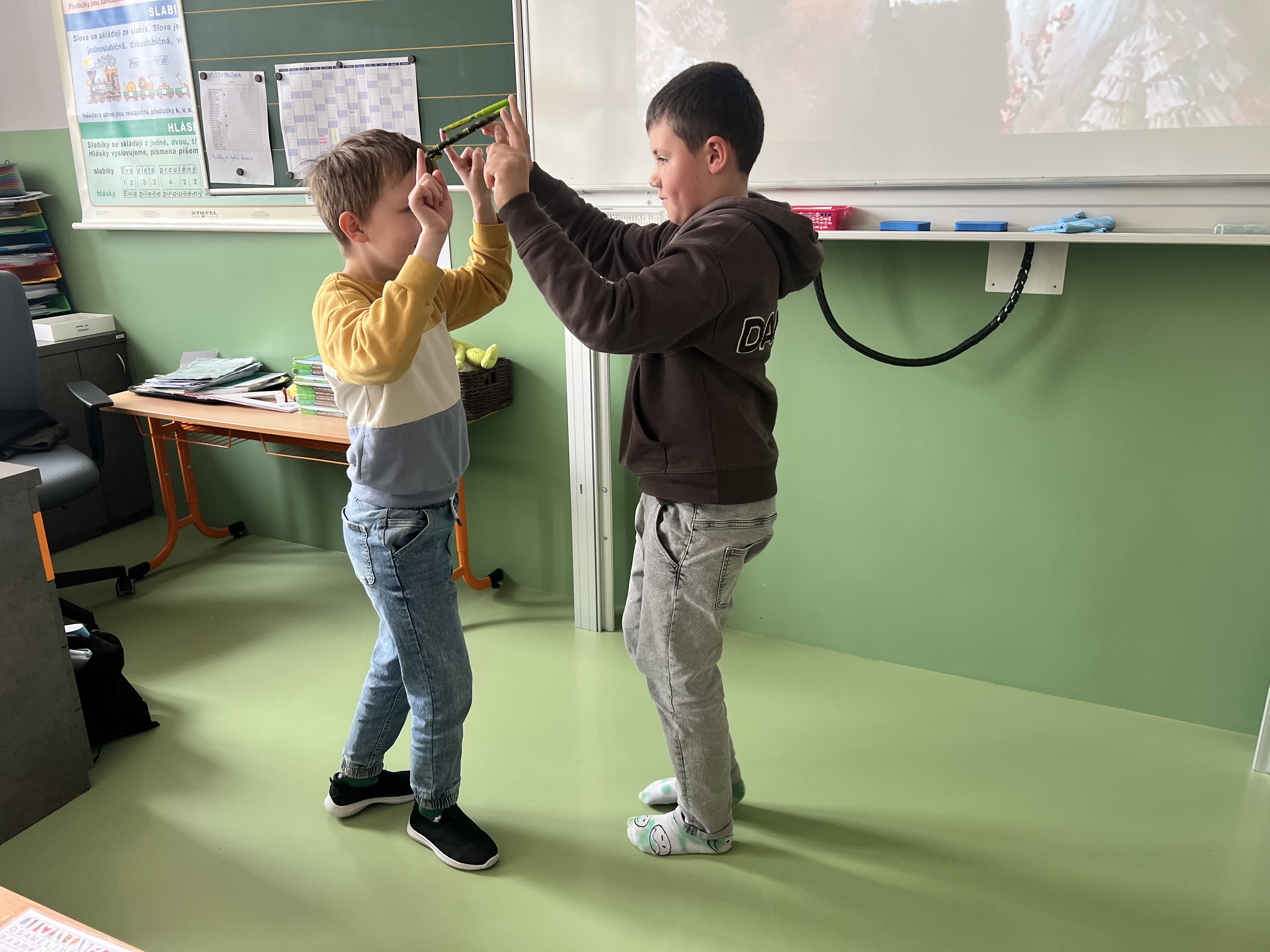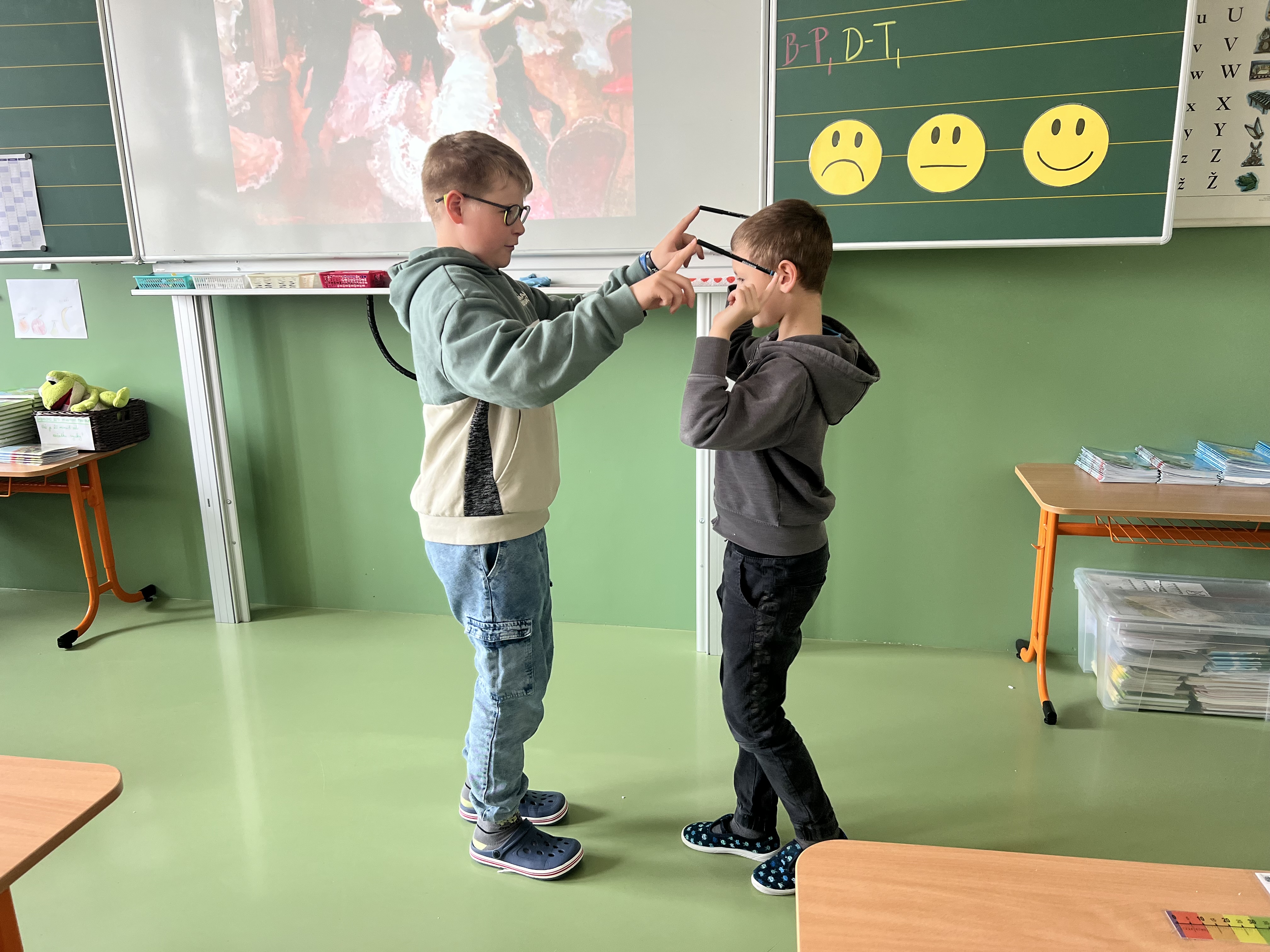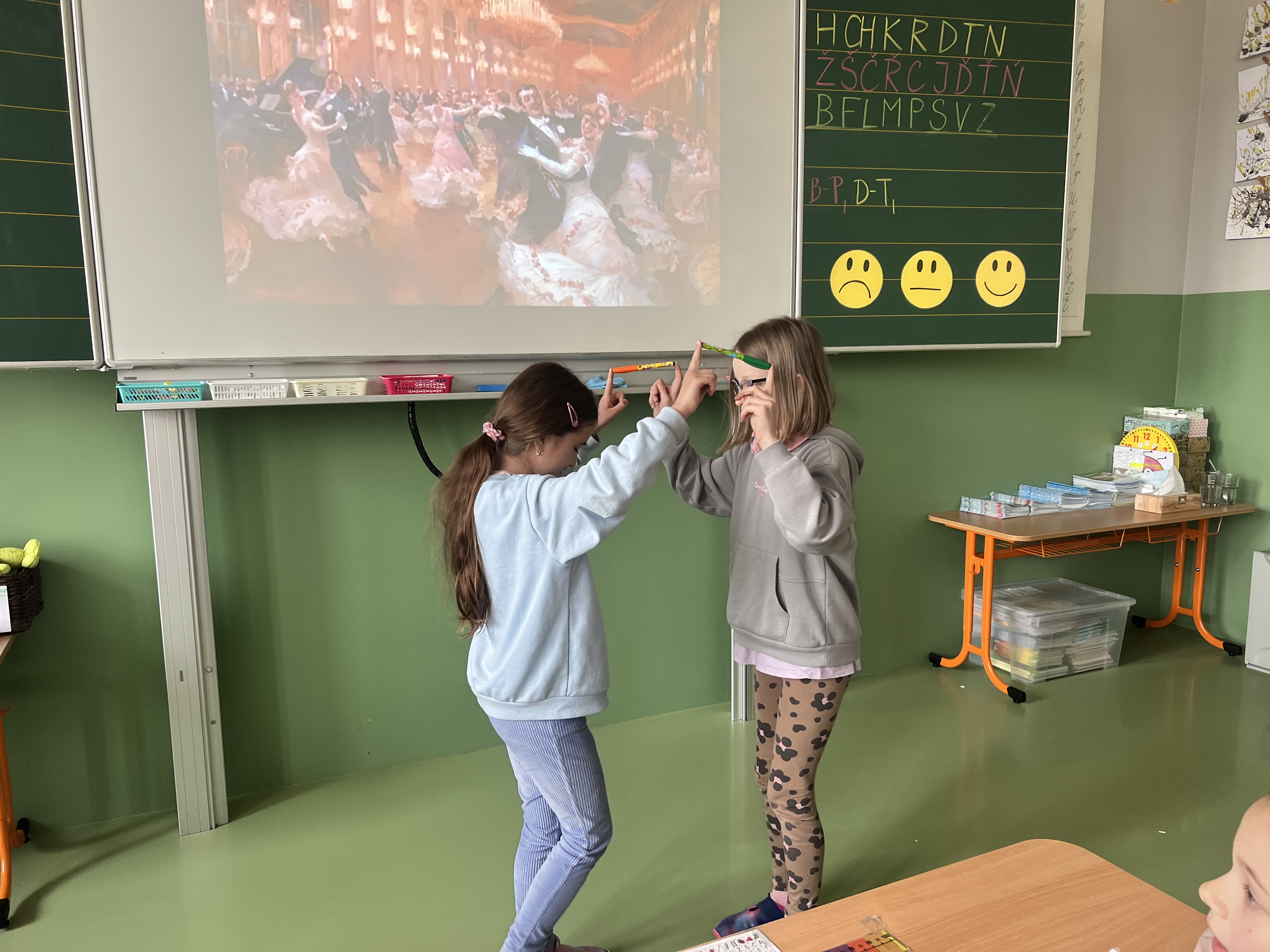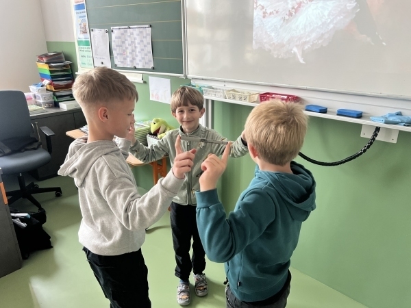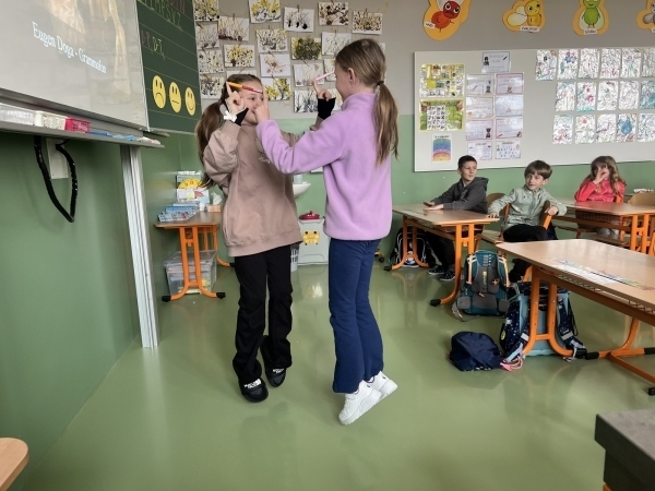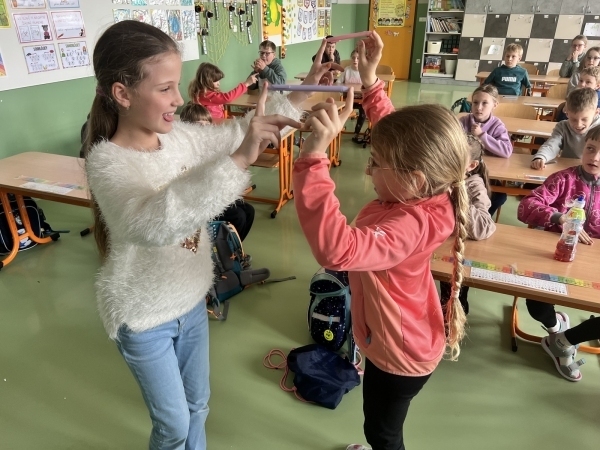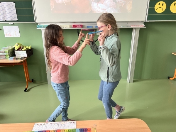 V dnešní hodině hudební výchovy jsme si vyzkoušeli, jak náročné – a zároveň zábavné – může být soustředit se, poslouchat hudbu a současně spolupracovat s ostatními při pohybu.