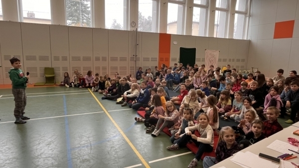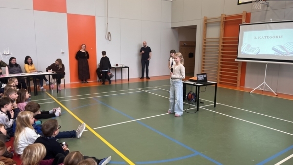 Třetí kategorie - čtvrtá a pátá třída. Opět dávka kultivovaného přednesu básní. S trémou se poprali všichni a recitace byla za námi.
