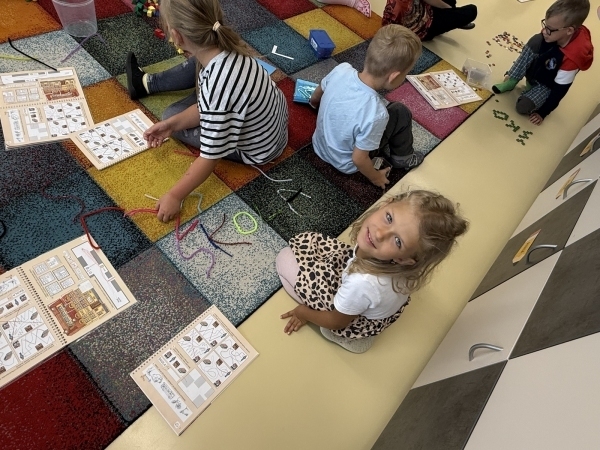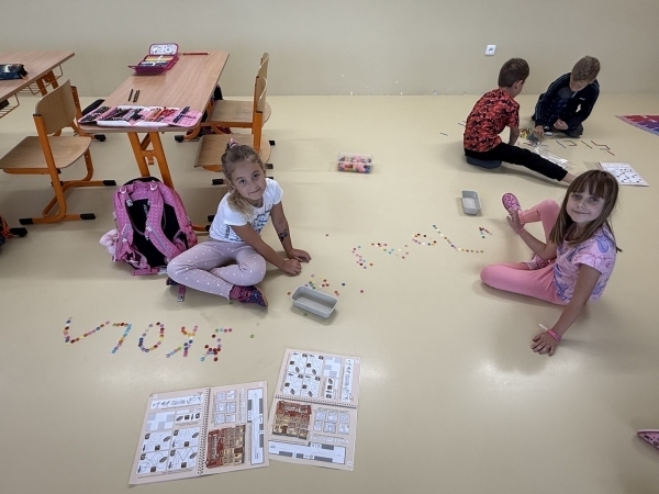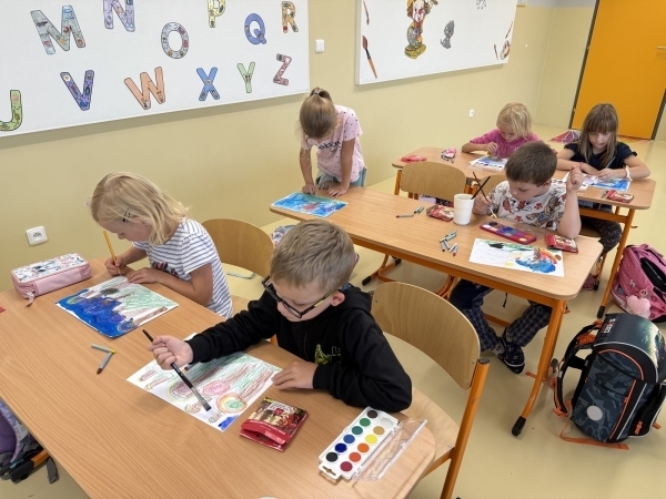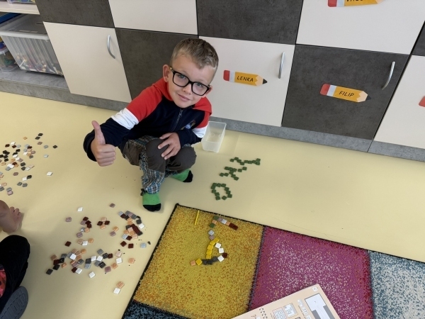 V tomto týdnu jsme se učili zejména o škole. Povídali jsme si o tom, kdo v ní pracuje a jaké pomůcky k práci používá. Zopakovali jsme si, jak se ve škole chovat, abychom zajistili nejen naše bezpečí, ale také příjemné prostředí ve třídě. Přestože máme za sebou teprve druhý týden ve škole, poznáme už, jak vypadá slovo ŠKOLA napsané. Dokonce jej umíme sami napsat, a to nejen tužkou, ale i pomocí různých materiálů. Také jsme objevili nové zákoutí - knihovnu.