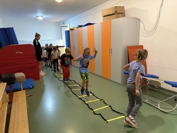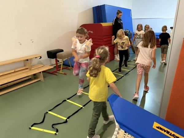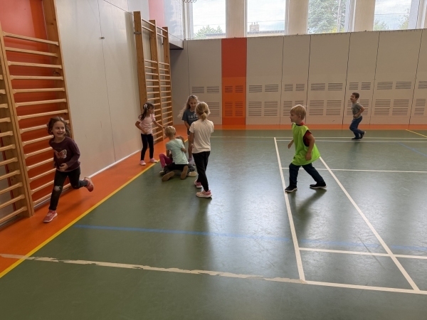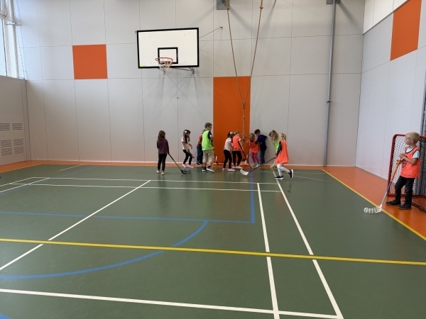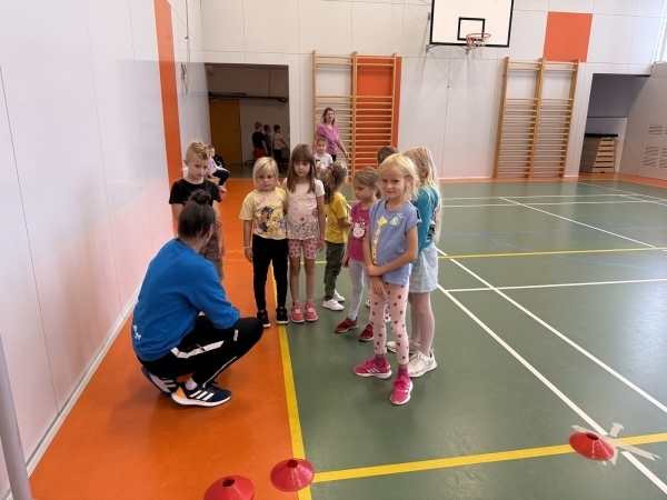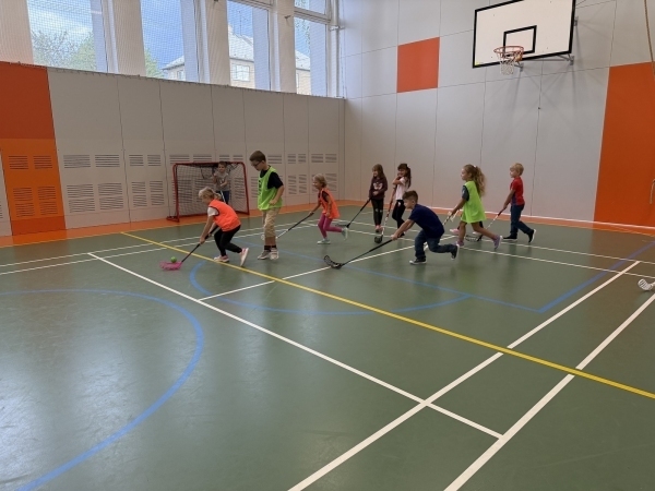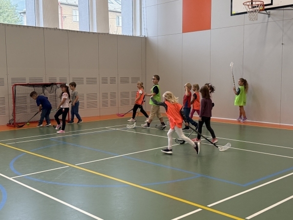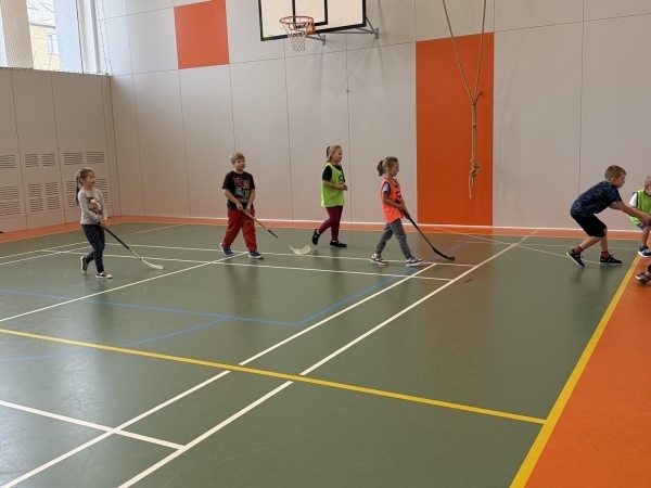 Nezapomněli jsme ani na naše kamarády z 1. A. Společně jsme se vydali na procházku kolem školy, kde jsme poznávali dopravní značky. V pátek jsme si v tělocviku vyzkoušeli florbal pod vedením trenérek.
