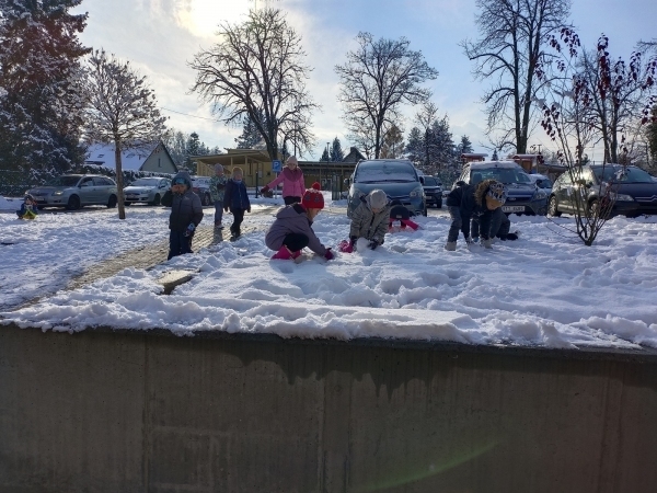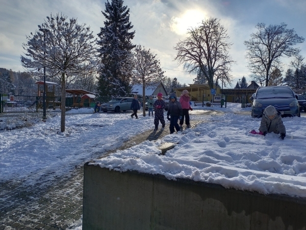 Dnes v noci počasí přineslo bohatou sněhovou nadílku a v dětech to vyvolalo sváteční náladu. Proto naše prvouka dnes byla věnována povídání o sněhu a zážitcích s ním. Taky jsme stihli nakreslit "sněhový" obrázek a po příjezdu z plavání si v bílé nadílce na chvíli zaskotačit.