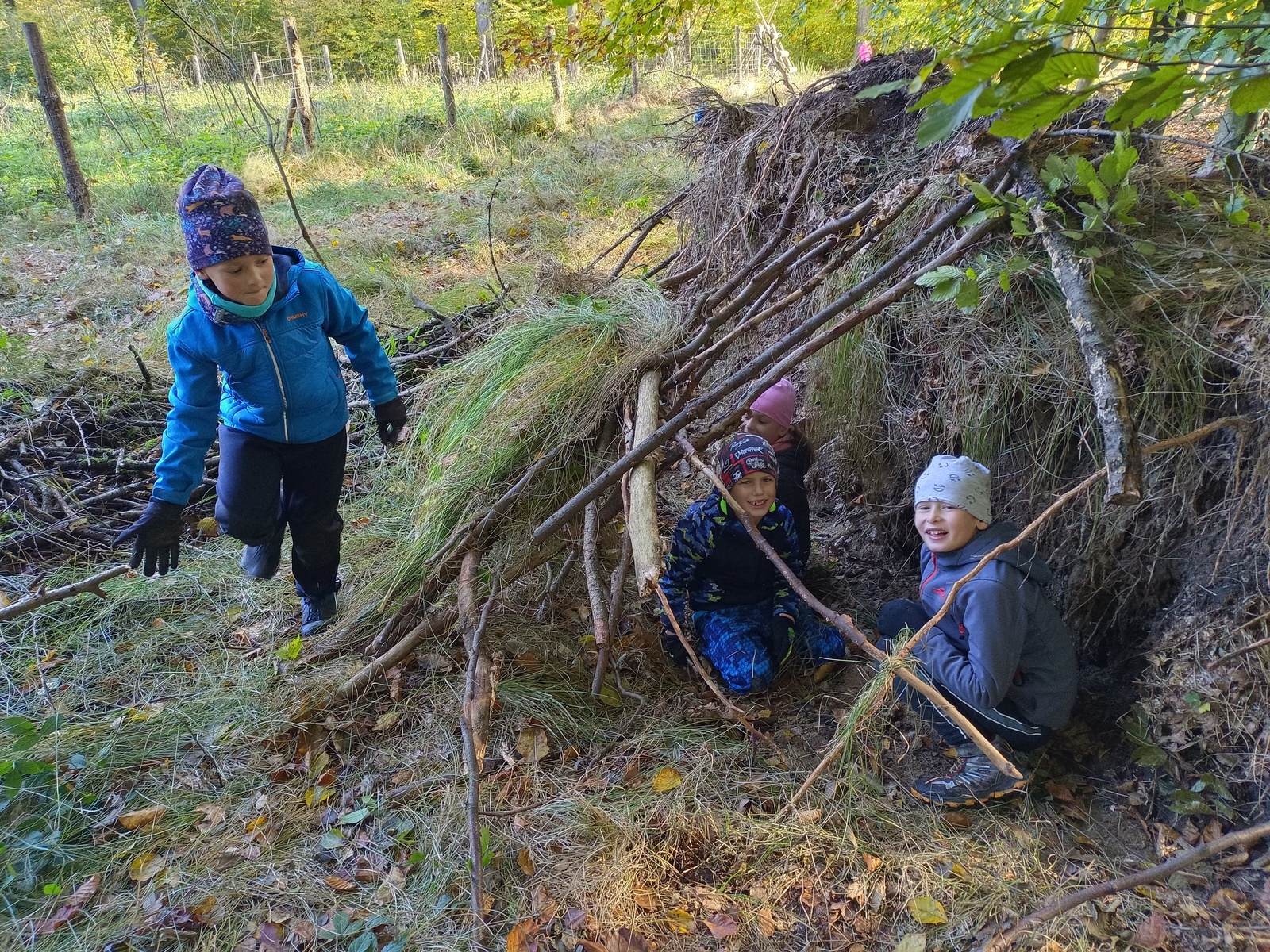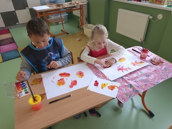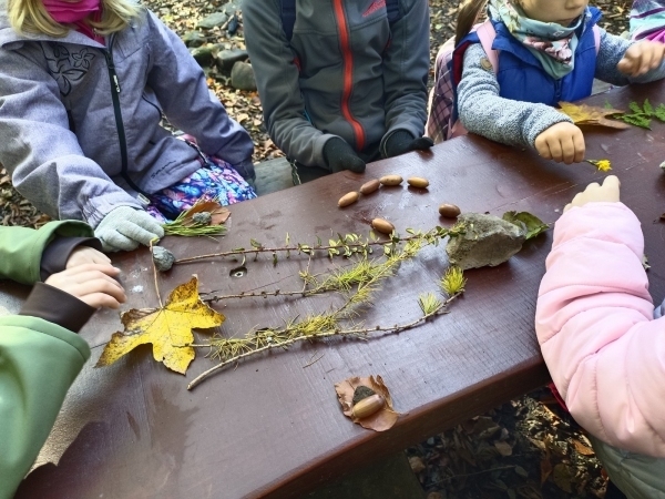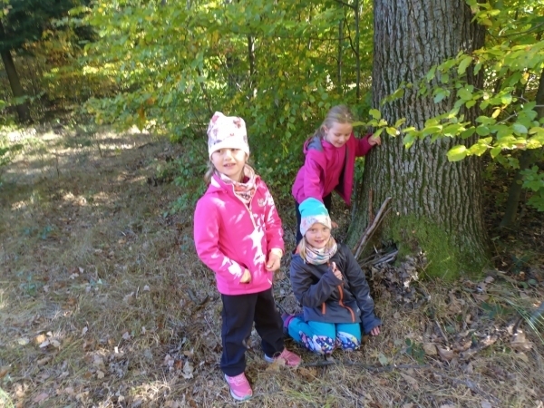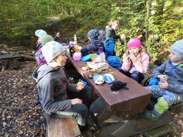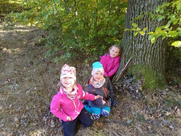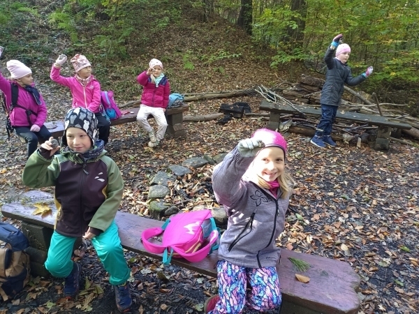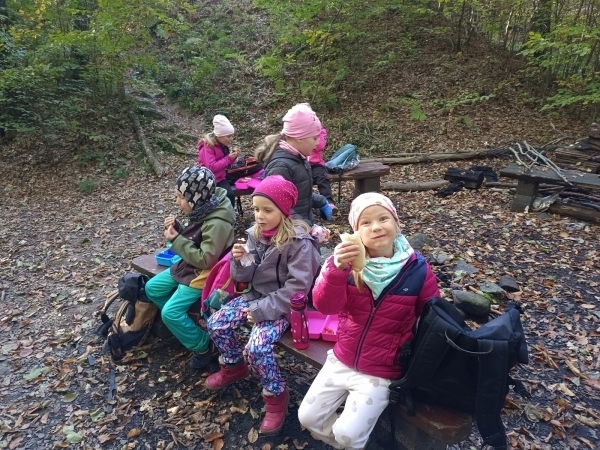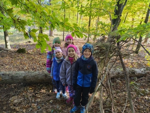 V úterý jsme vyrazili na vycházku do lesa. Sbírali jsme přírodniny a zároveň sledovali, jak se příroda na podzim proměňuje. Počasí nám přálo, a tak jsme si užili také stavění domečků a jiné hry. Na konci procházky jsme nasbírali barevné podzimní listy, které jsme následně použili v pracovních činnostech a výtvarné výchově.