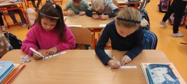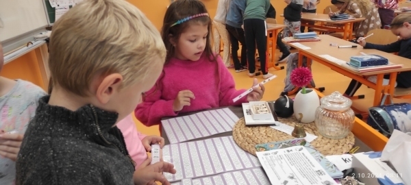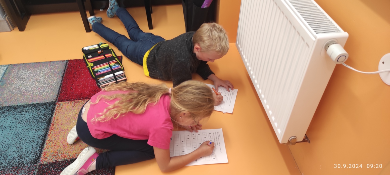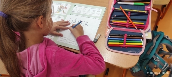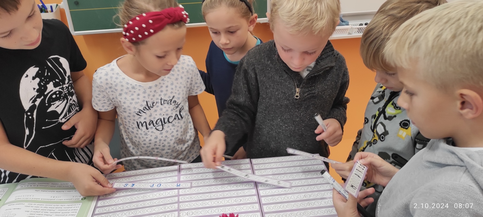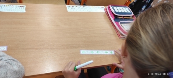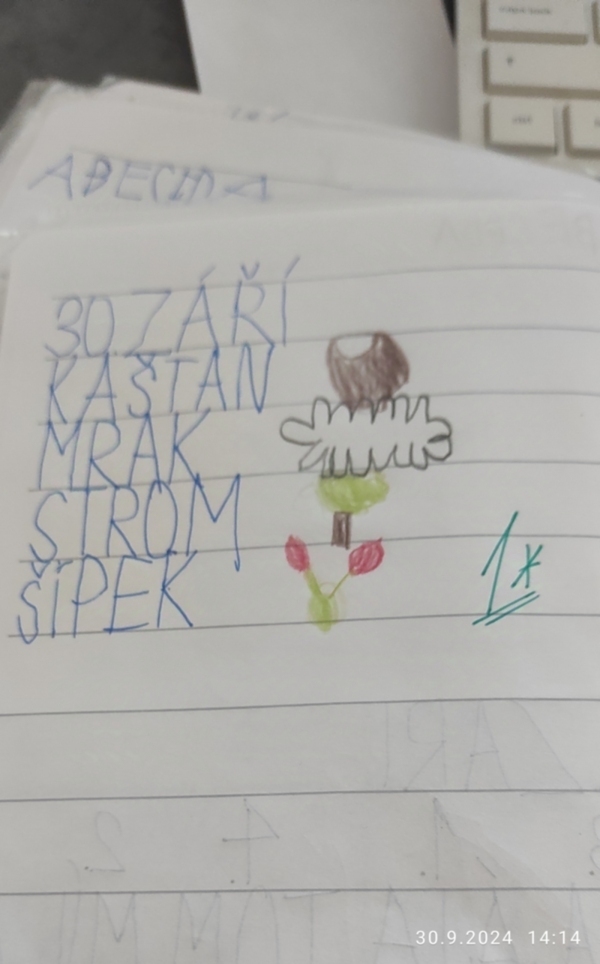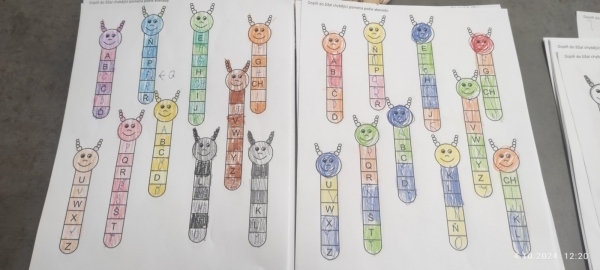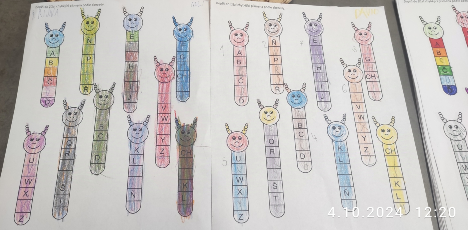Dnes o sobě druháci řekli, že jsou machři v abecedě. Aby ne, prokázali to na mnoha činnostech. Roztrženou abecedu dokáží doplnit, s lehkostí řadí slova podle abecedy, a sami si vyvodili řazení slov začínající stejnou hláskou pomocí vlastních obrázků. Také pomocí sestavování předmětů, které měly za úkol najít doma, tedy domácí úkol.