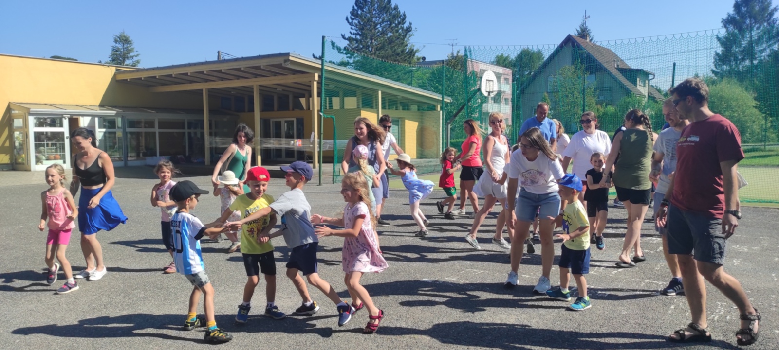 Děti daly rodičům dárek v podobě mini představení, poděkovaly rodičům tak nějak po svém, a dali rodičům nelehký úkol. Jaký že to byl? No přece tanec s dětmi. Všichni si zaslouží obrovskou pochvalu nejen za odvahu, ale i za krásně provedený tanec. Aby ne, měli skvělé