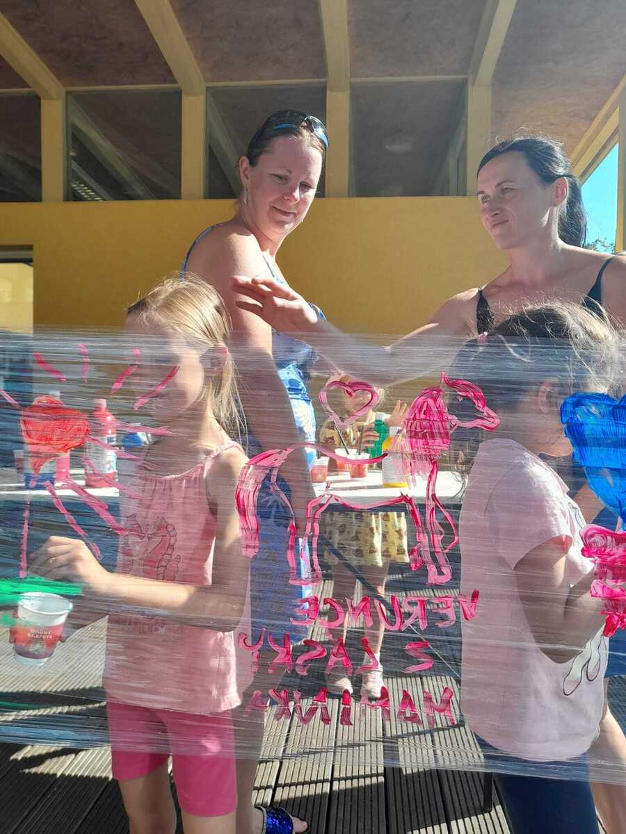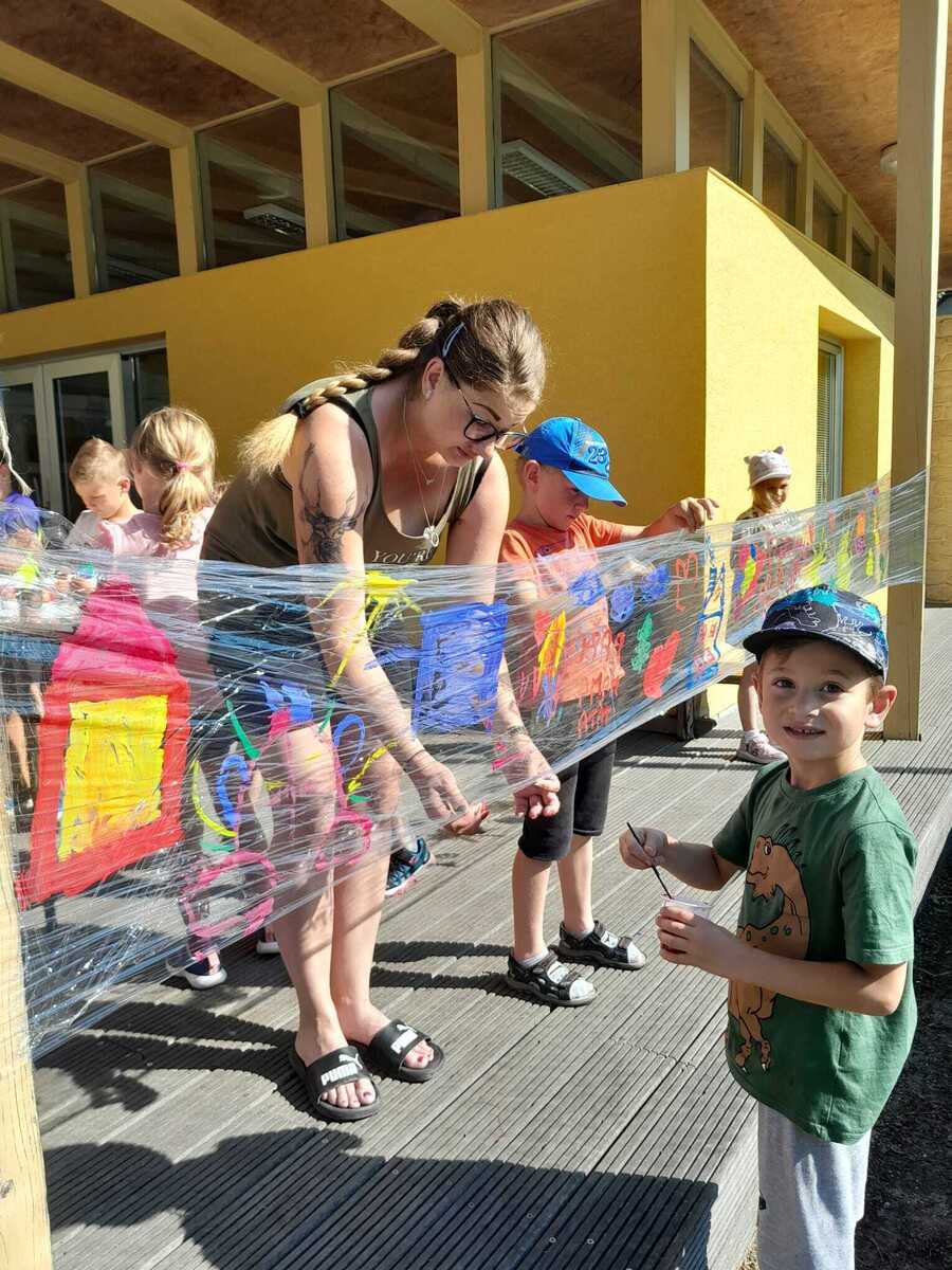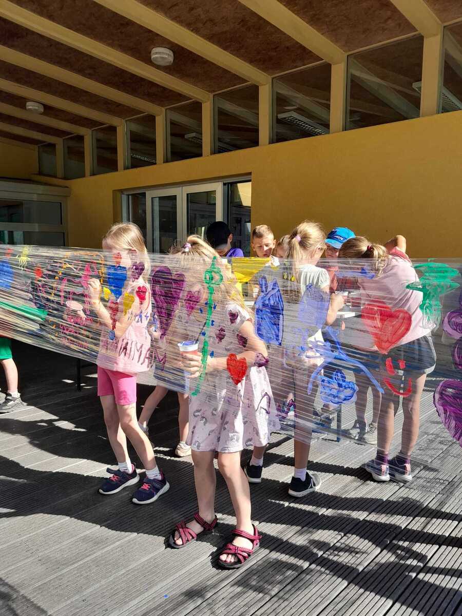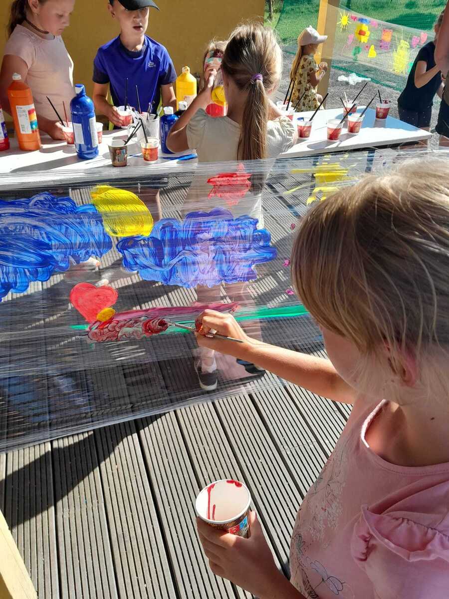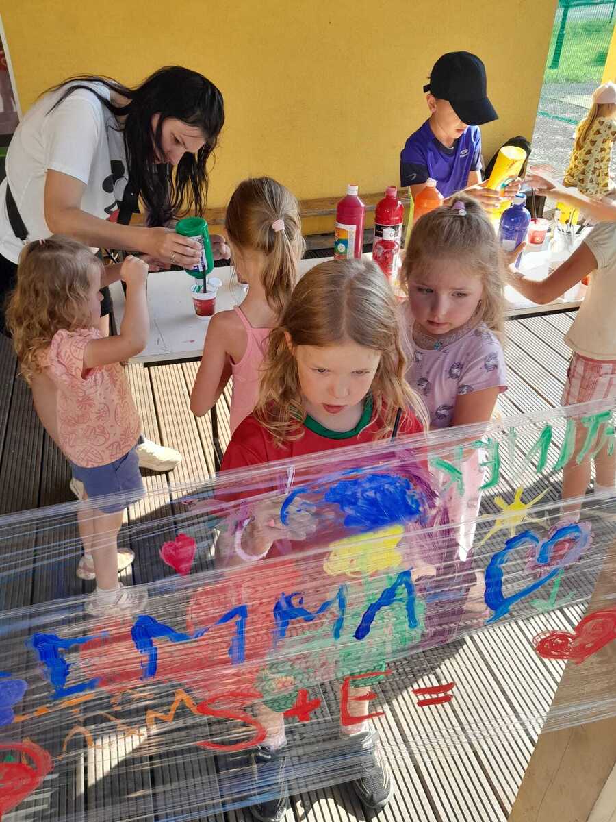 Pak se ještě společně pustili do malování na fólii a tím jsme všichni odstartovali léto, ke kterému patří i opékání buřtů, které se nám naštěstí nespálily a byly mňamózní.