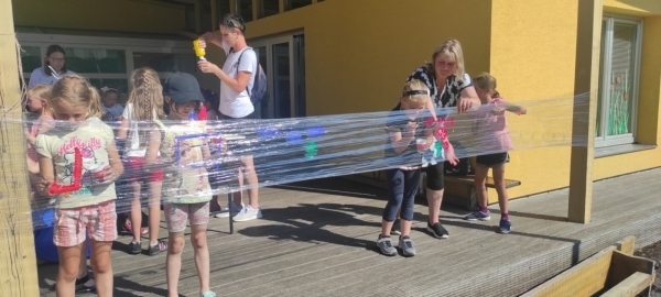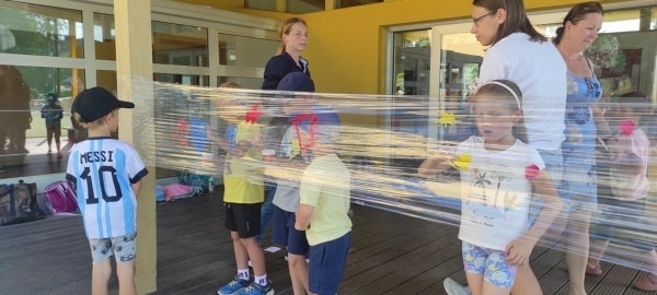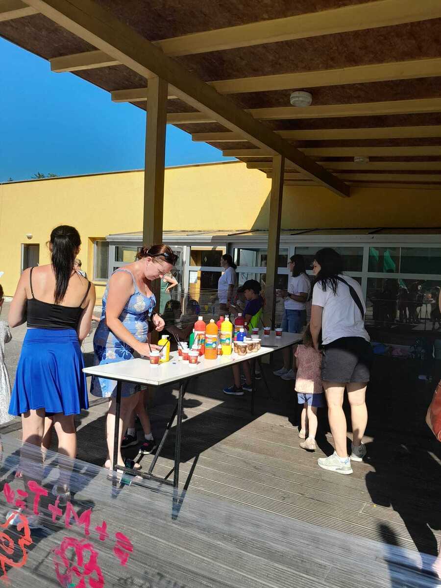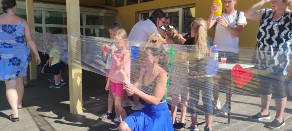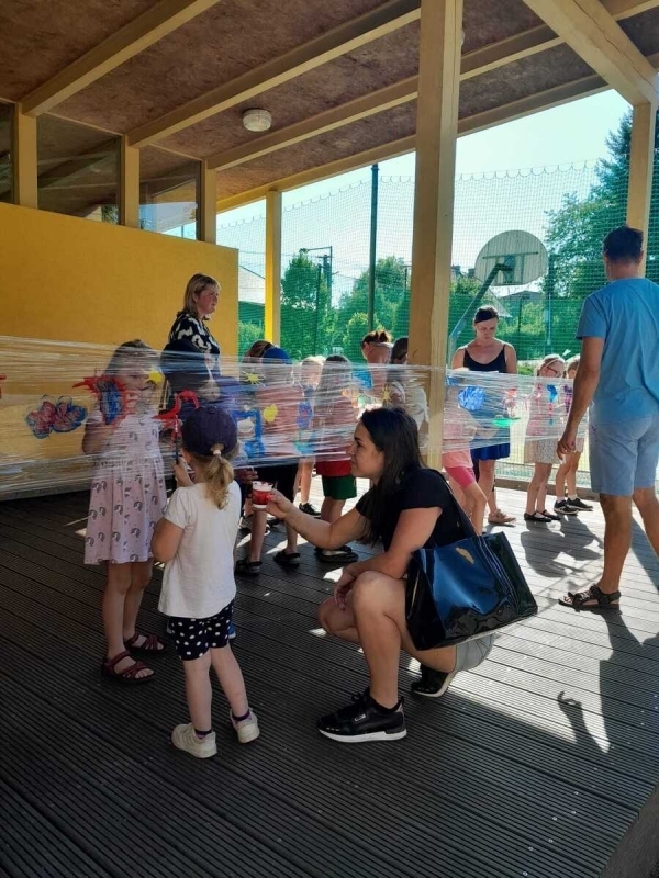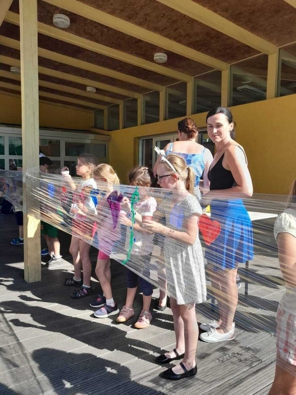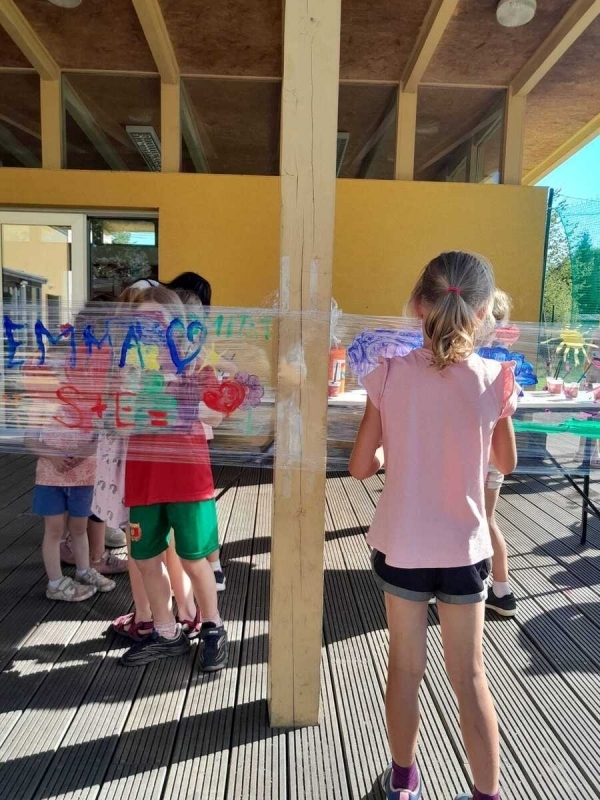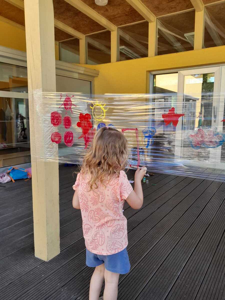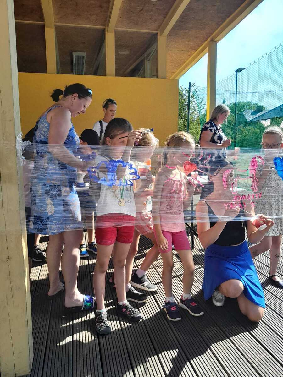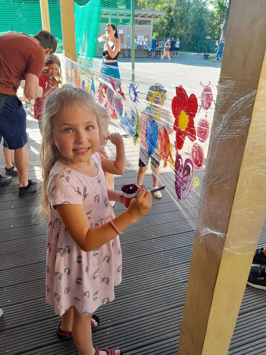 Pak se ještě společně pustili do malování na fólii a tím jsme všichni odstartovali léto, ke kterému patří i opékání buřtů, které se nám naštěstí nespálily a byly mňamózní.