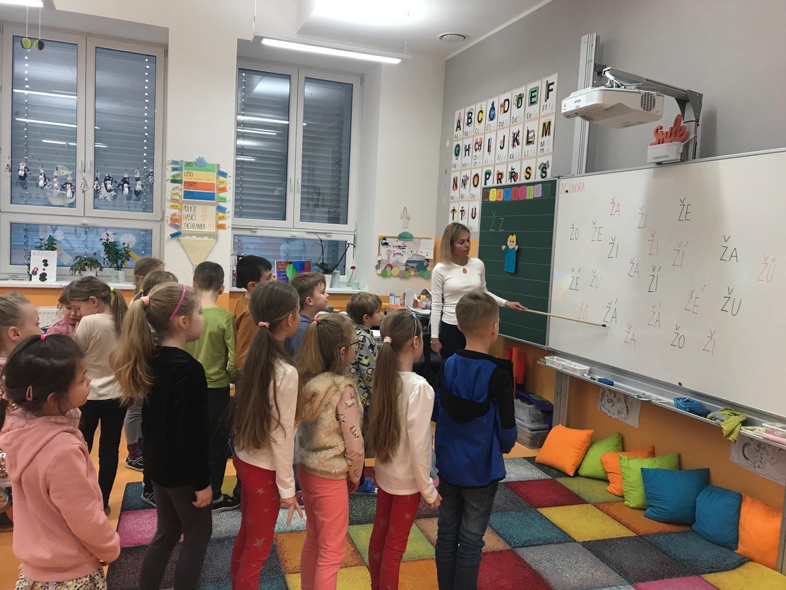 V tomto týdnu stihli prvňáčci probrat hned čtyři písmena. Jaká? Odpověď je v názvu. Jde to jako po másle. Zažíváme spoustu legrace a učíme se spolupracovat. A tak čteme, píšeme, hrajeme hry, trénujeme, prohlubujeme znalosti z prvouky a učíme se pracovat s mřížkou v geometrii. Zkoušíme psát příběh o Sněhulce či Sněhulkovi v týmu. Děti samy vymyslely aktivitu - nosí "pomůcky", aby nám šlo vše lépe. Navštívila nás tedy paní Ž - žížala, pan Š - šnek a slečna Č - čepice. Novinkou pro děti byla hra na xylofon.