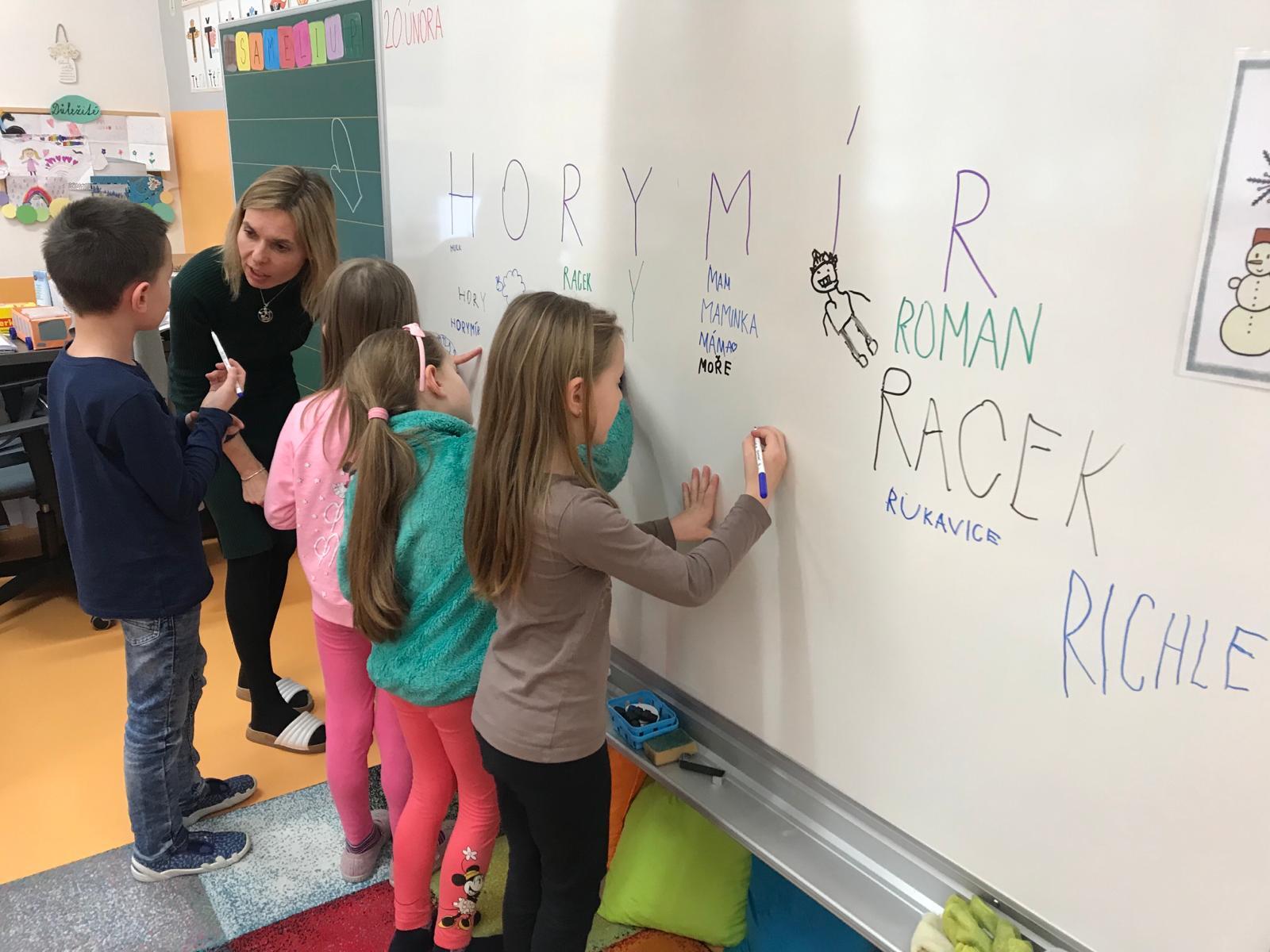 Nebojte se, nejsme šíleně smutní jako v pohádce. Naopak. Pořád nás to ve škole baví a pořád máme co dělat. Písmena se jen sypou, už nám jich chybí opravdu málo. Písmenko CH jsme zdárně zvládli. Ve slabikáři čteme texty a moc nás to baví. Tak třeba poslední příběh, o sněhulákovi Horymírovi. I naši sněhuláci, které jsme vytvořili ve výtvarné výchově mají svá jména. Jsou legrační, ale alespoň neroztají. V matematice jsme využili novou pomůcku, molitanové kostky, na kterých jsem si vyvodili učivo o více, o méně. Opakujeme psaní číslic, stavíme je a nechybí ani pohybové básně či hry. A naši sněhuláčci na rukavičce jsou vskutku originální. Zkrátka máme ve třídě samou zimu. Aby ne, vždyť je únor. Škoda jen, že venku zima pomalu končí. Sníh nám totiž opravdu chybí.